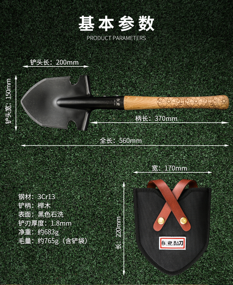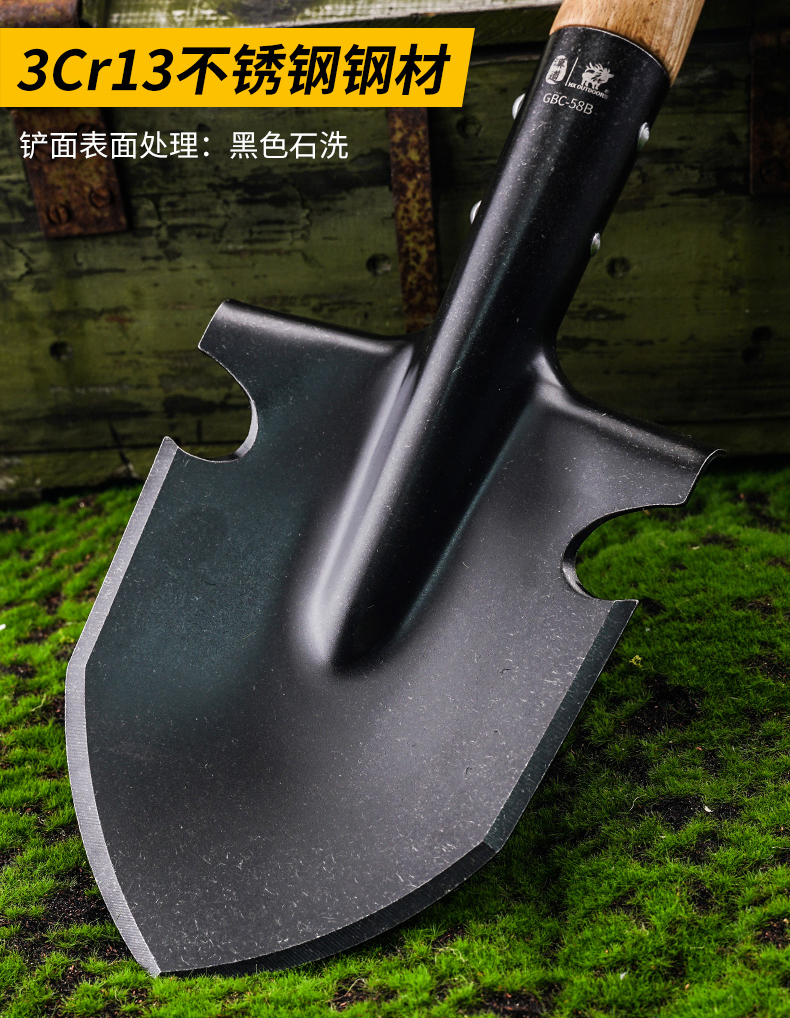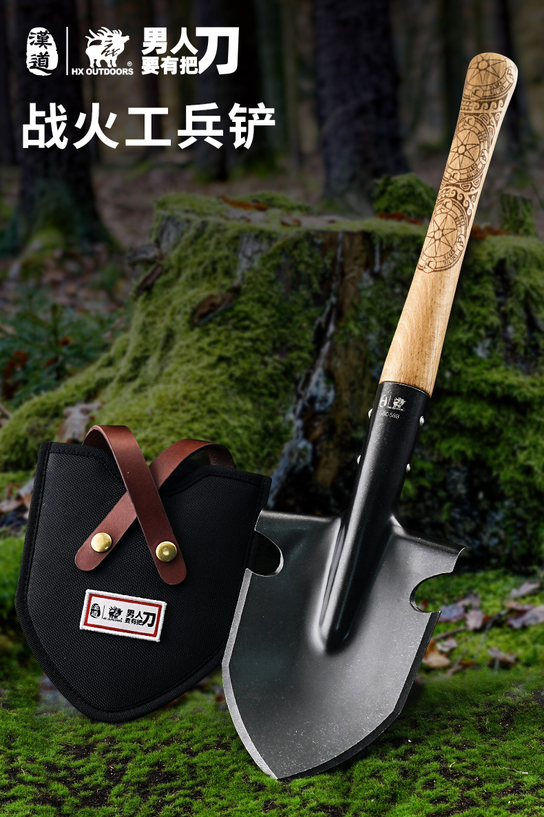 汉道【战火工兵铲】户外多功能便携露营兵工铲子防身野营钓鱼木柄铁锹加厚铲子