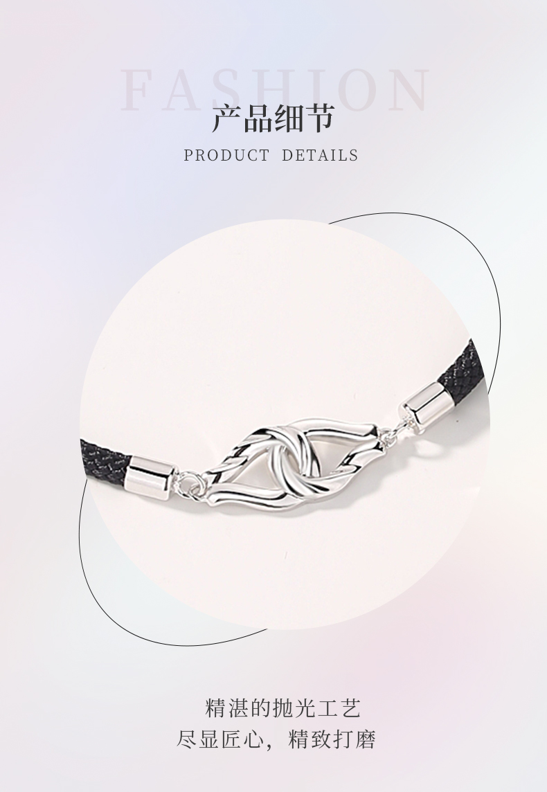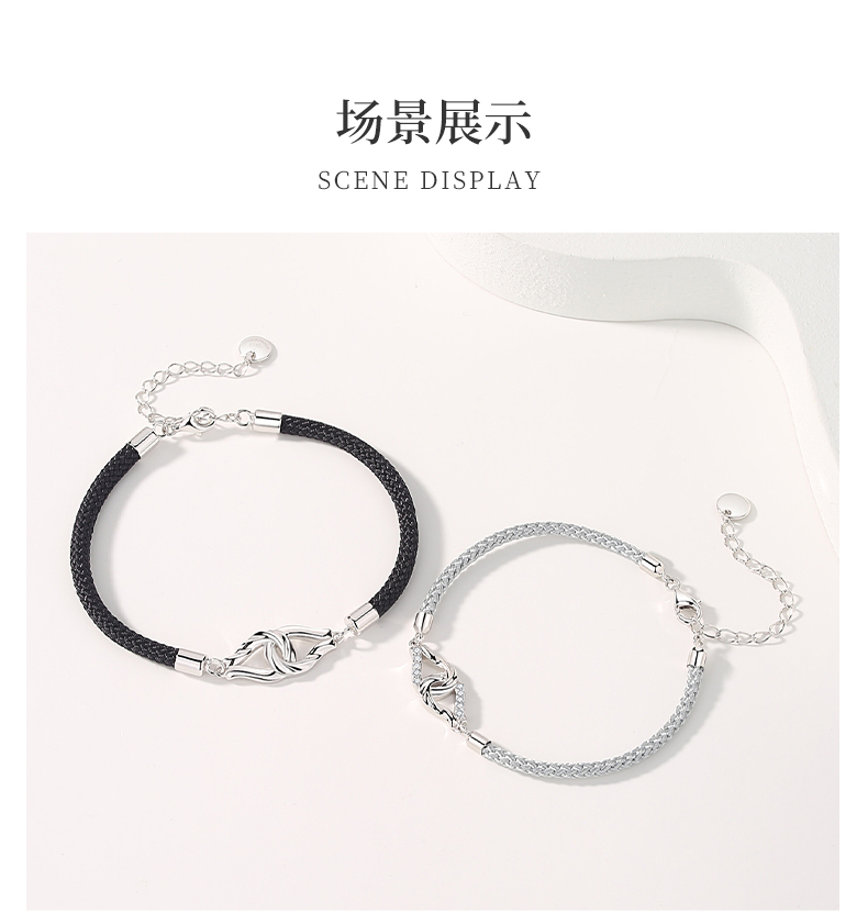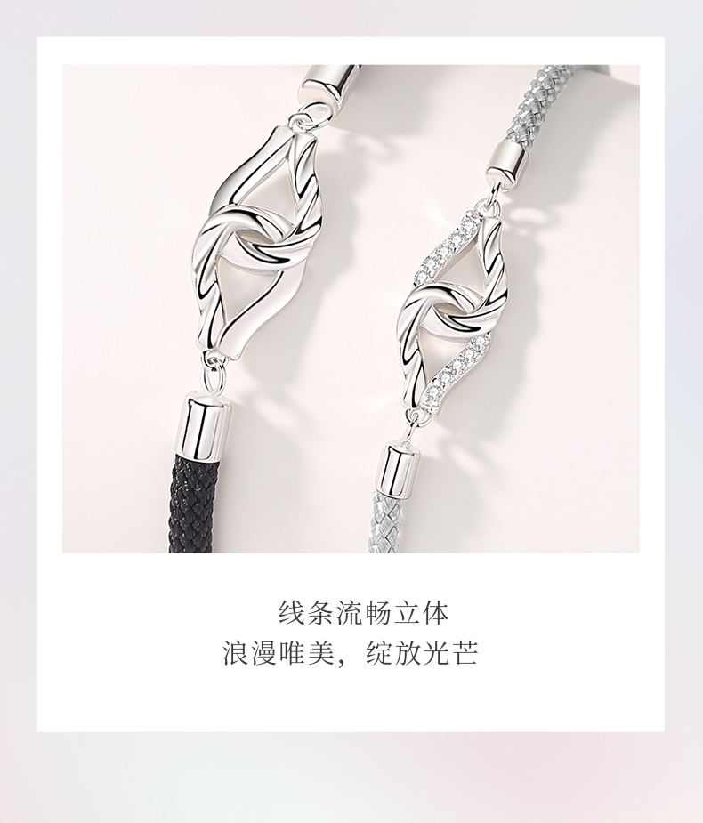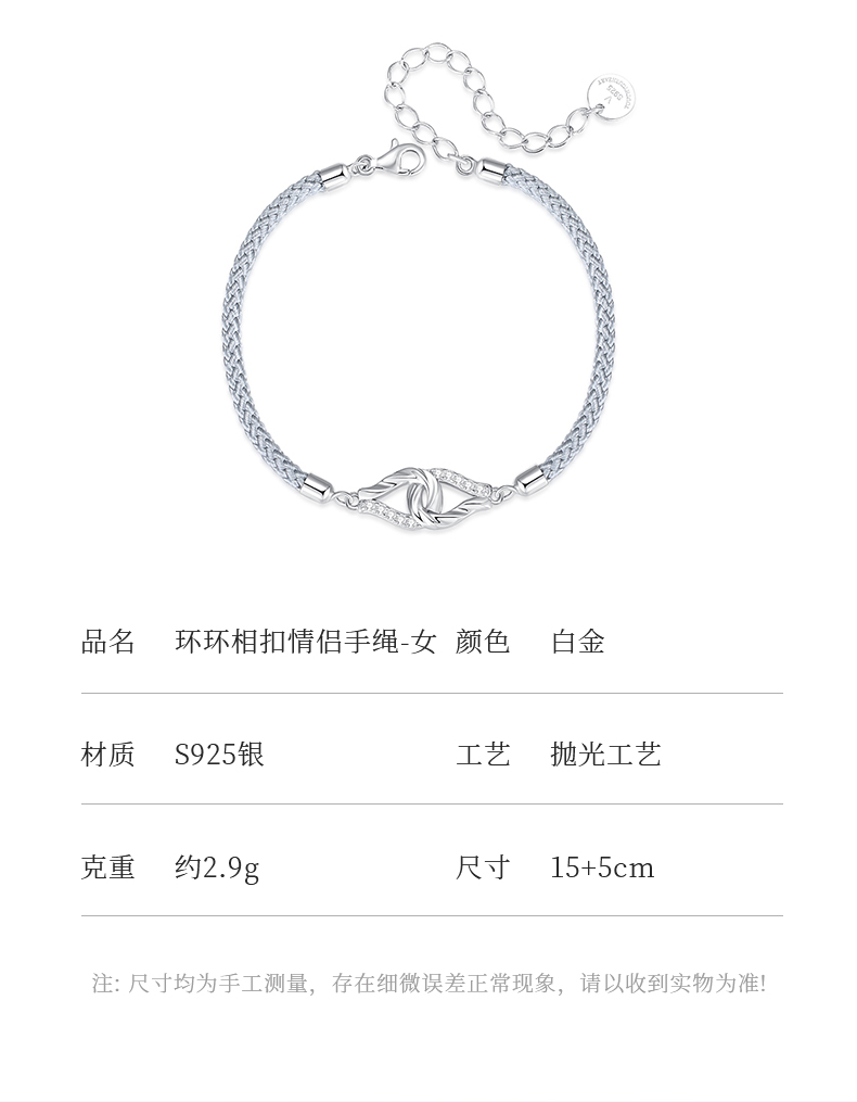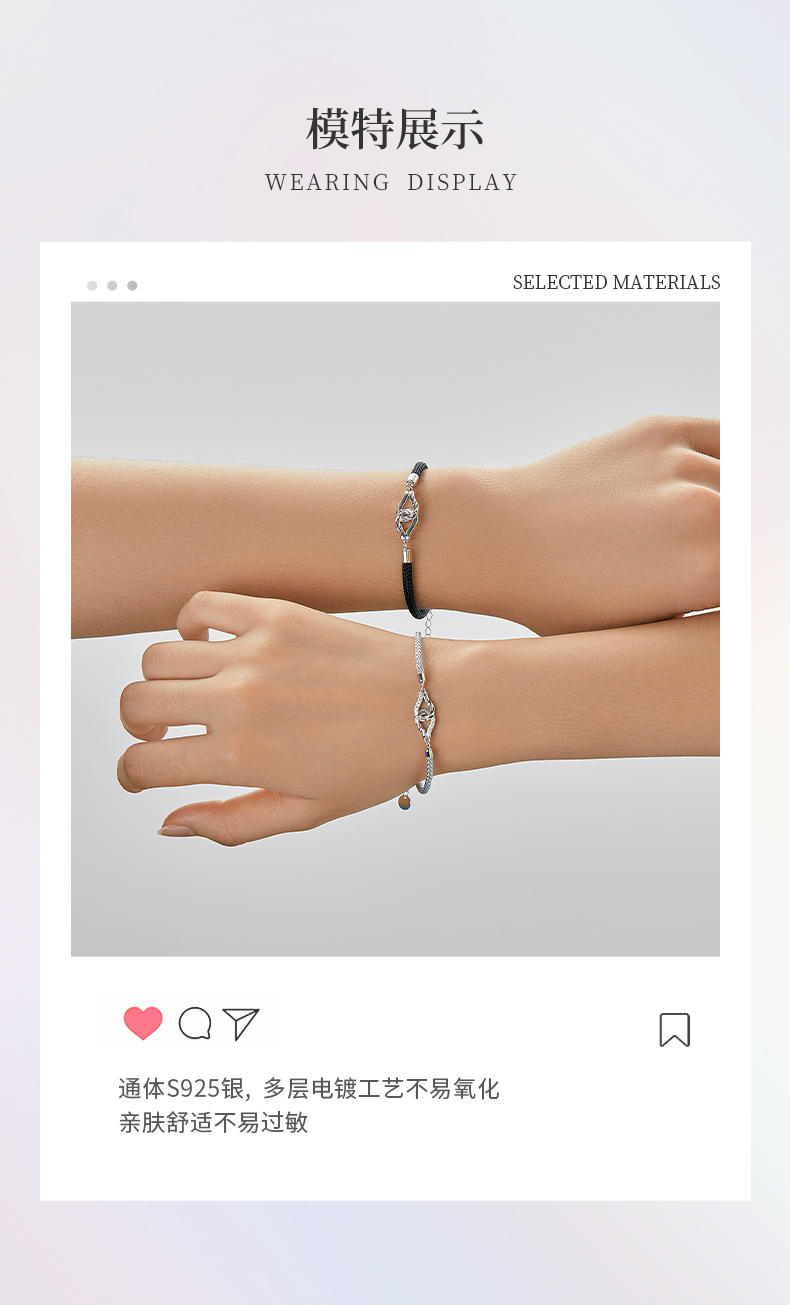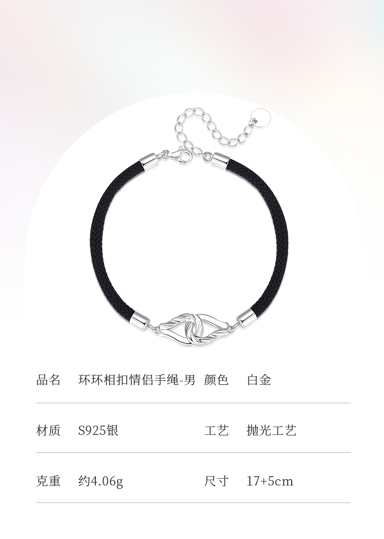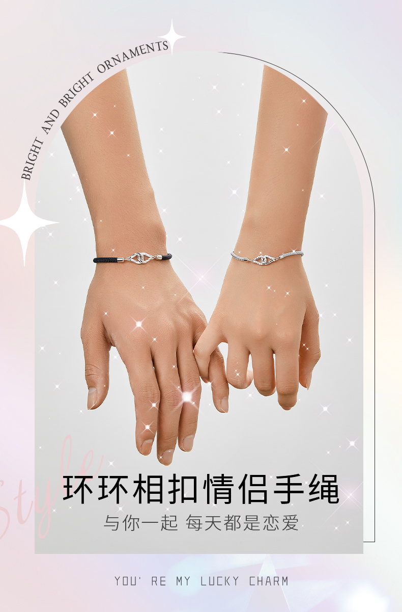 卡蒂罗KADER 环环相扣情侣手链 两心环扣怦然心动925银精致时尚氛围感可调节拼接链 恋爱频率简约百搭七夕