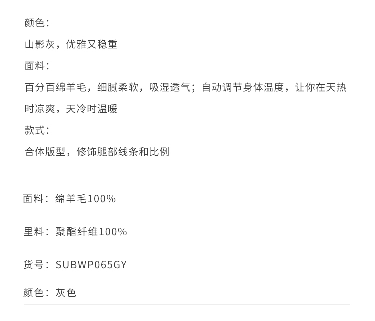 callisto高智系列海藻灰绵羊毛西裤
