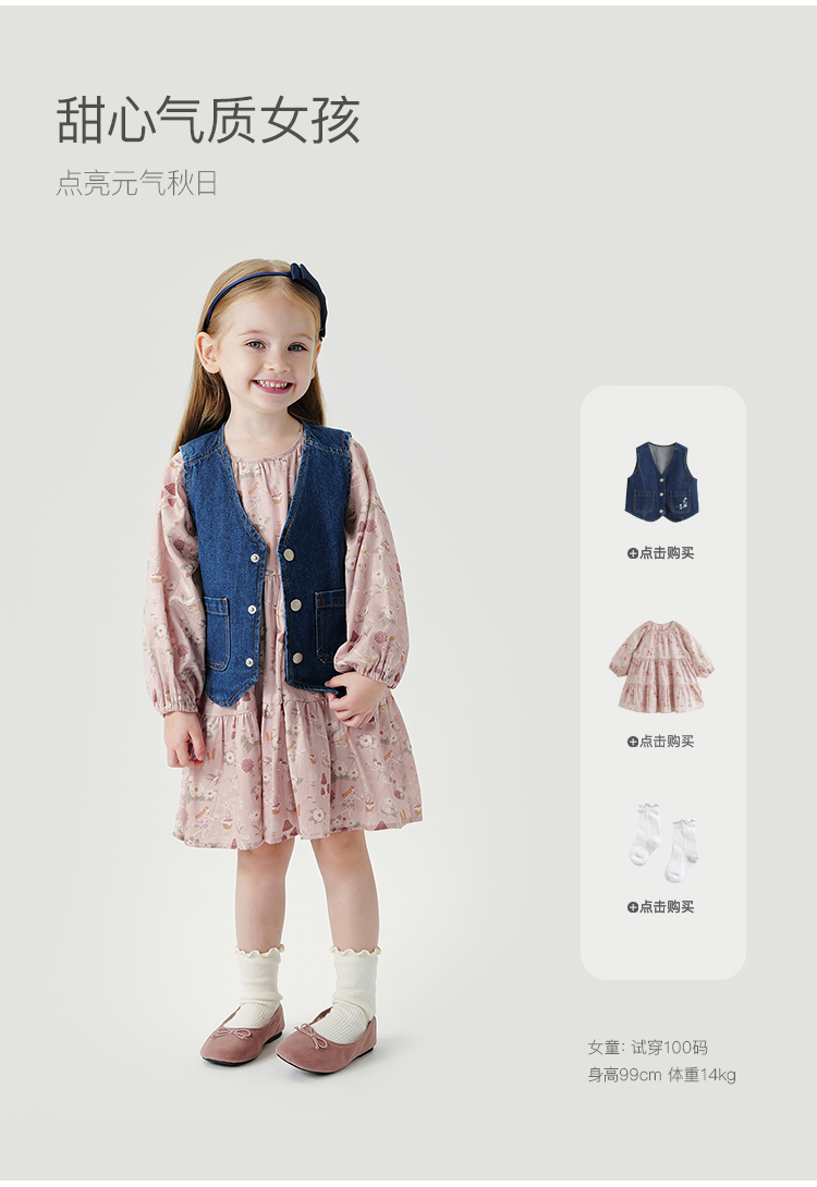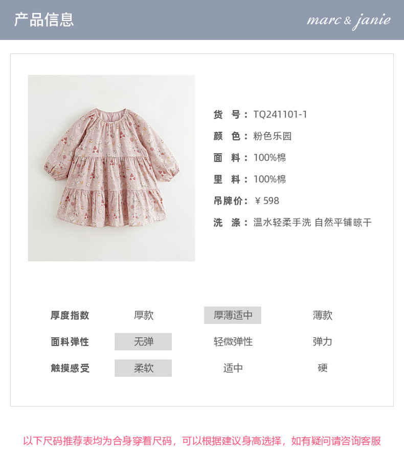 【商场同款】马克珍妮女童法式满地碎花连衣裙儿童裙子秋装241101