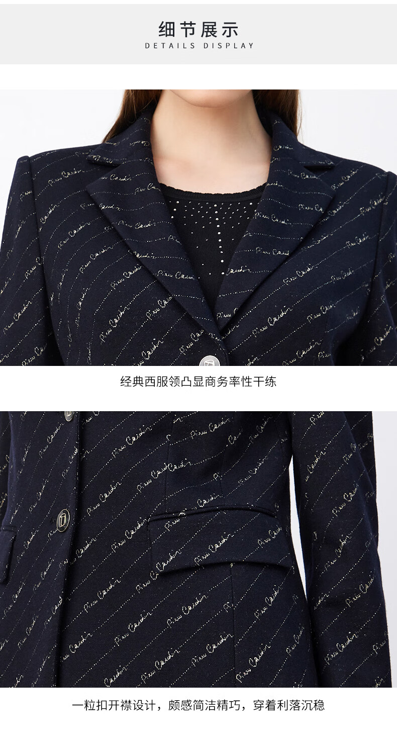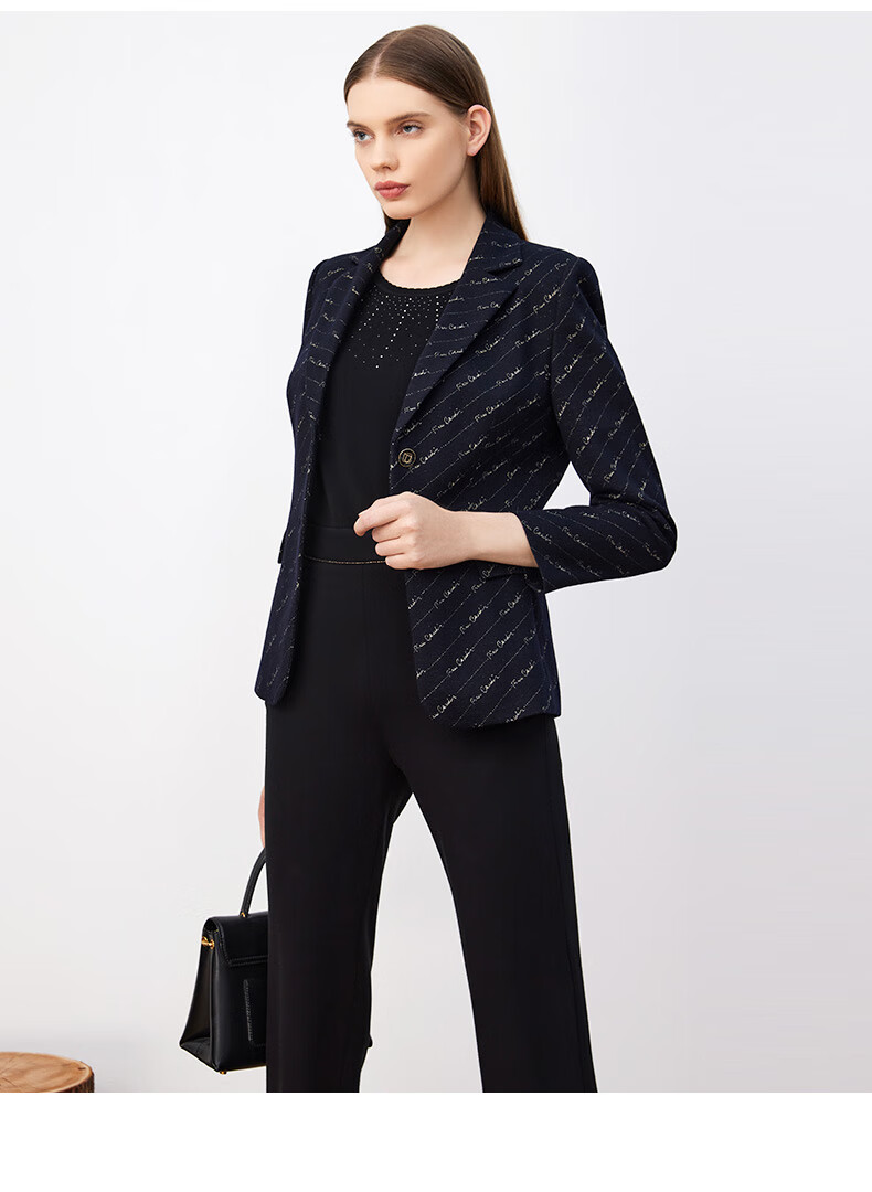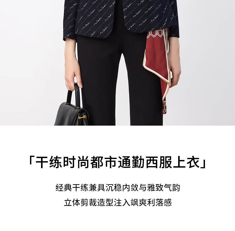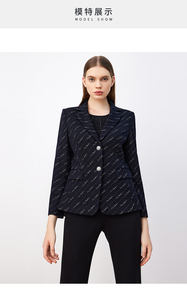 皮尔卡丹女装西装羊毛复古花色时尚通勤干练西服外套P3430U3966N0