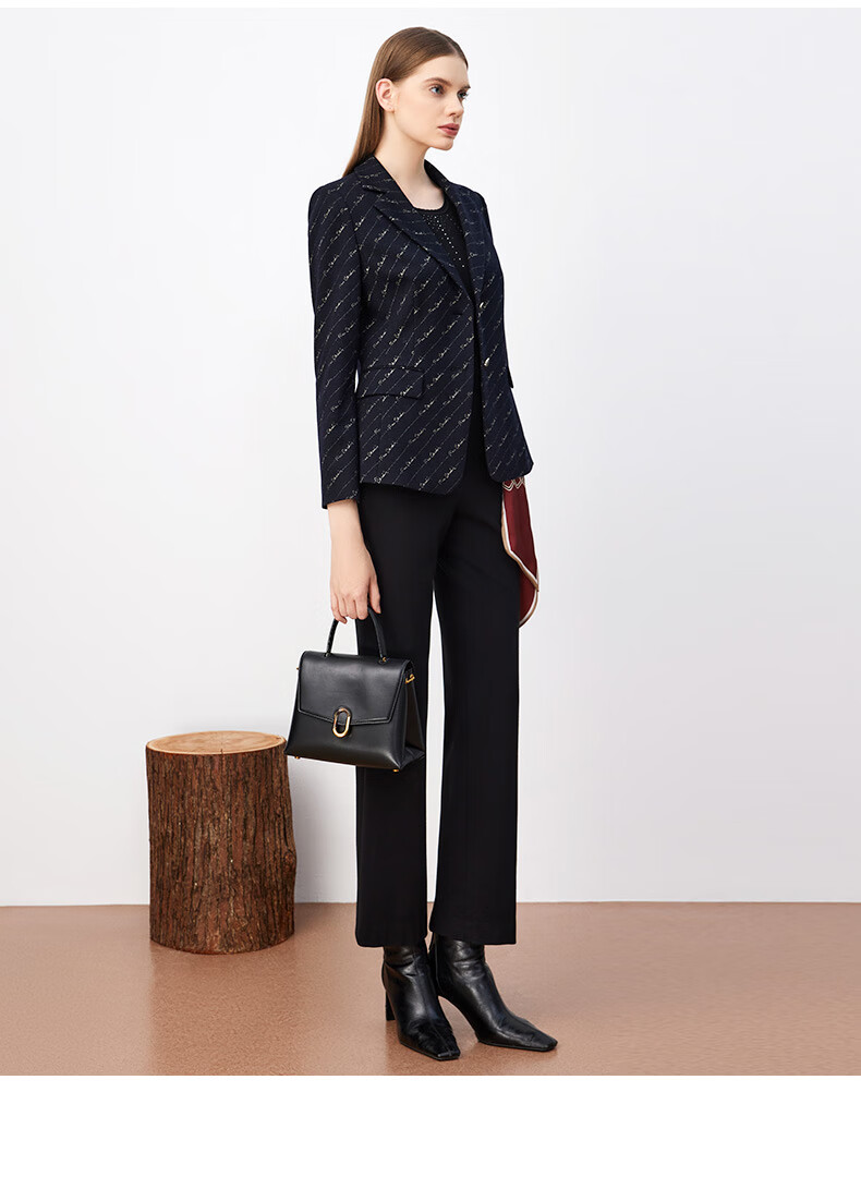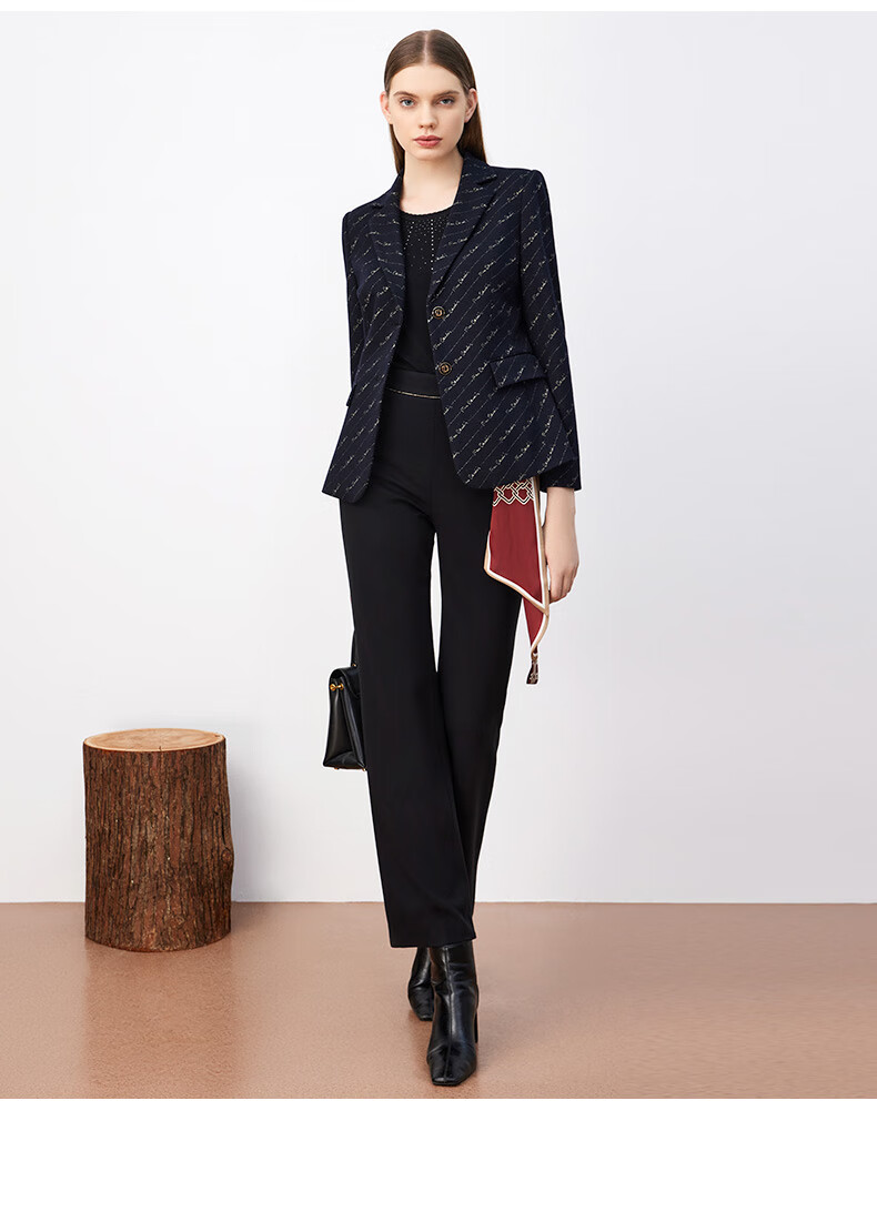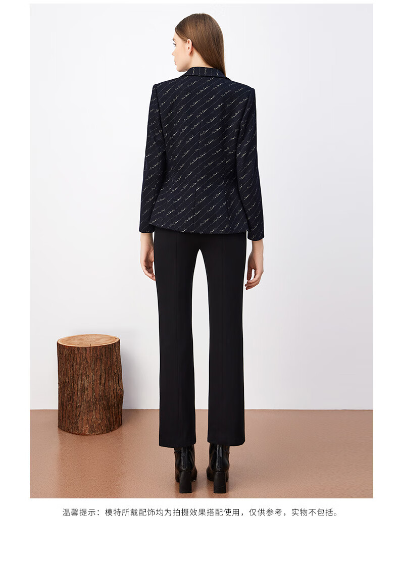 皮尔卡丹女装西装羊毛复古花色时尚通勤干练西服外套P3430U3966N0