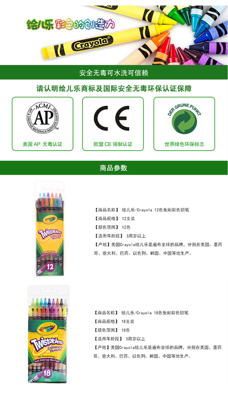 绘儿乐12色可拧转免削彩色铅笔68-7408