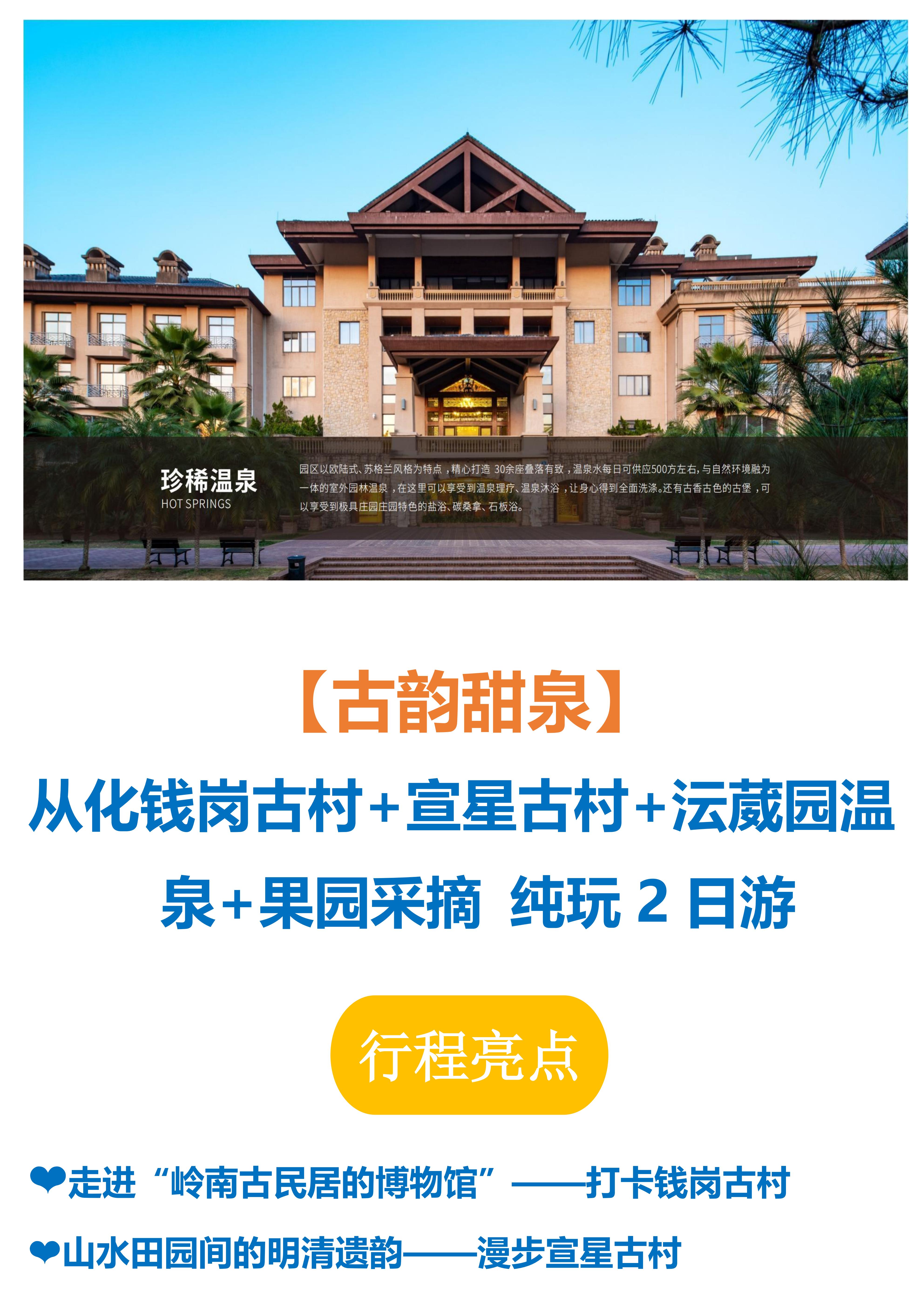 【古韵甜泉】从化钱岗古村+宣星古村+沄葳园温泉+果园采摘二日游