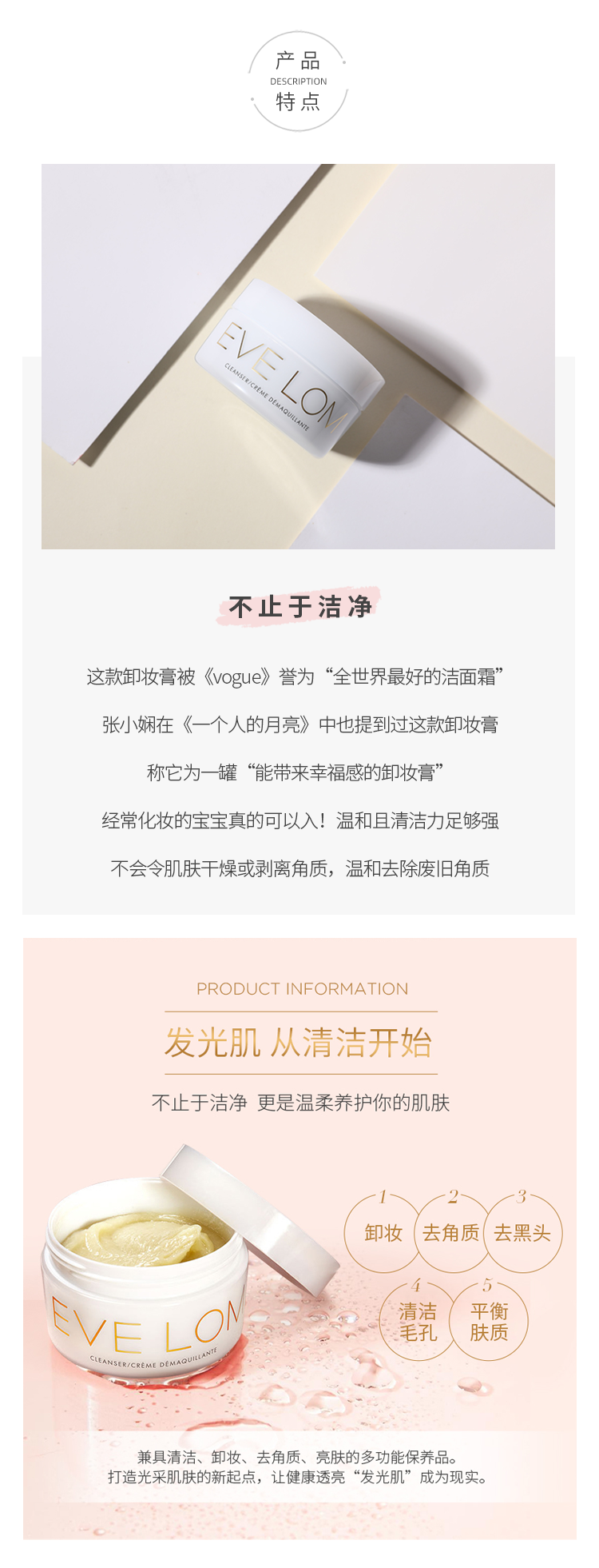 EVE LOM夏娃洛美 经典洁颜霜卸妆膏 温和清洁 亮肤去黑头 50ml/100ml【CDF】