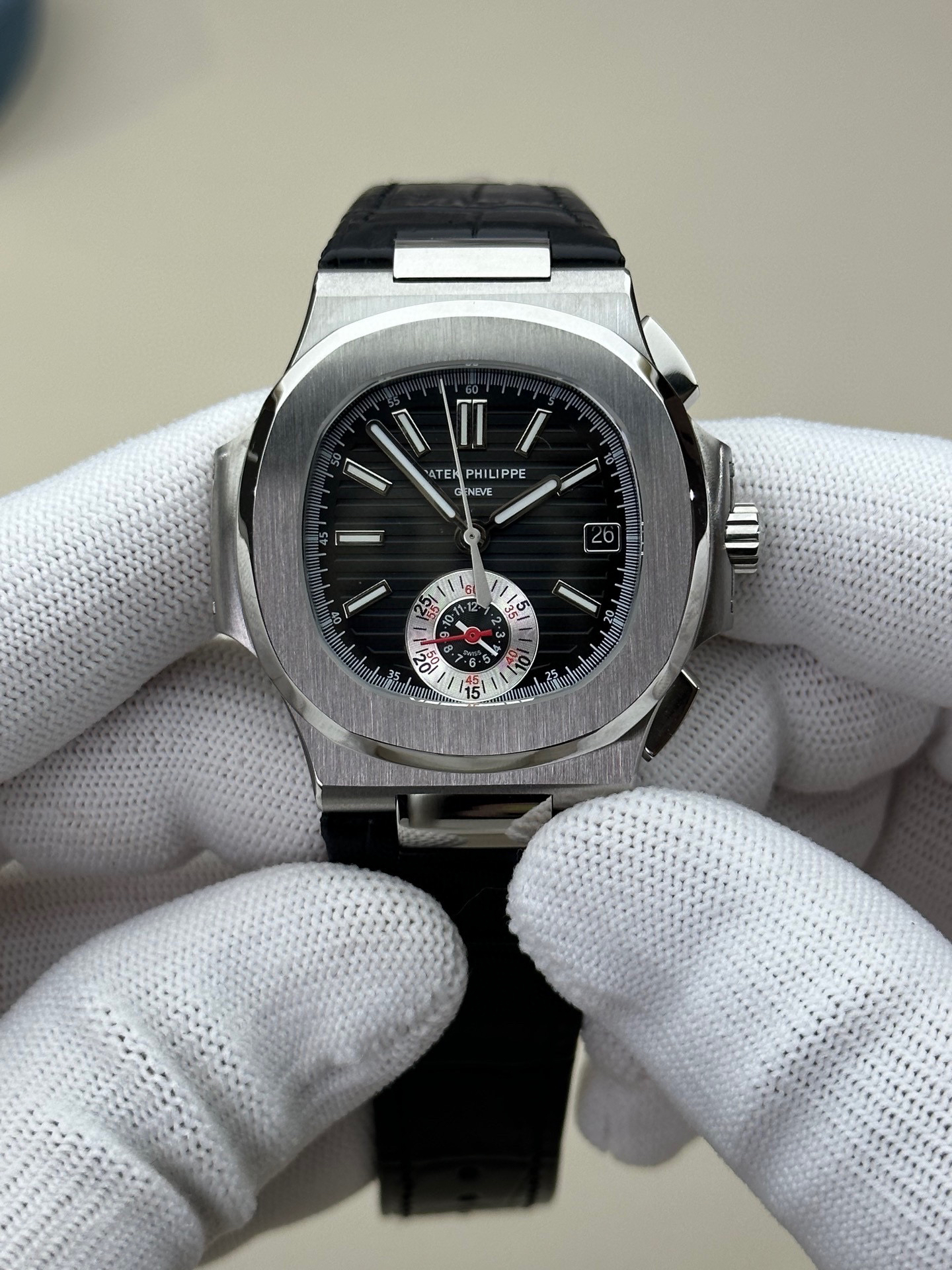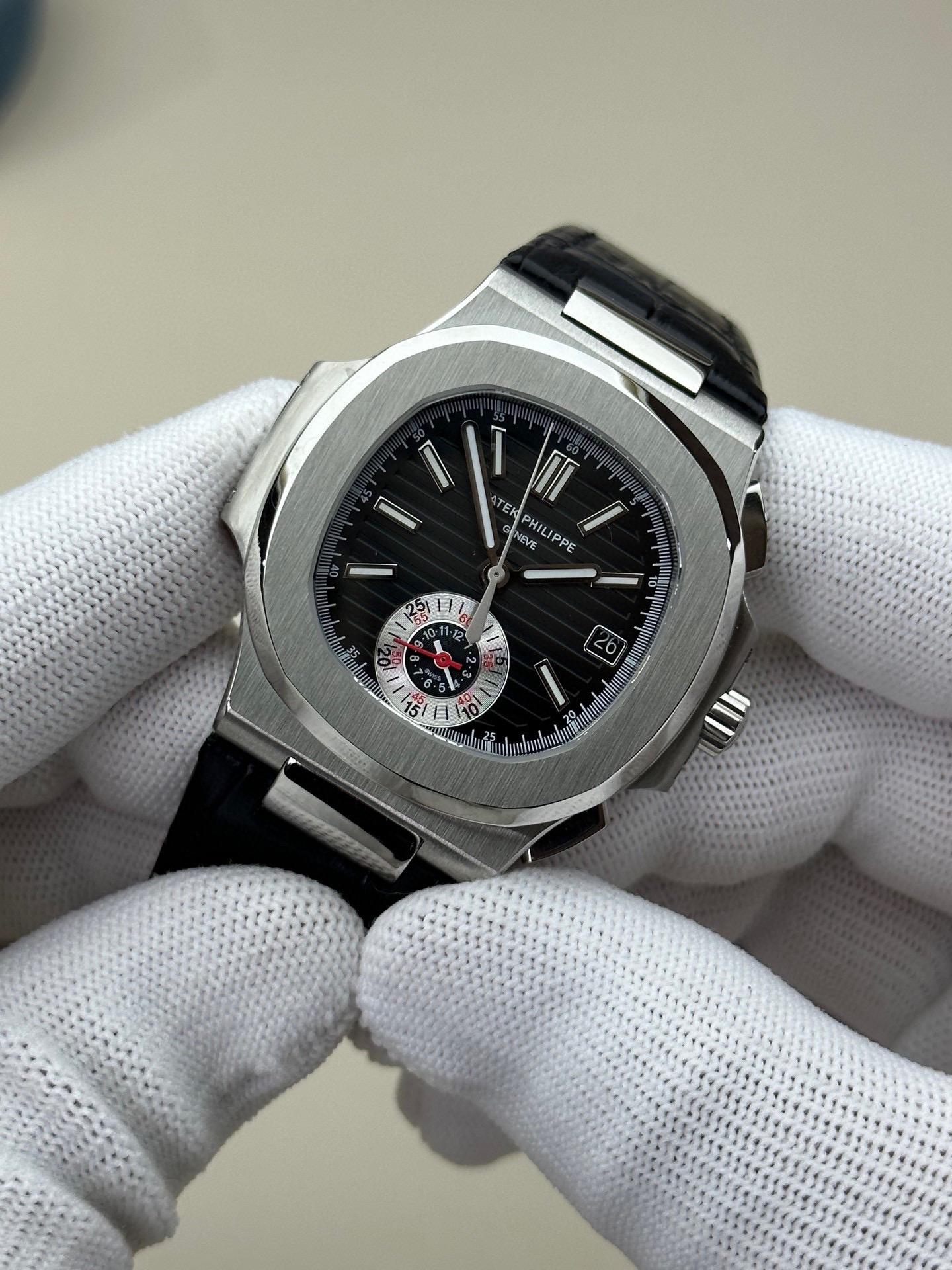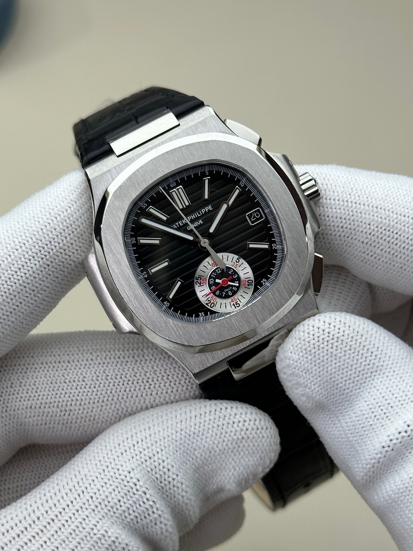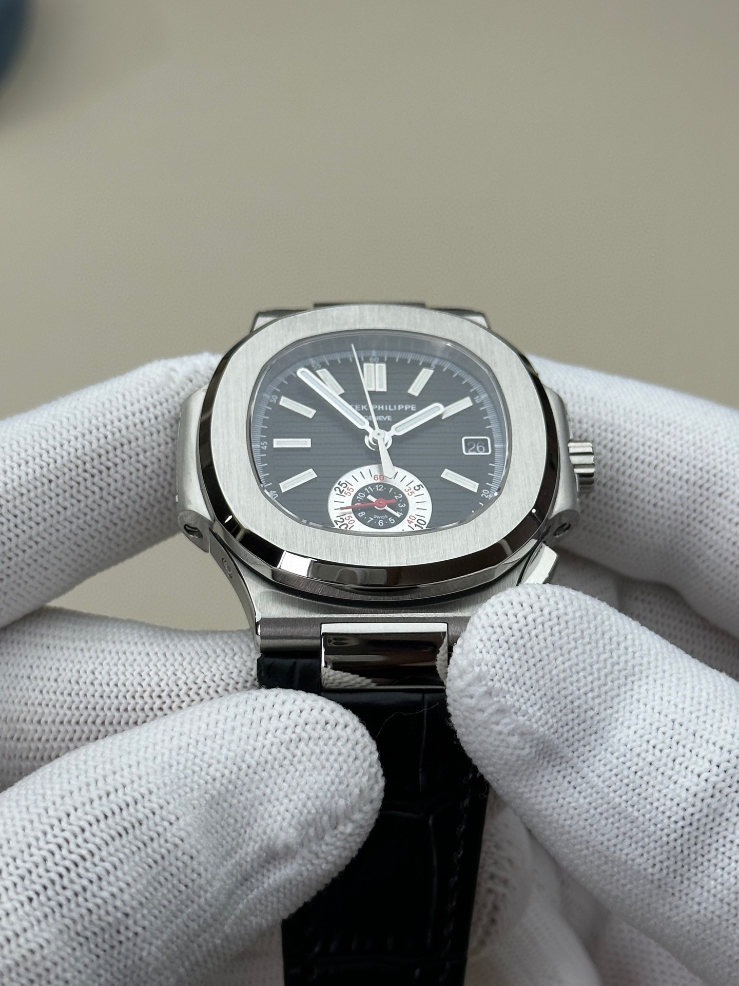 3K厂V3升级版薄薄薄!真功能,真小秒!百达翡丽鹦鹉螺5980多功能计时腕表【表壳】腕表尺寸40.5毫米,厚度为全网最薄仅13.5毫米,同正品一致的枕型表壳采用正面拉丝❕❕