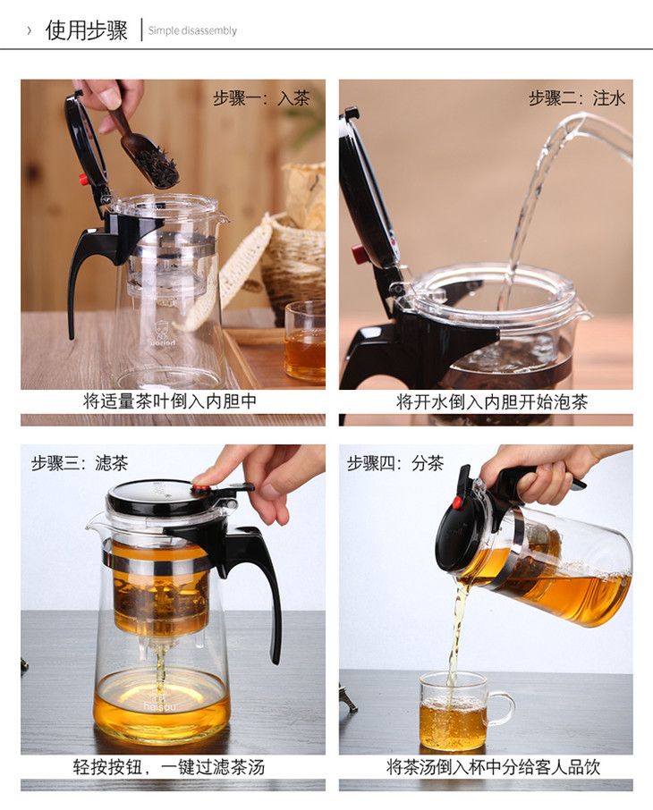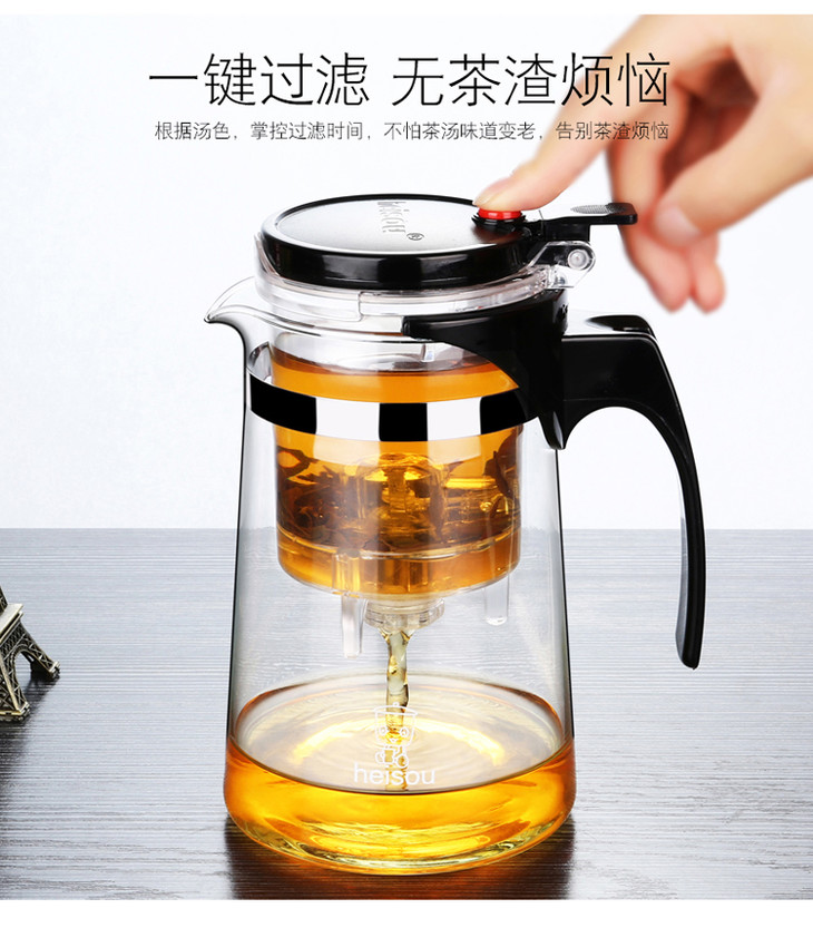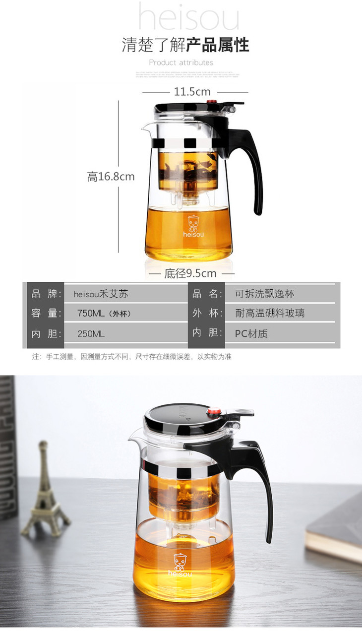 【清仓】heisou飘逸杯750ml大容量玻璃茶壶可全拆洗内胆过滤泡茶壶耐热包邮