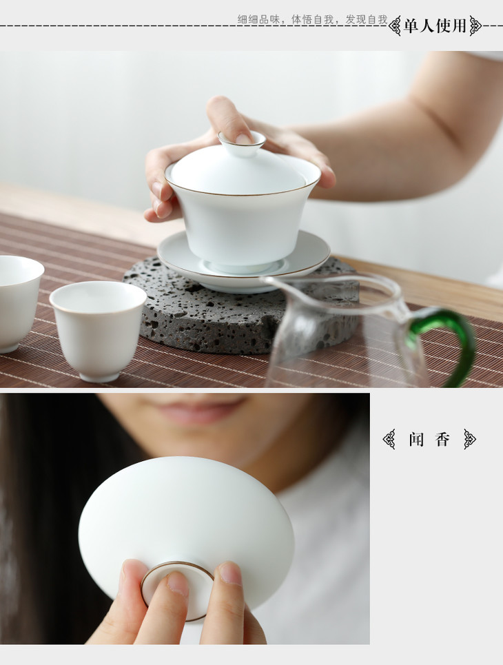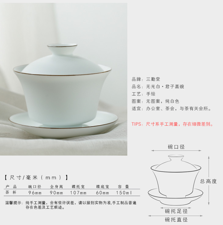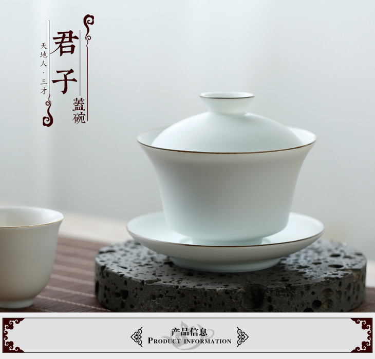 陶瓷功夫茶具.定窑白三才碗茶杯