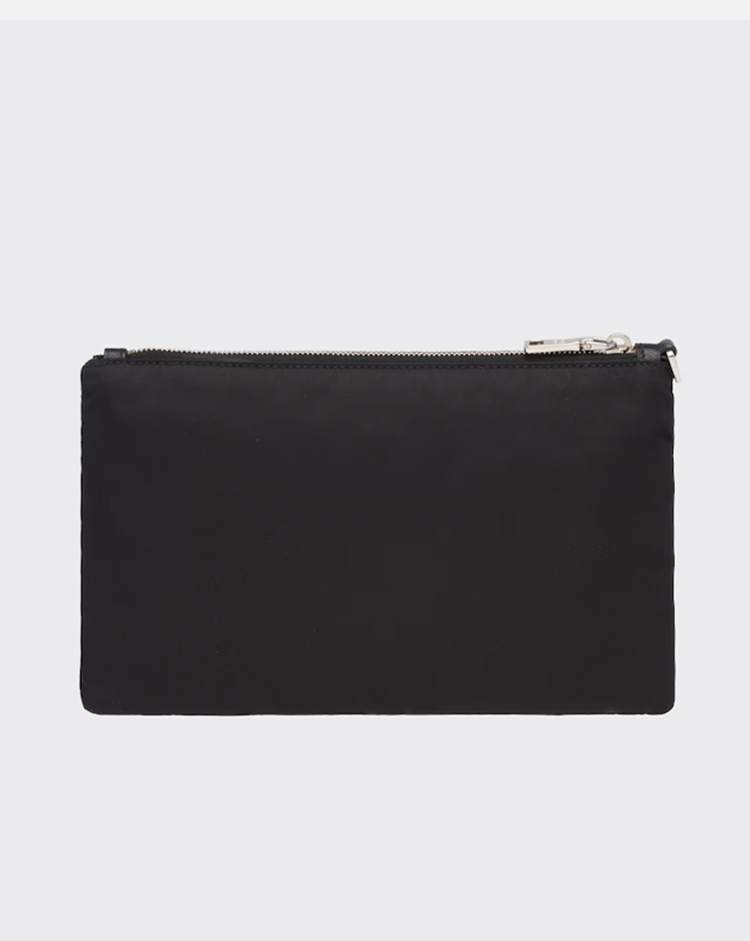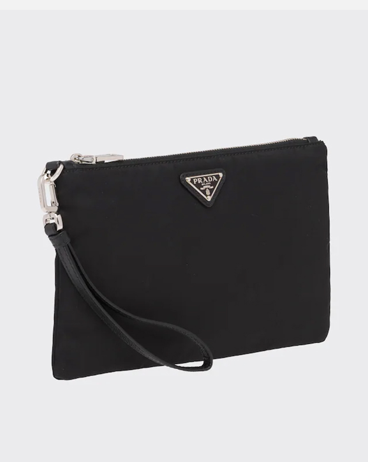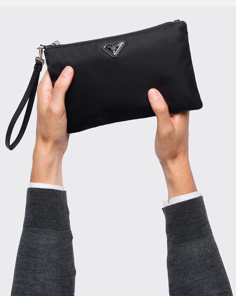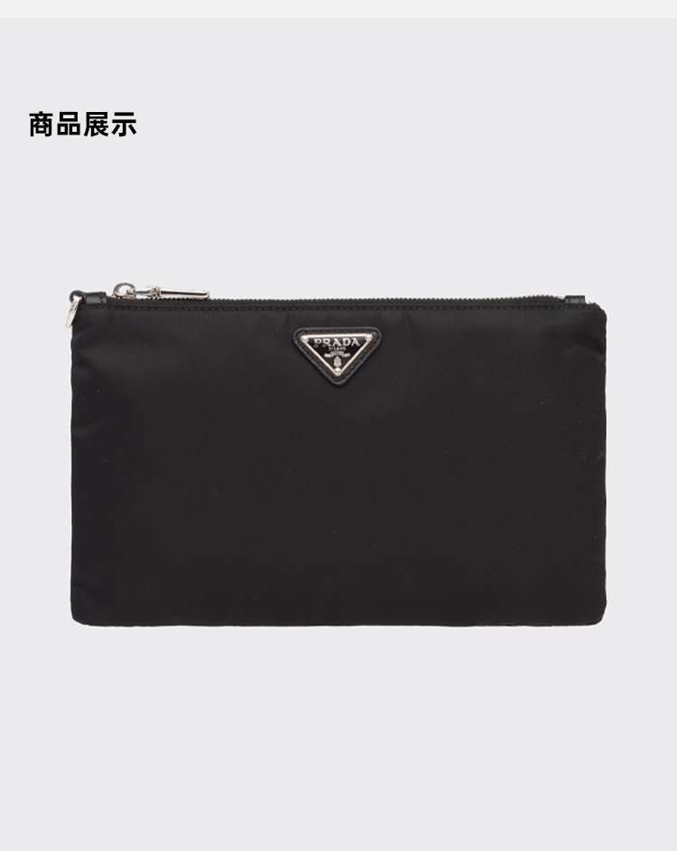 PRADA 普拉达 男士珐琅金属三角形徽标Re-Nylon 和 Saffiano 皮革手包 黑色 2NH004 2DMH F0002
