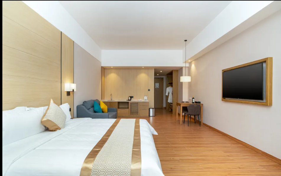 酒店位于占地约160万平方米的高尔夫球场内,其中主楼为层高15层的悦景楼。附楼为层高8楼的宜景楼。为周边客房总量居前列的大型酒店。酒店闹中取静,推窗即可触达绿茵美景。