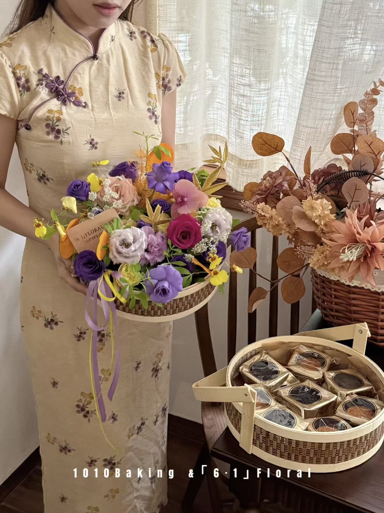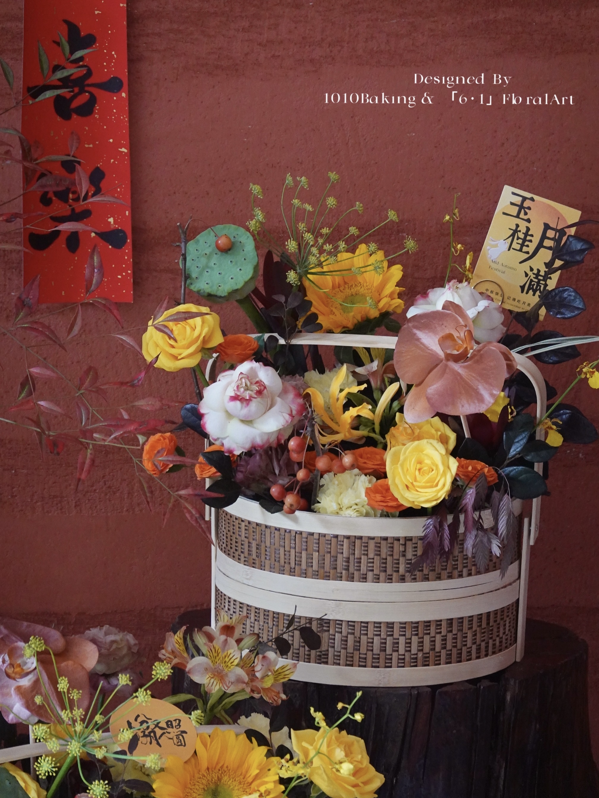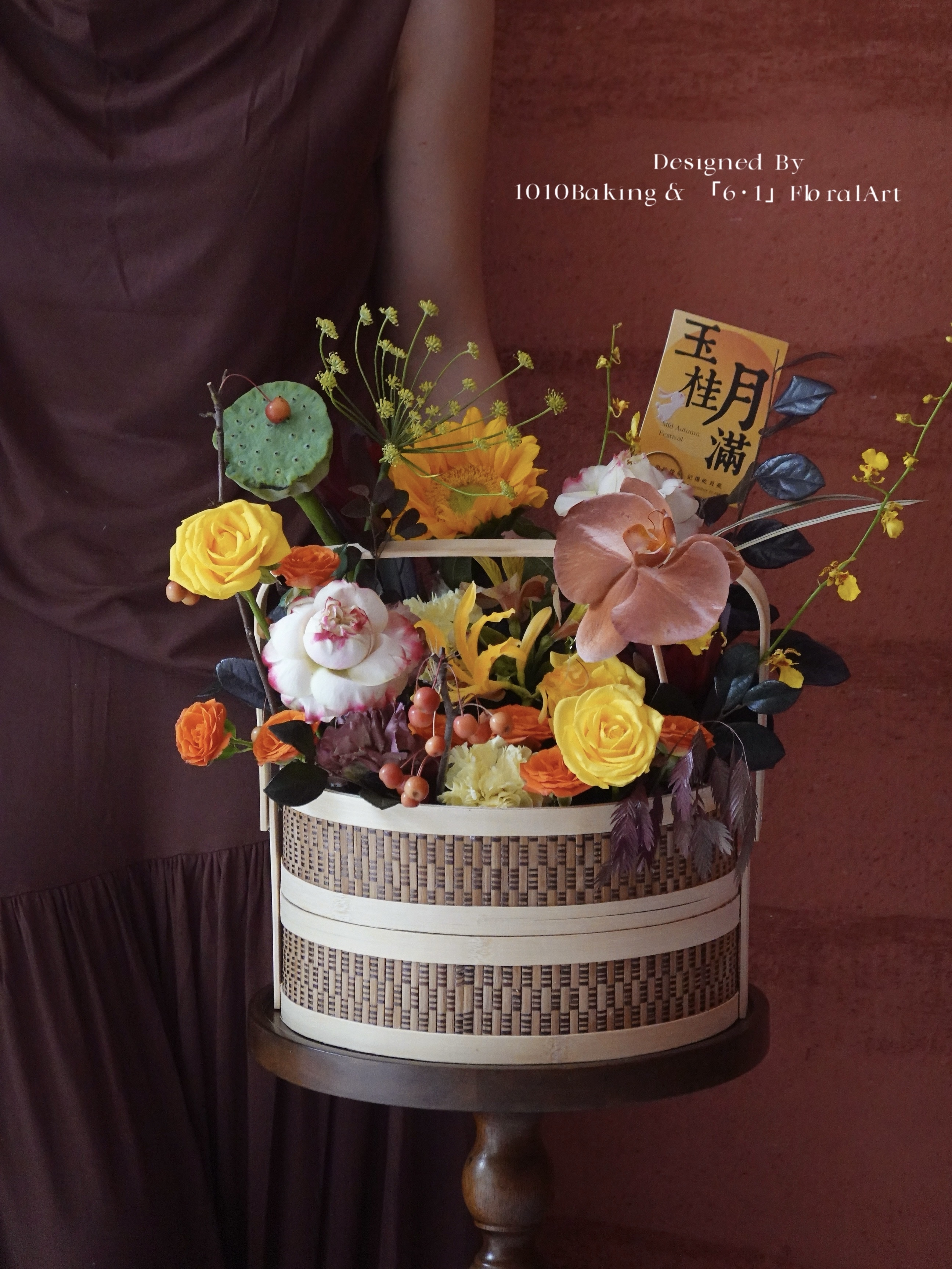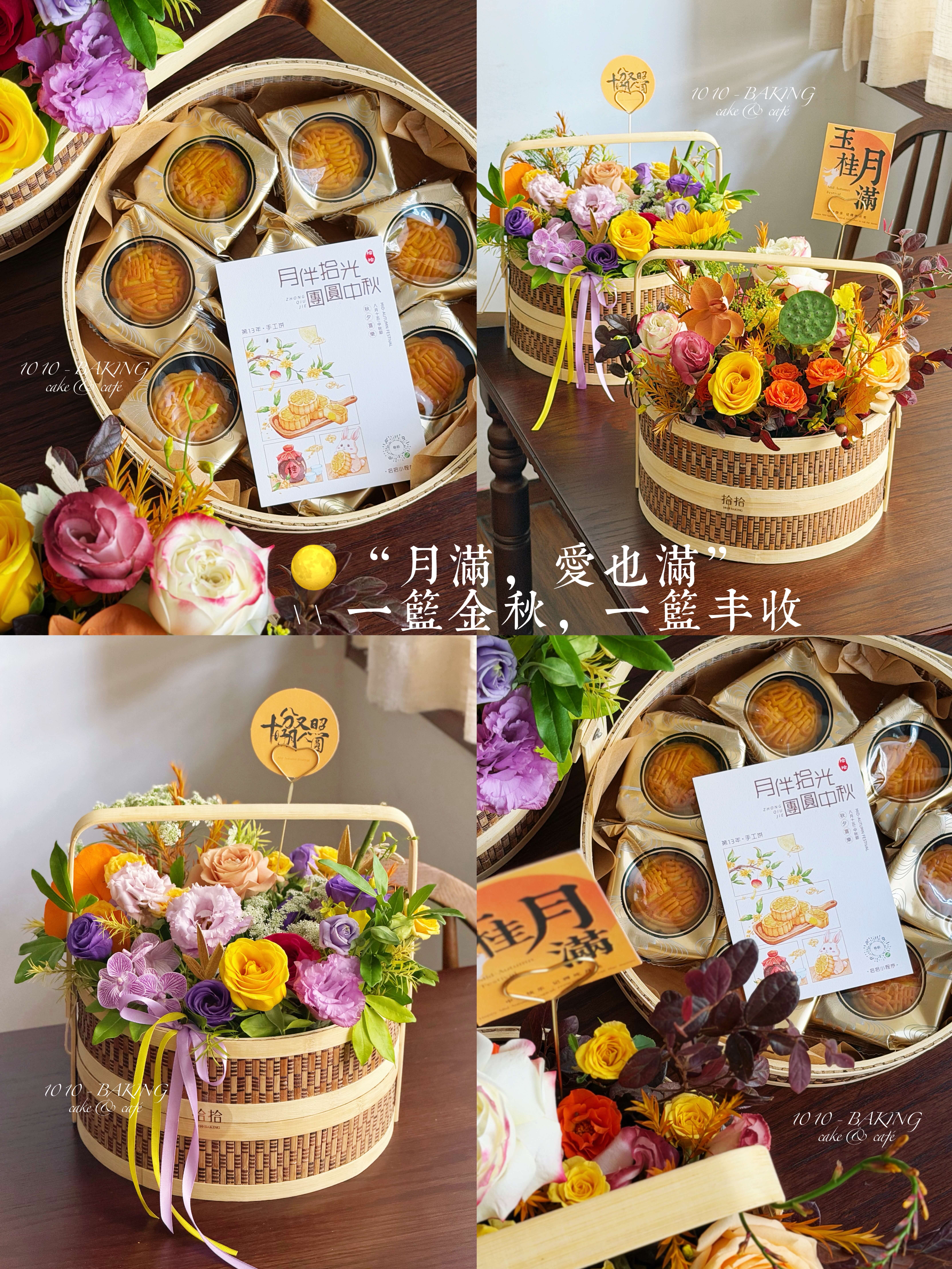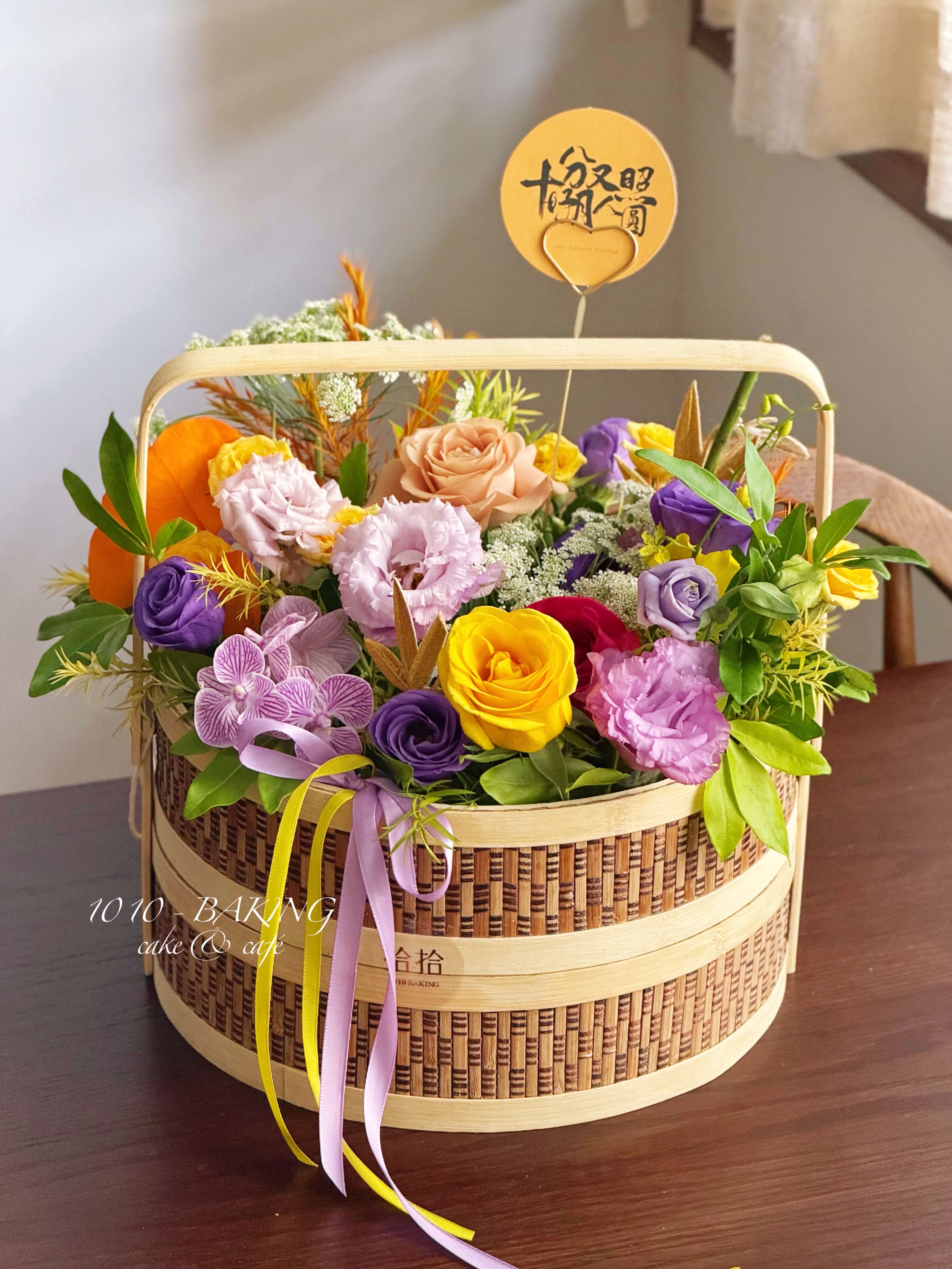 【下架】第13年秋夕·心意版【手提月饼花礼篮】两款花色可选·中式竹编双层手提月饼花篮(提前2小时)