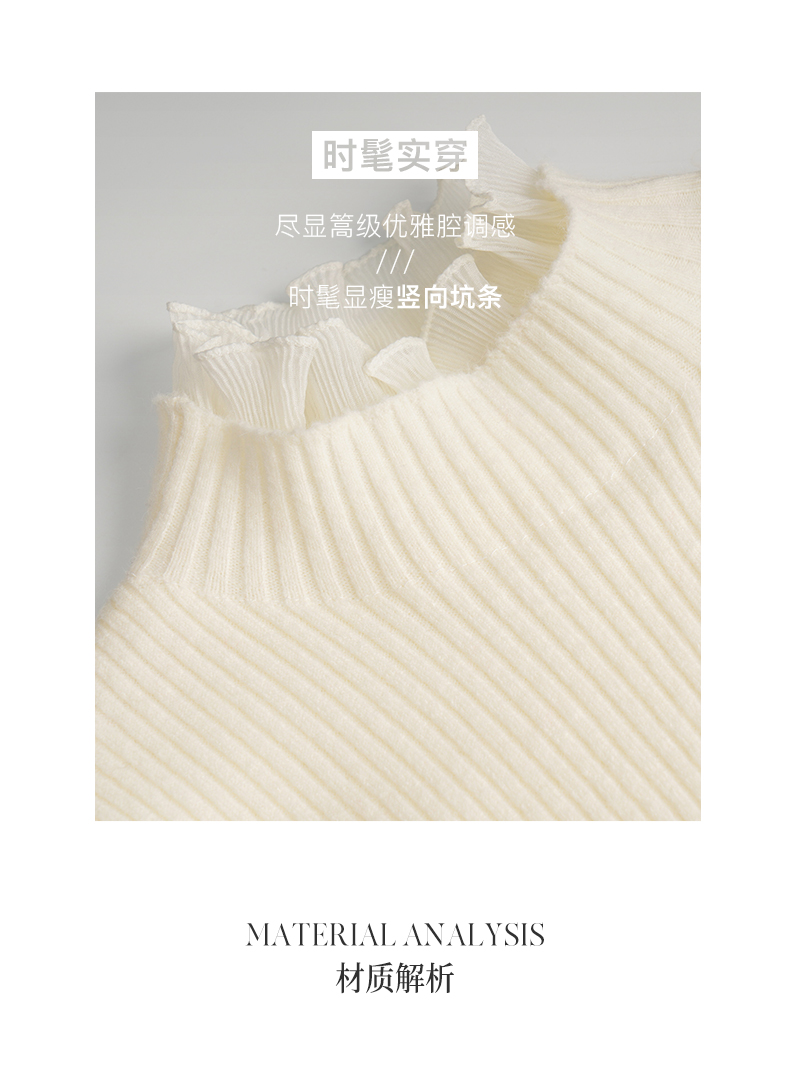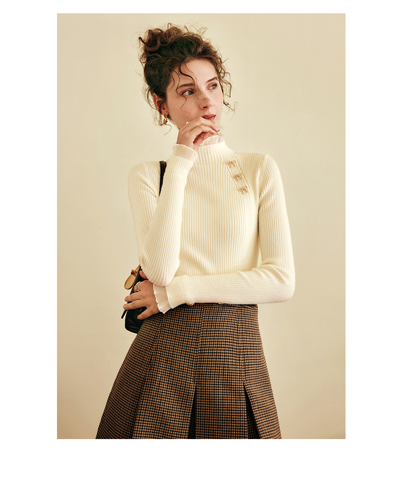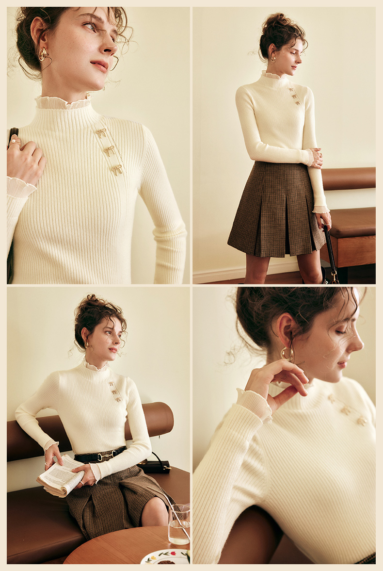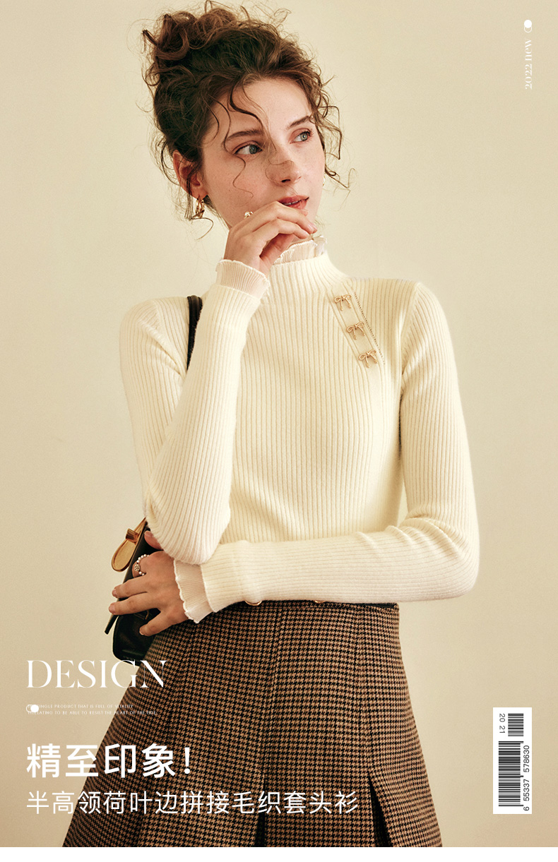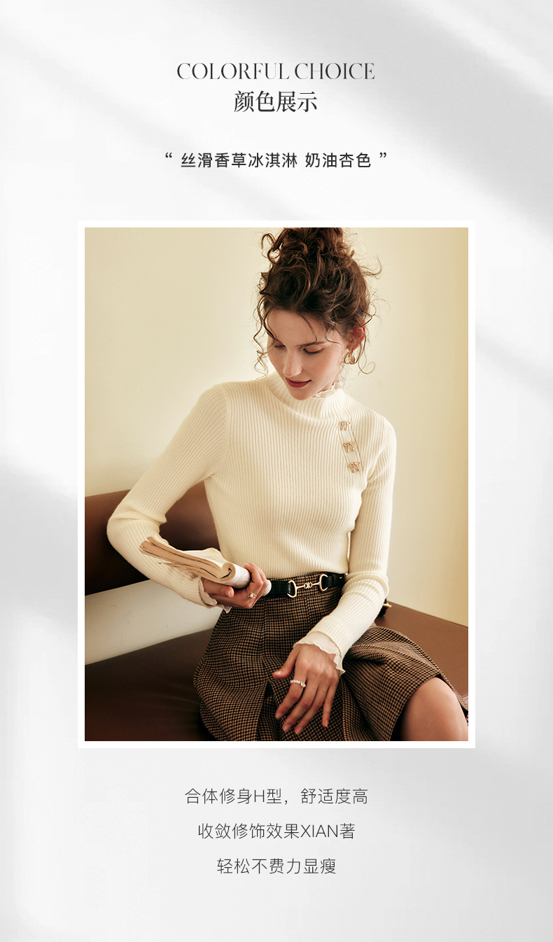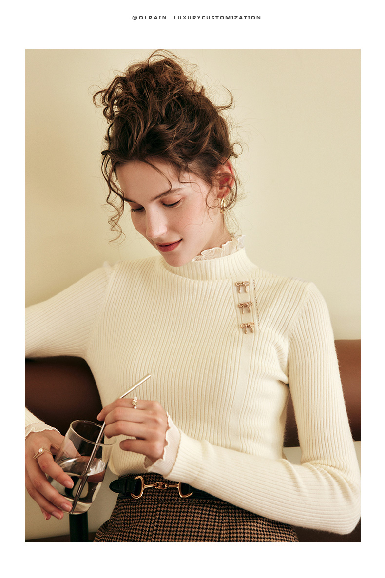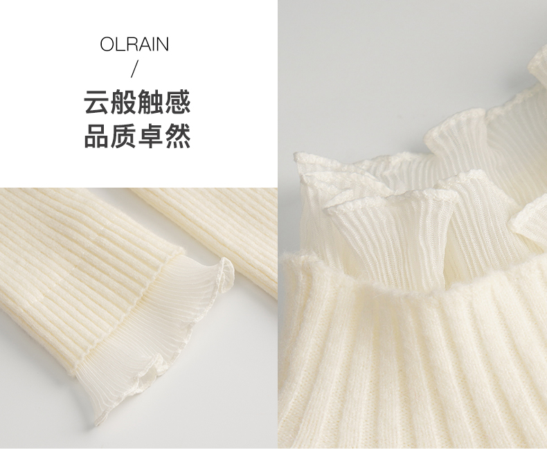 OLrain欧芮儿法式半高领套头毛衣女秋冬2022新款修身拼接针织上衣