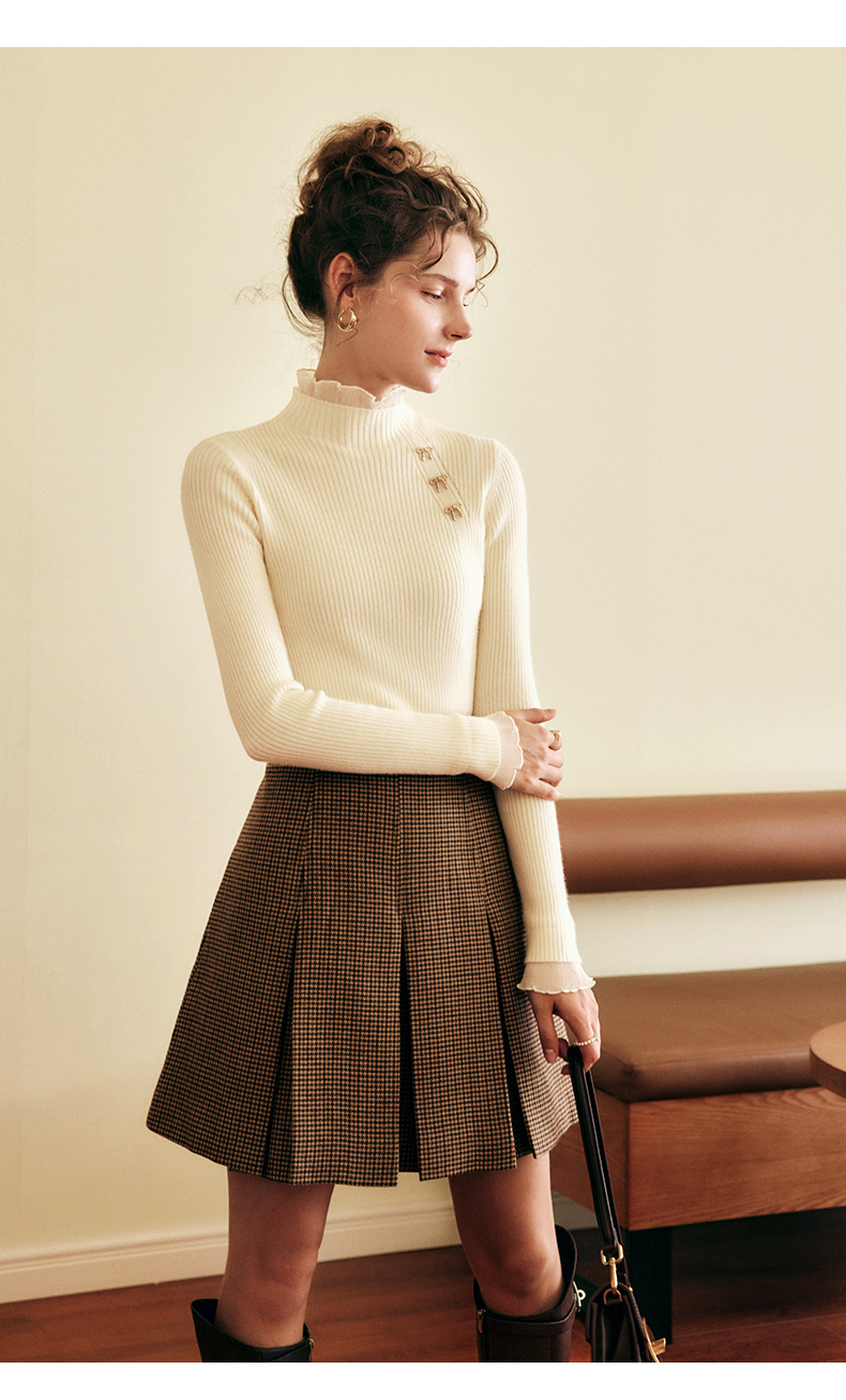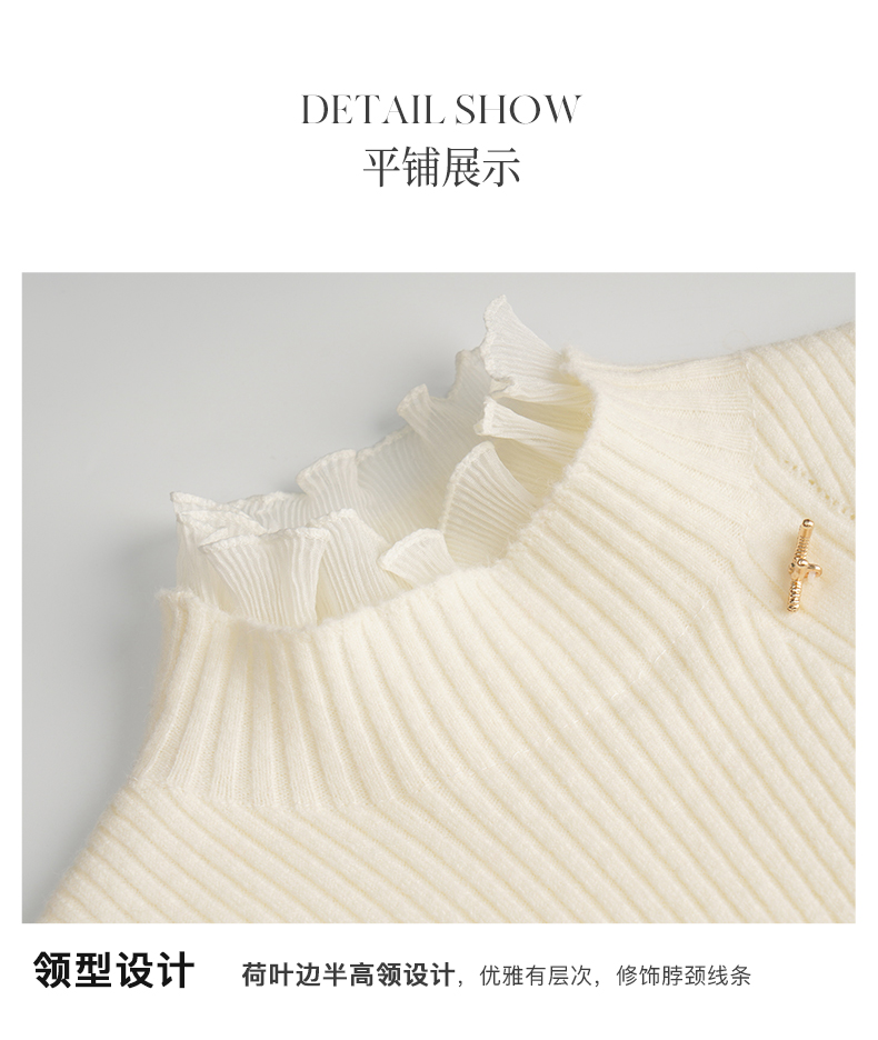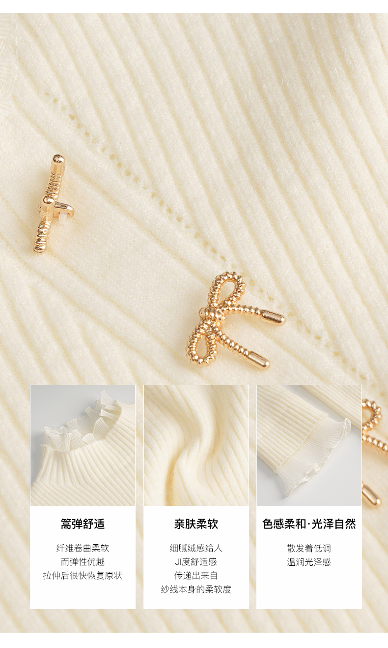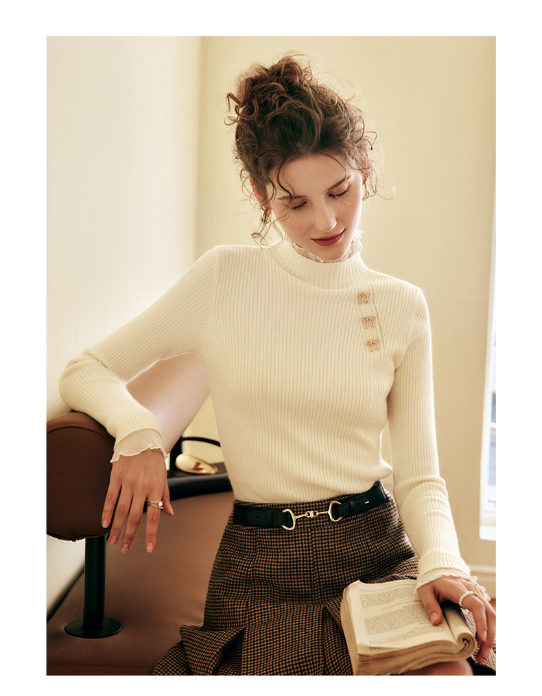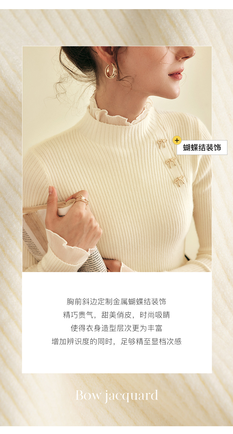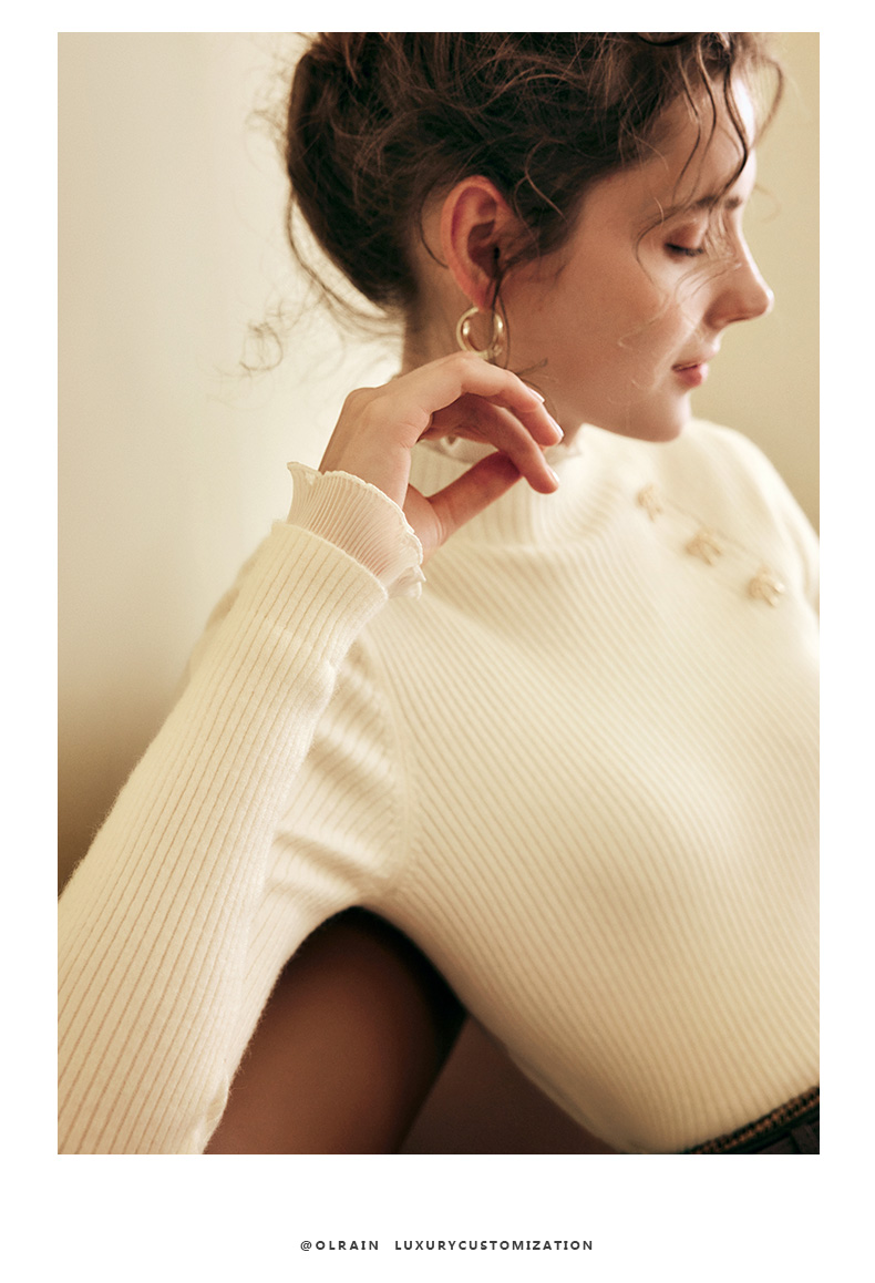 OLrain欧芮儿法式半高领套头毛衣女秋冬2022新款修身拼接针织上衣