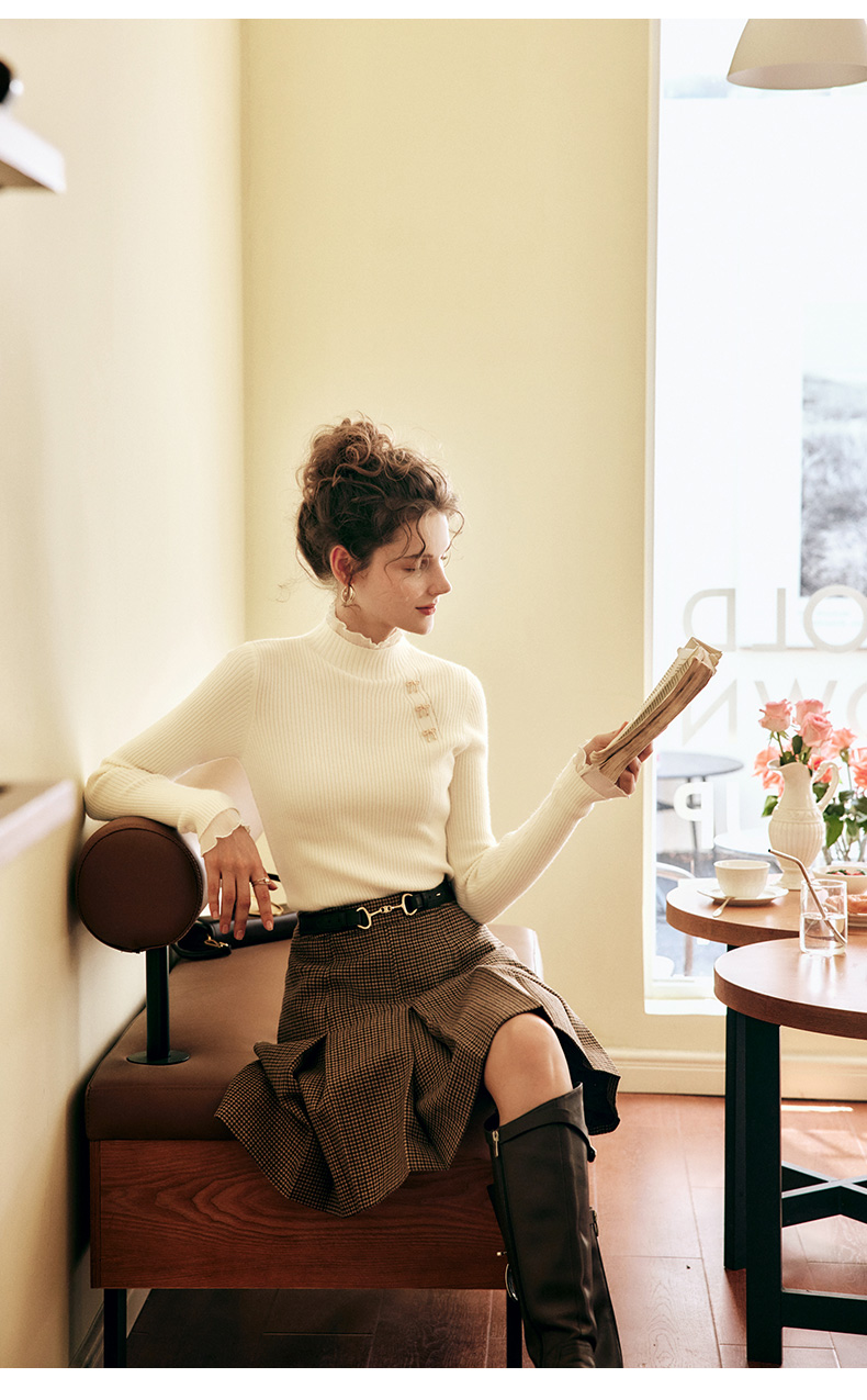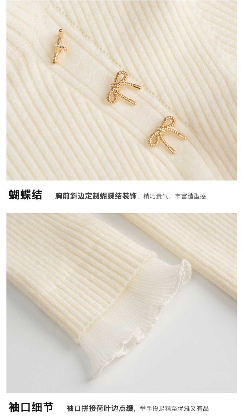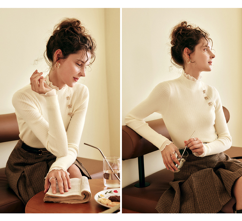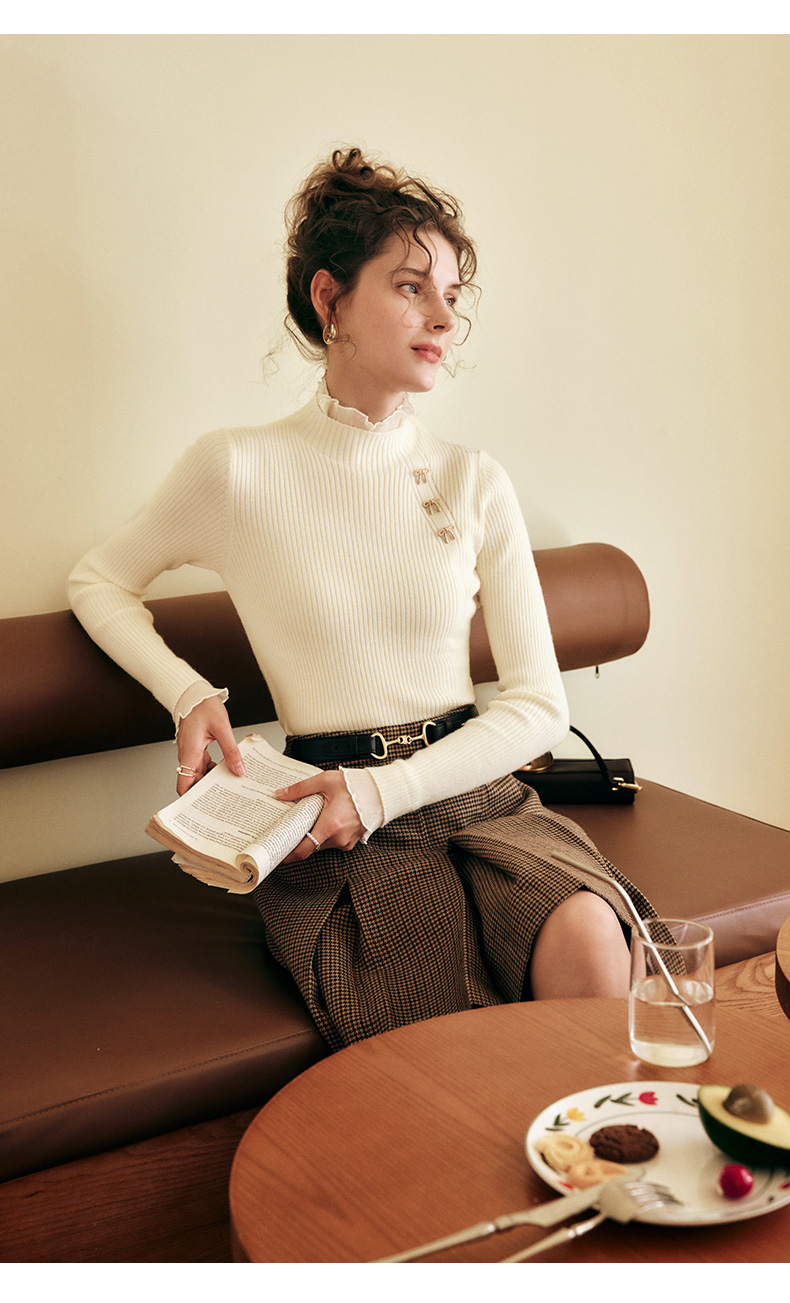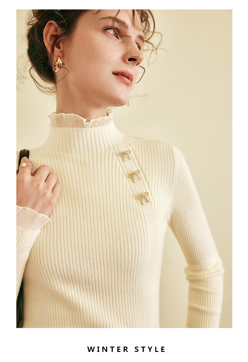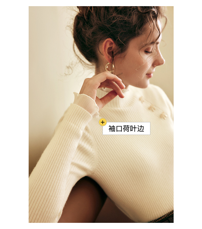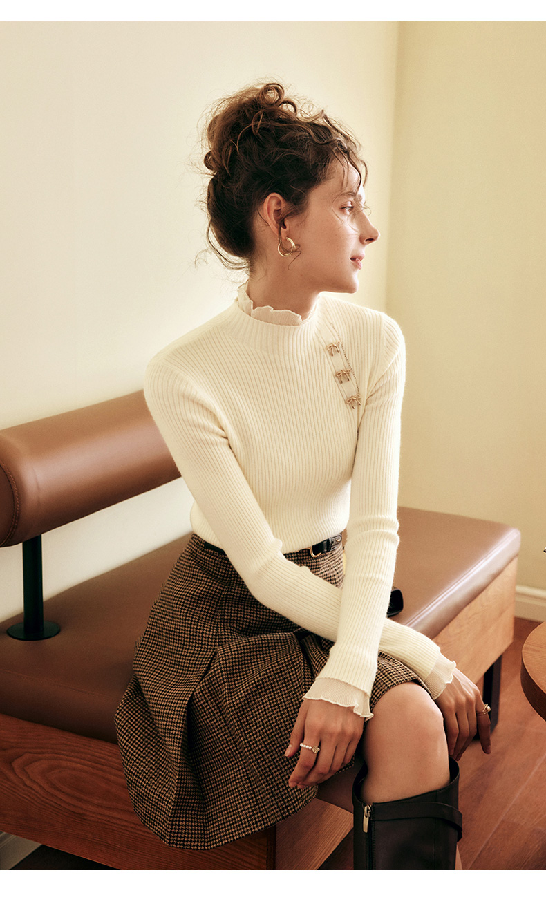 OLrain欧芮儿法式半高领套头毛衣女秋冬2022新款修身拼接针织上衣