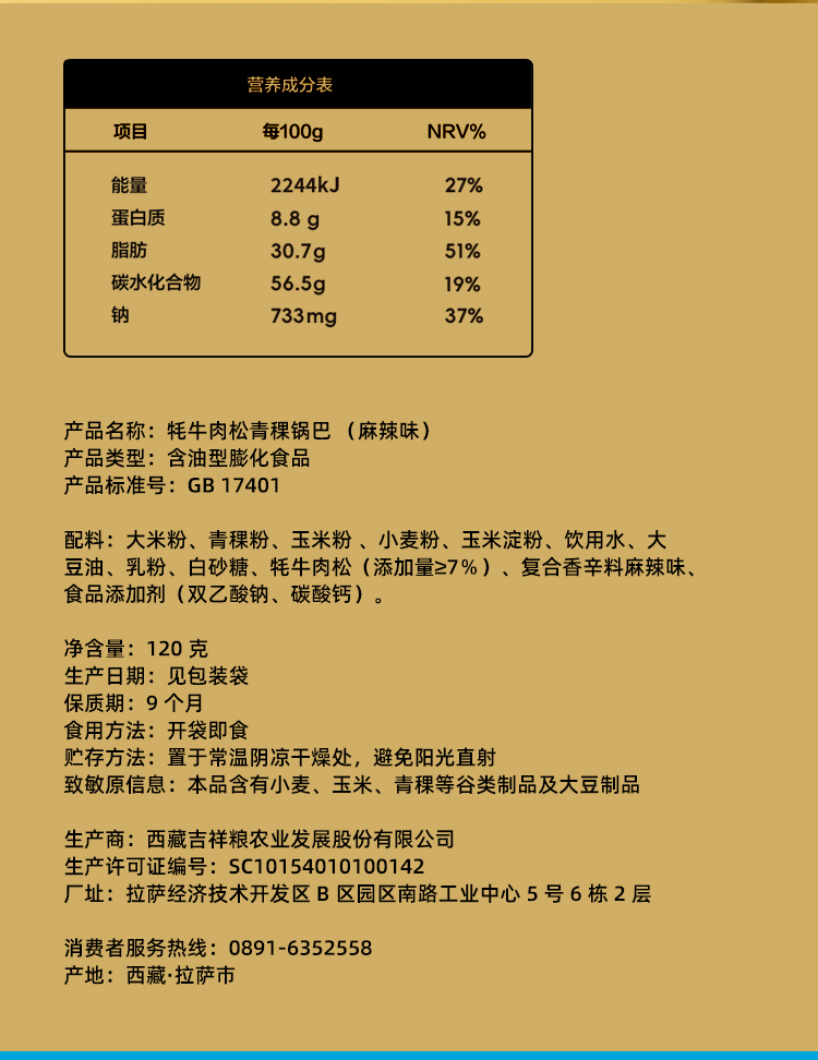 【严选】西藏吉祥粮牦牛肉松青稞锅巴(麻辣味)/(五香味)120g/盒 (厂家直发)