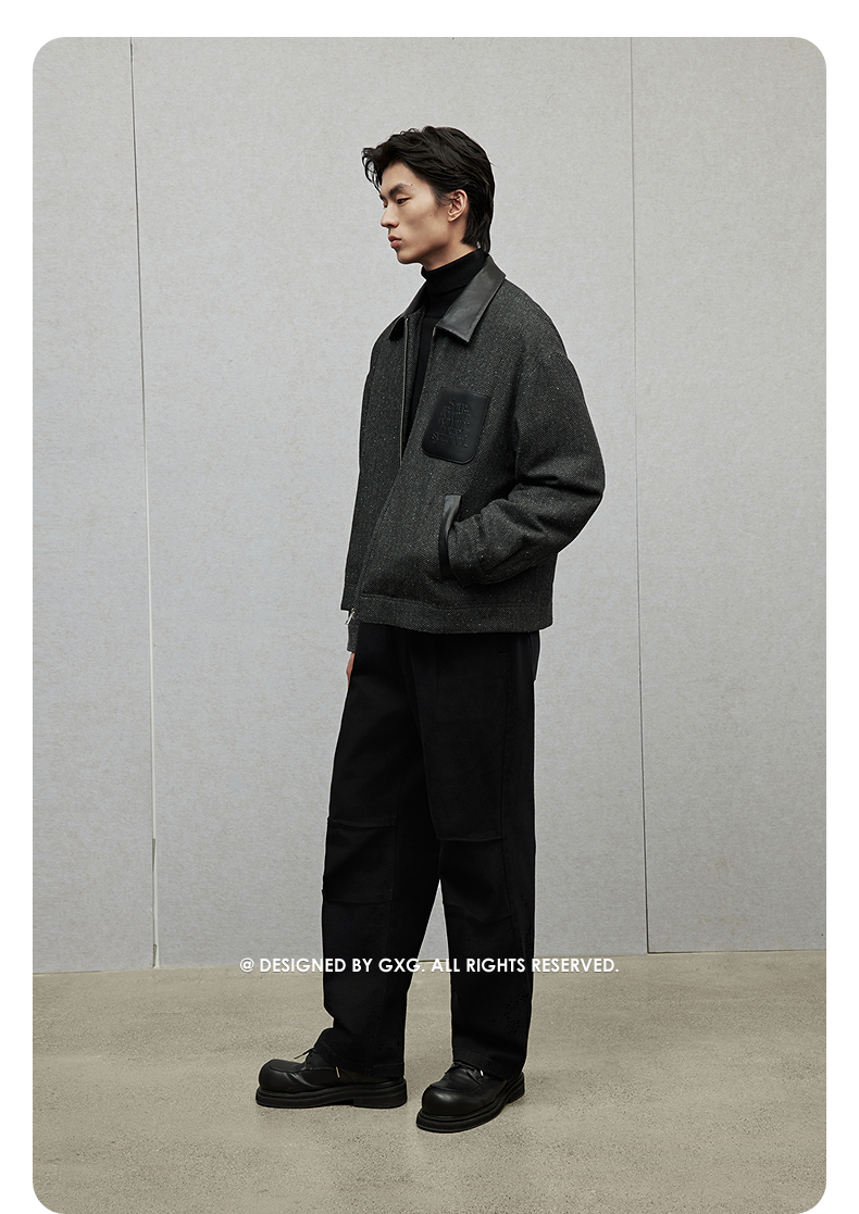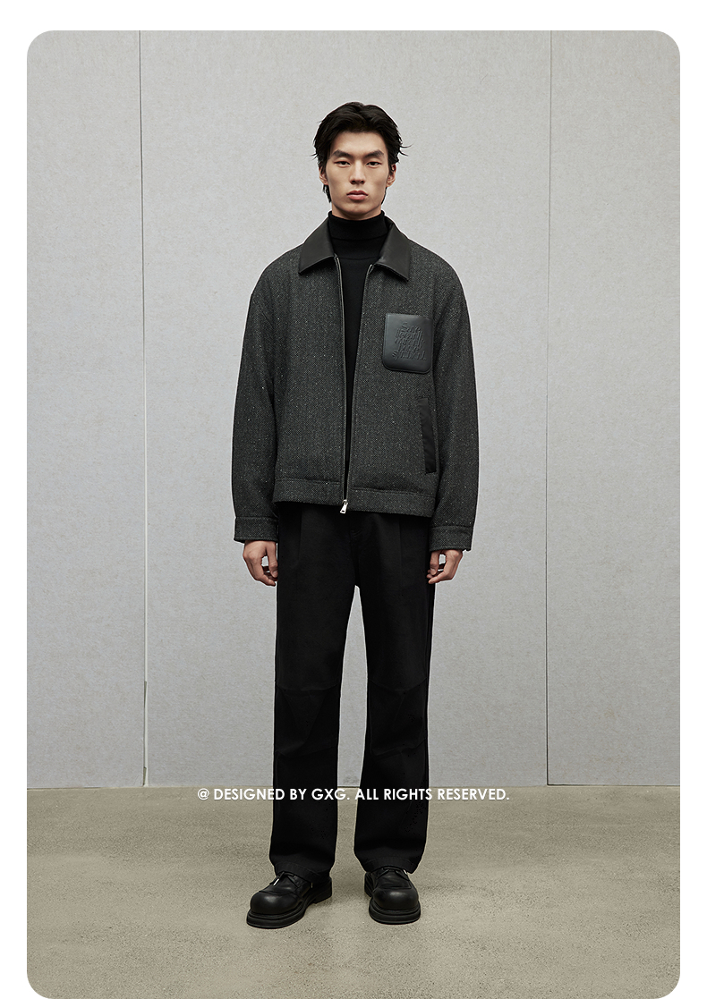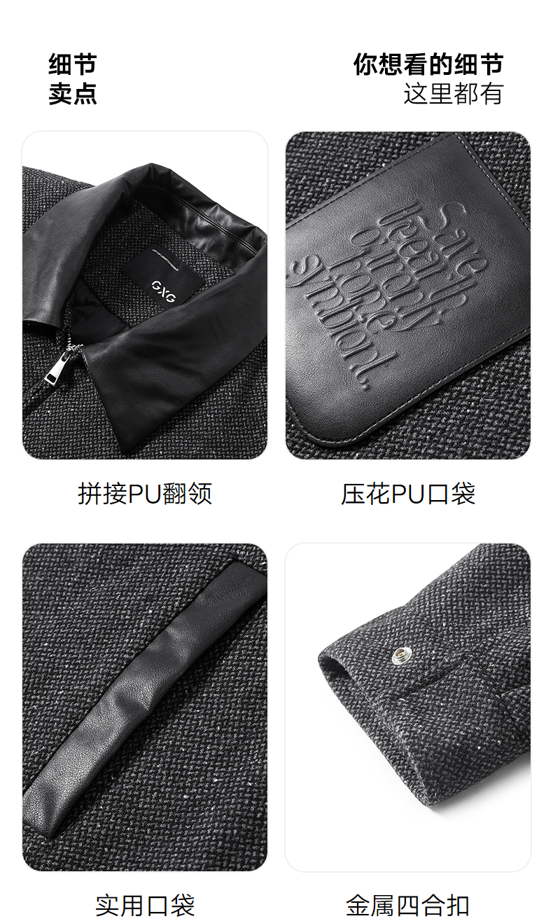 【夹棉】GXG男装 pu皮口袋小香风夹克男加厚通勤外套 24冬季热卖