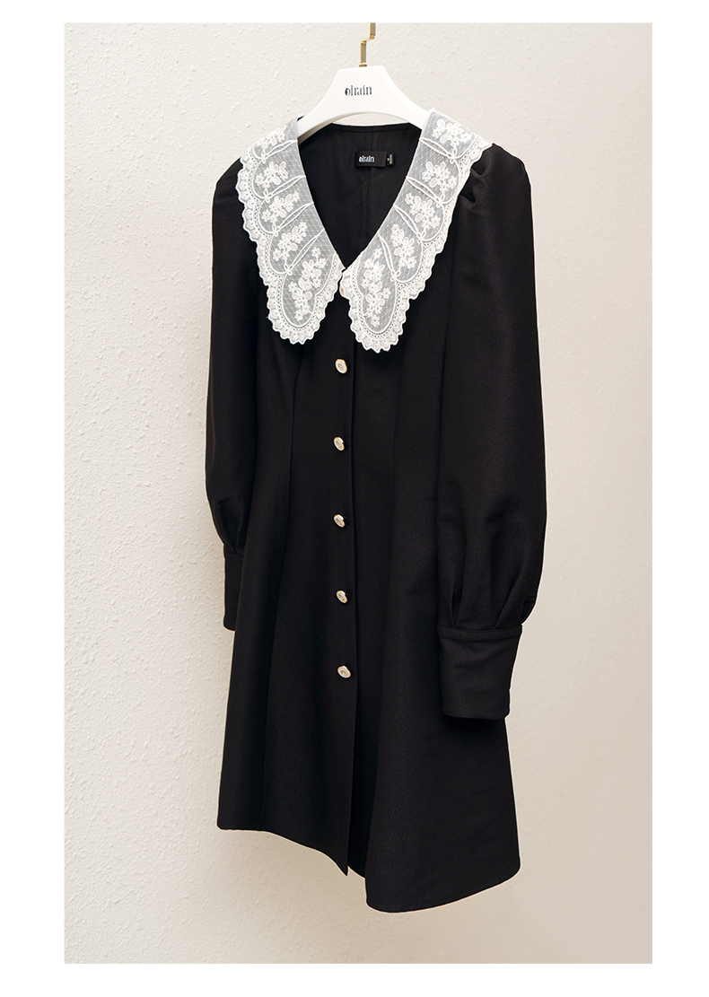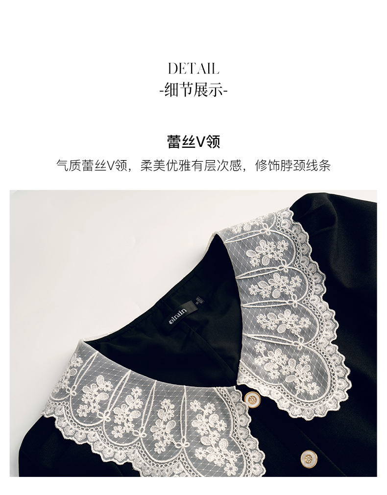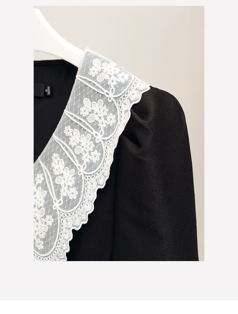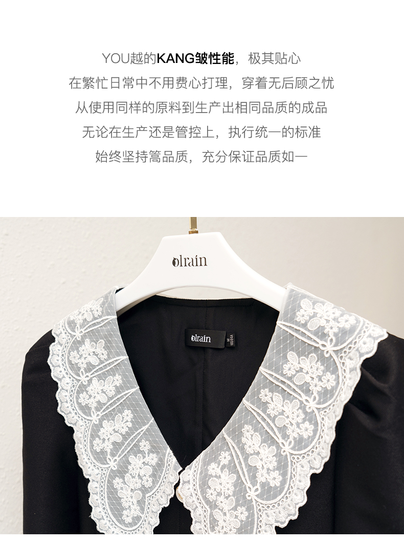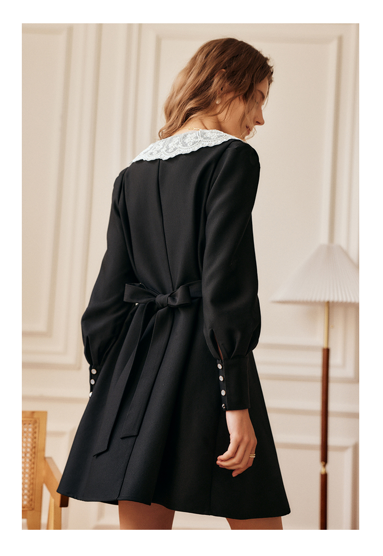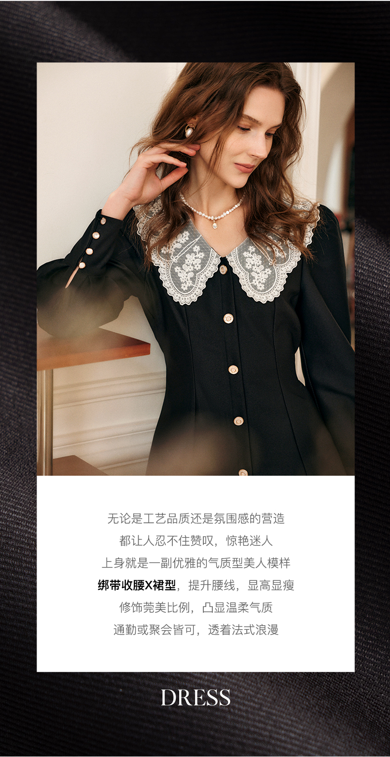 欧芮儿黑色西装连衣裙女秋季2022新款收腰显瘦法式蕾丝领设计感裙