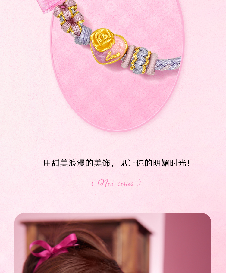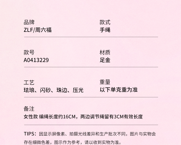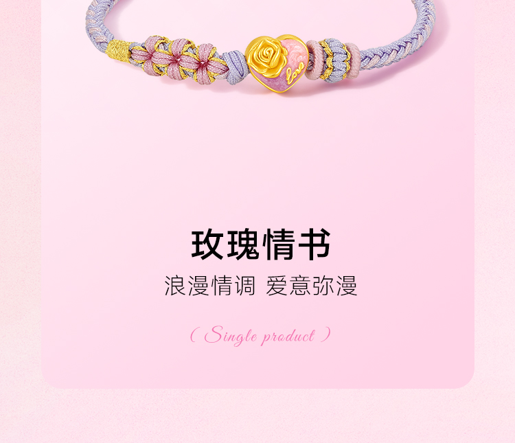 周六福3D硬金手绳定价黄金甜心系列520礼物爱心玫瑰花手饰官方