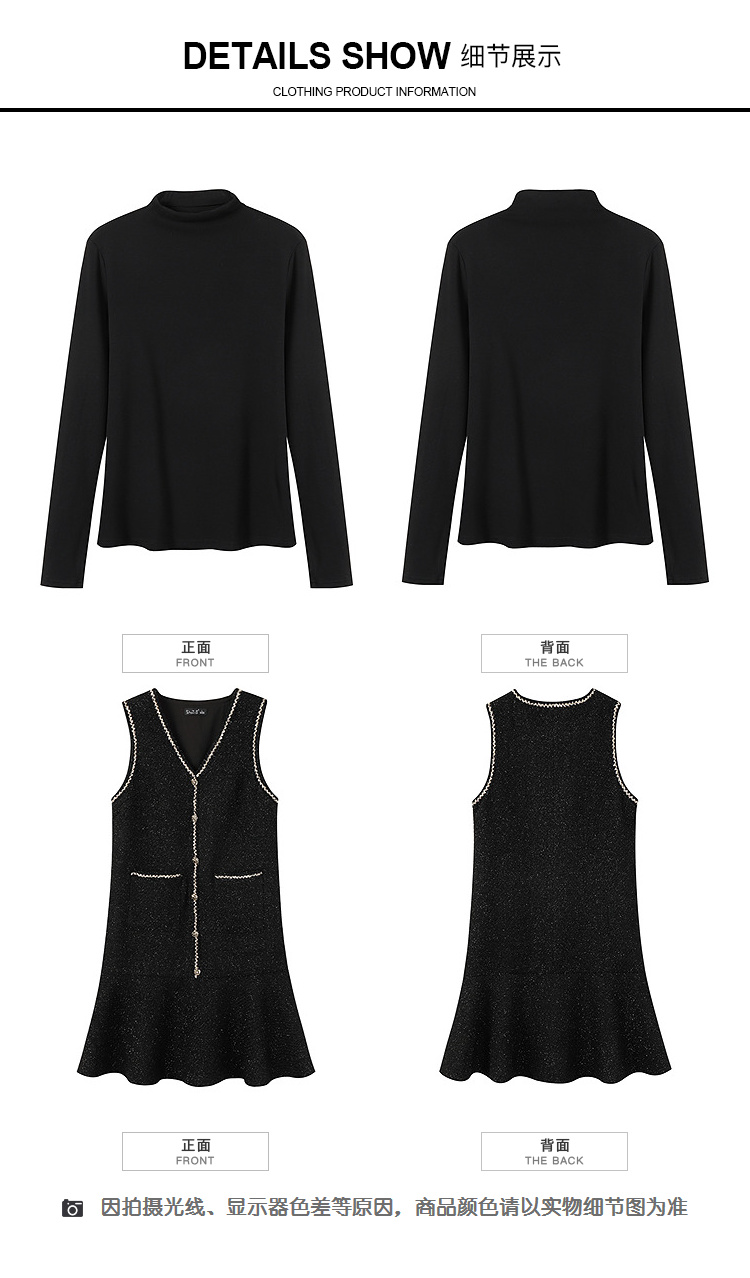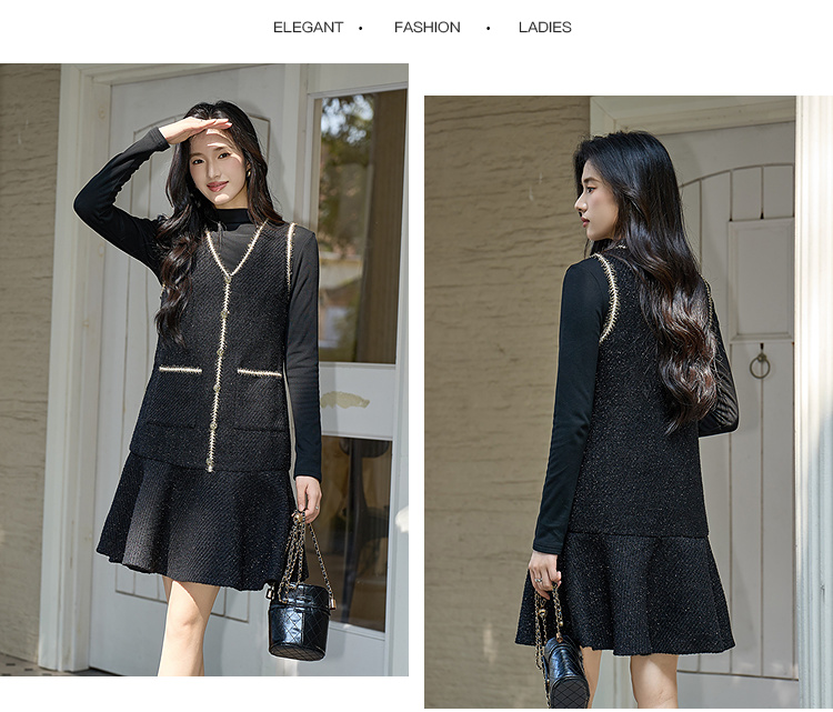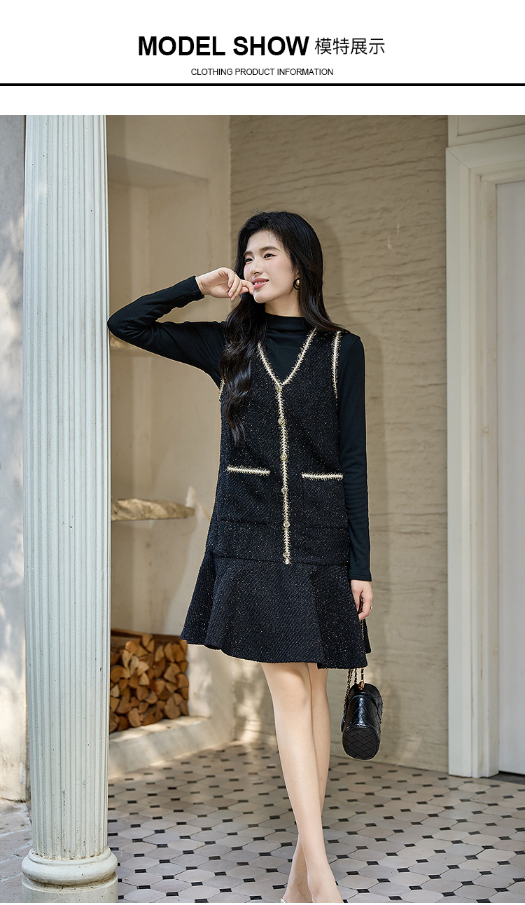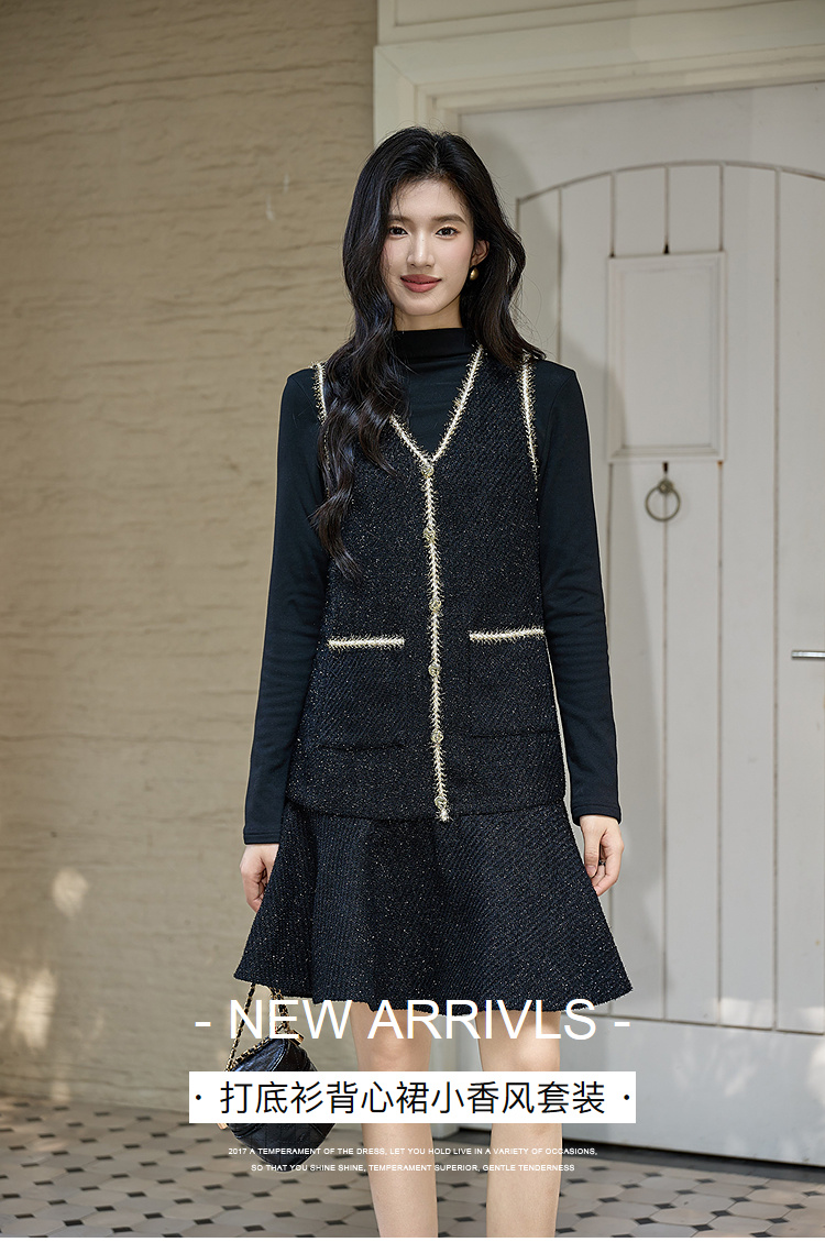 奢姿大码女装小香风套装胖妹妹打底衫+亮丝背心裙秋冬遮肉两件套9954970527AB