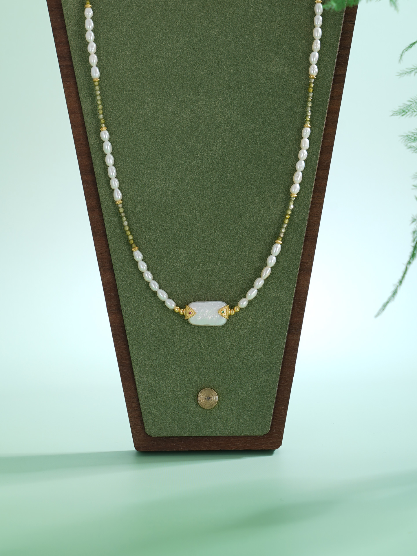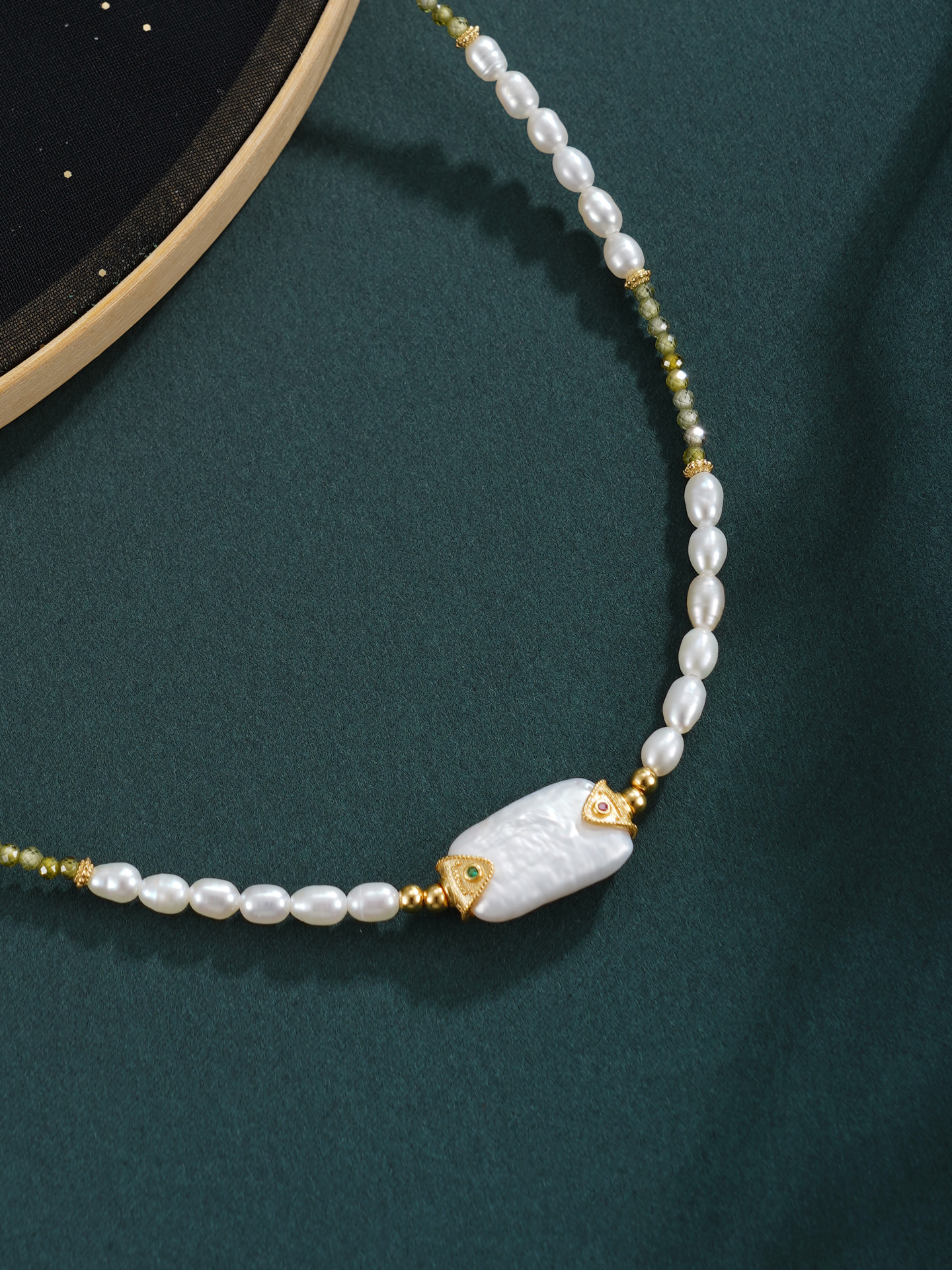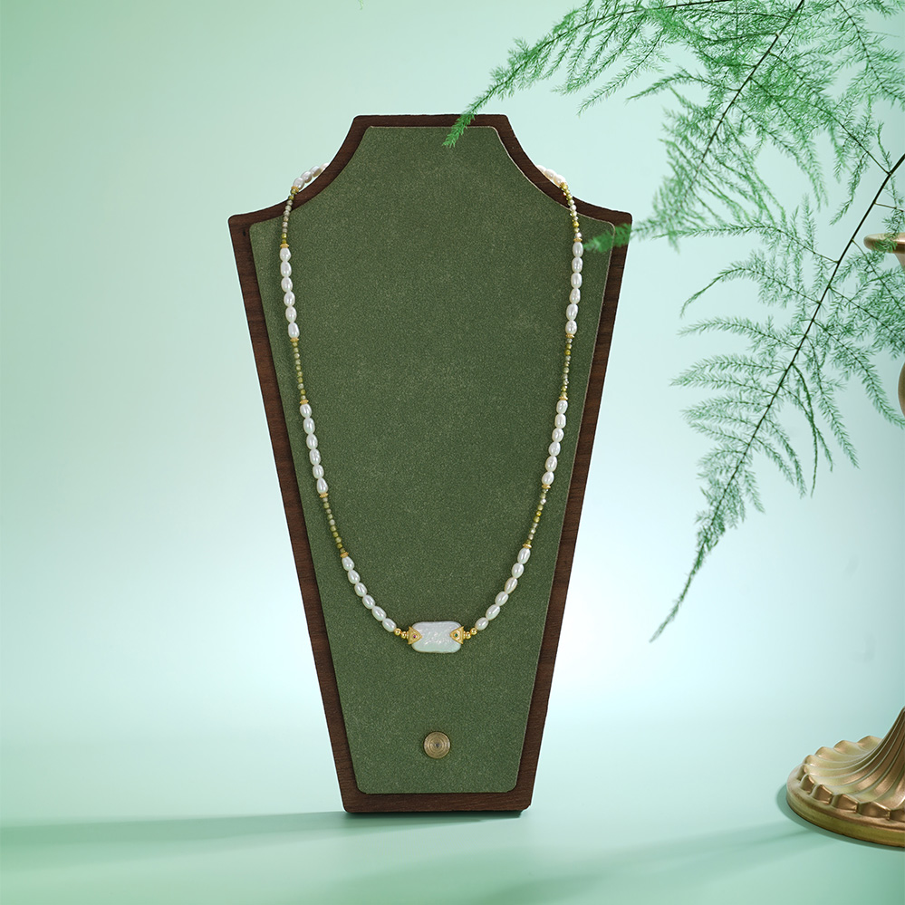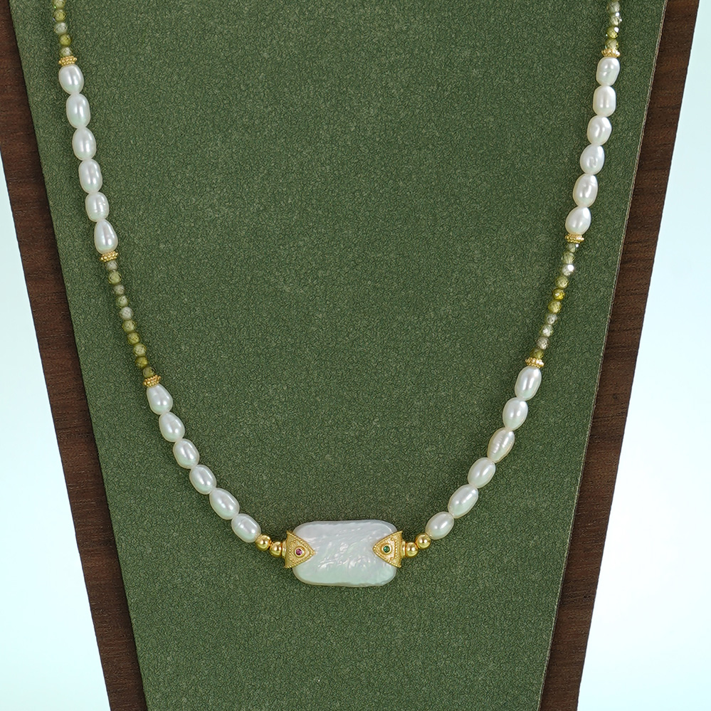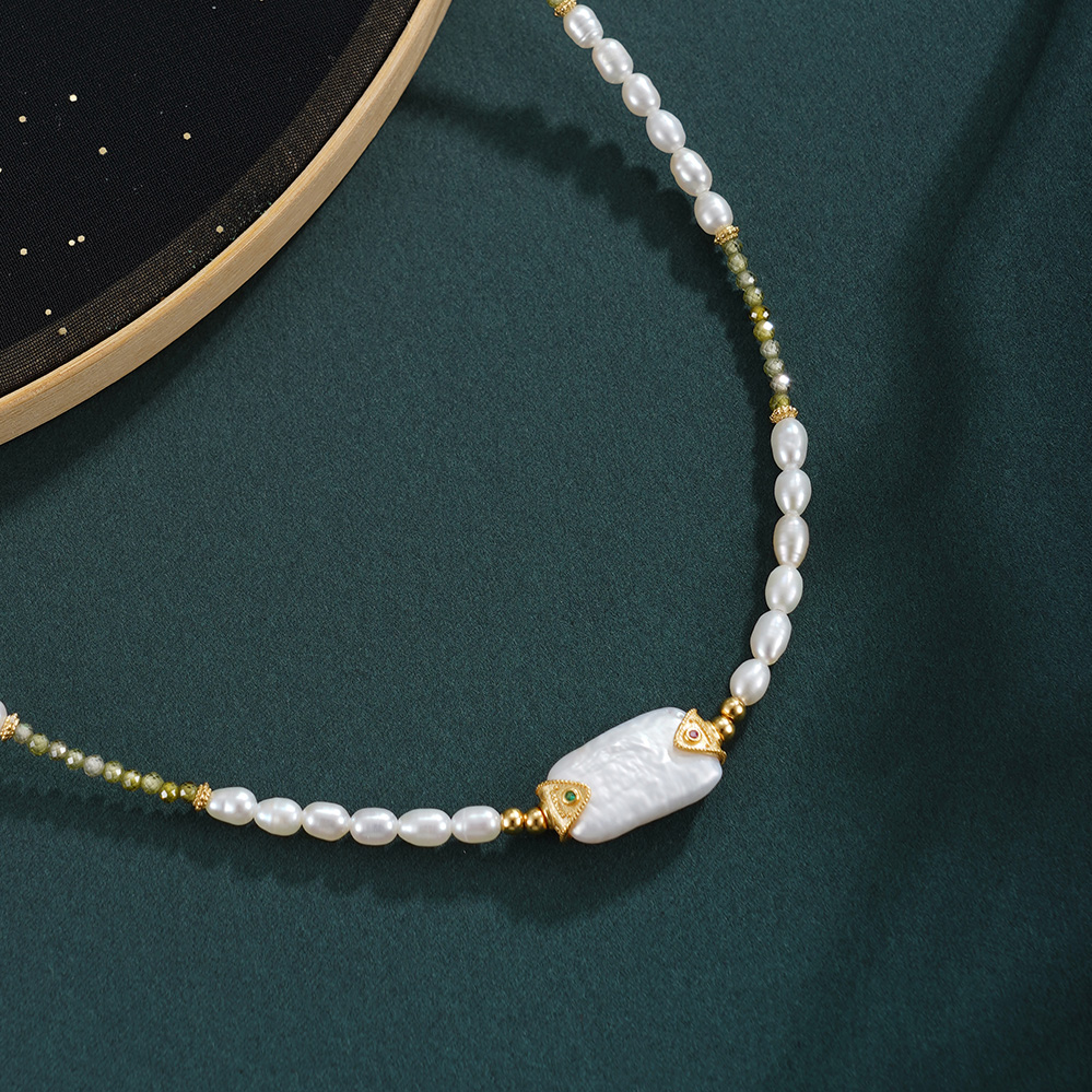 子佩集【芳华璀璨】银S925珍珠惜王妃项链【SGN0895001】3*5小巴洛克珠9*14mm方块绿镀金2601