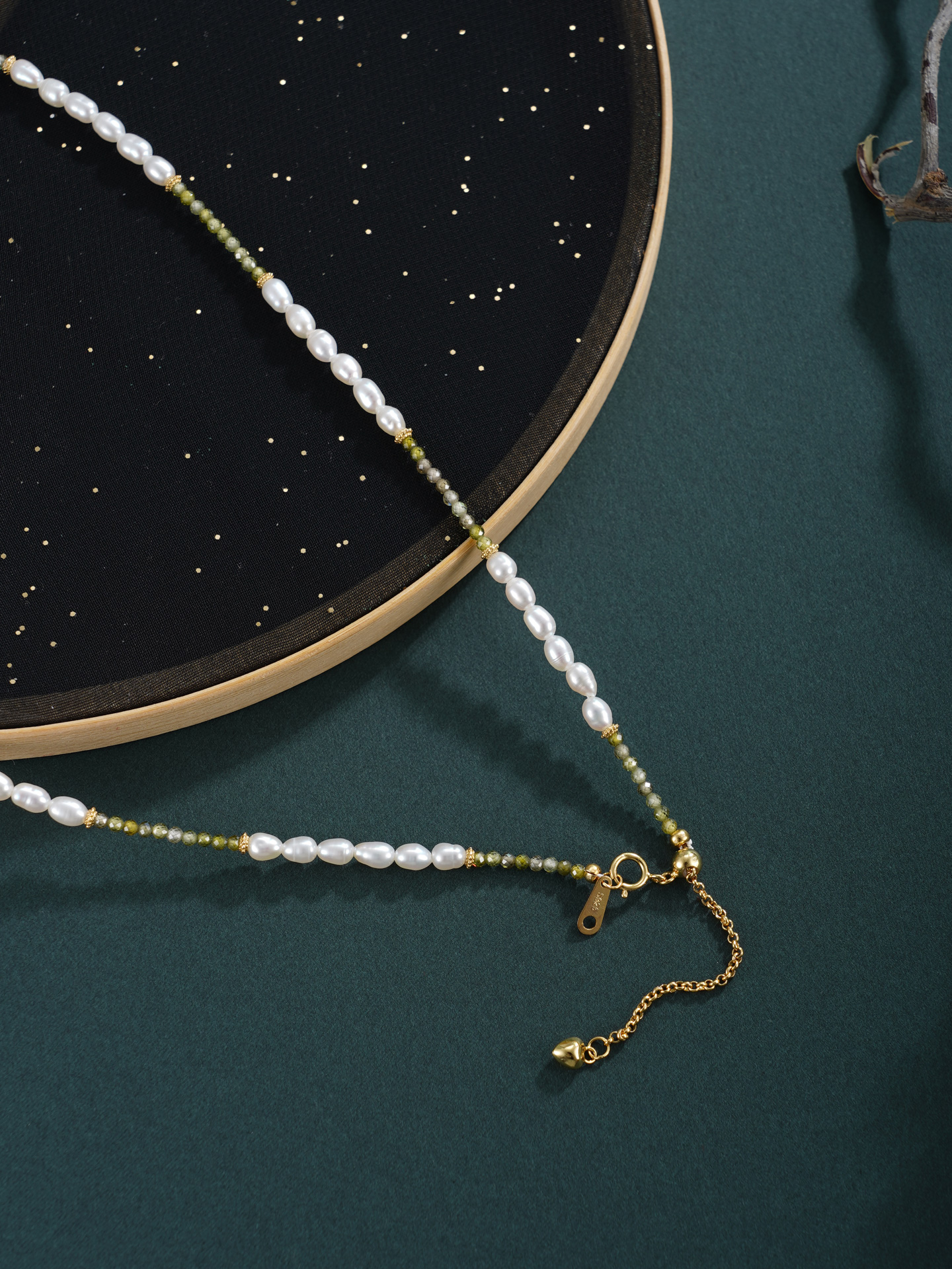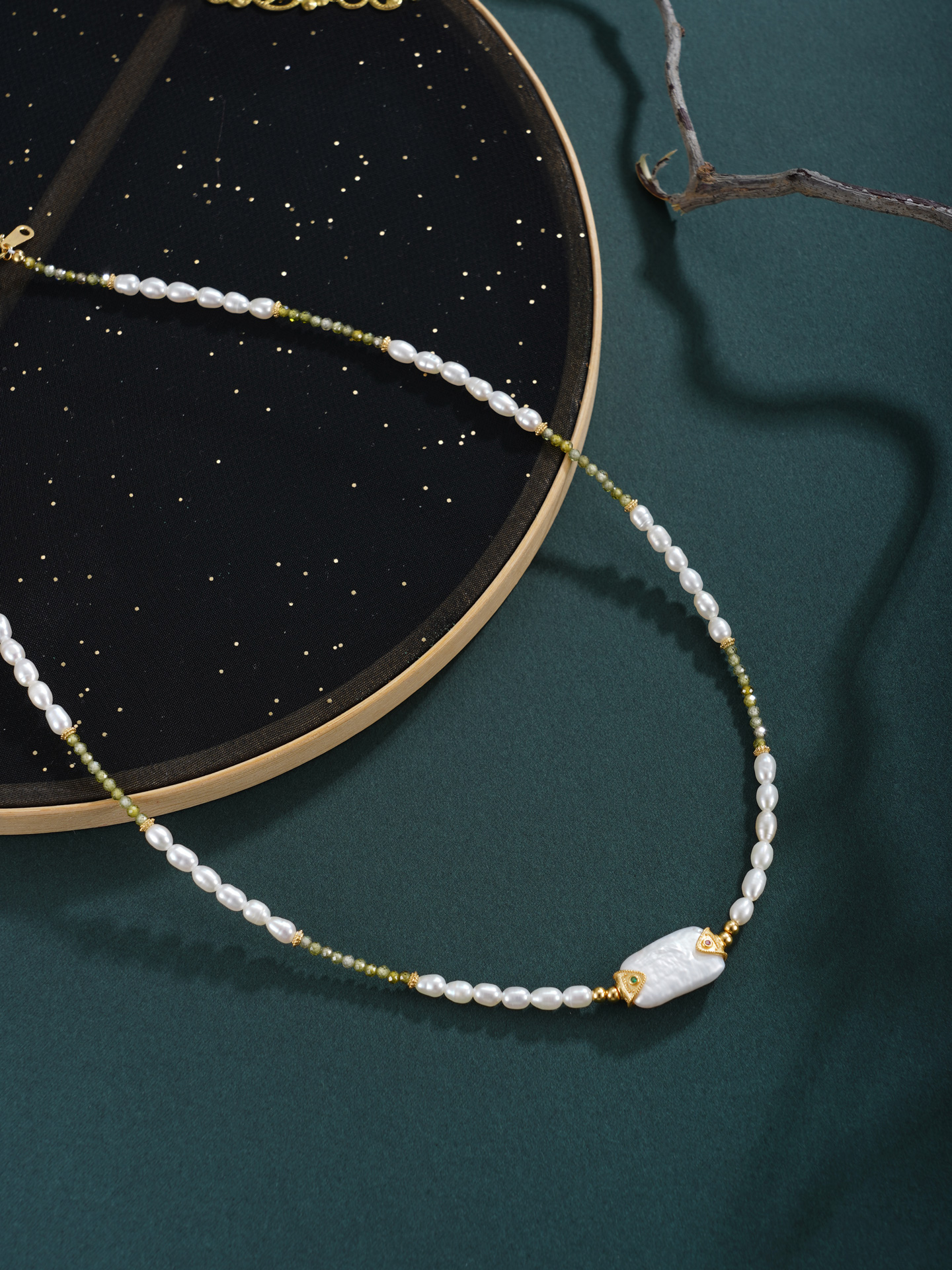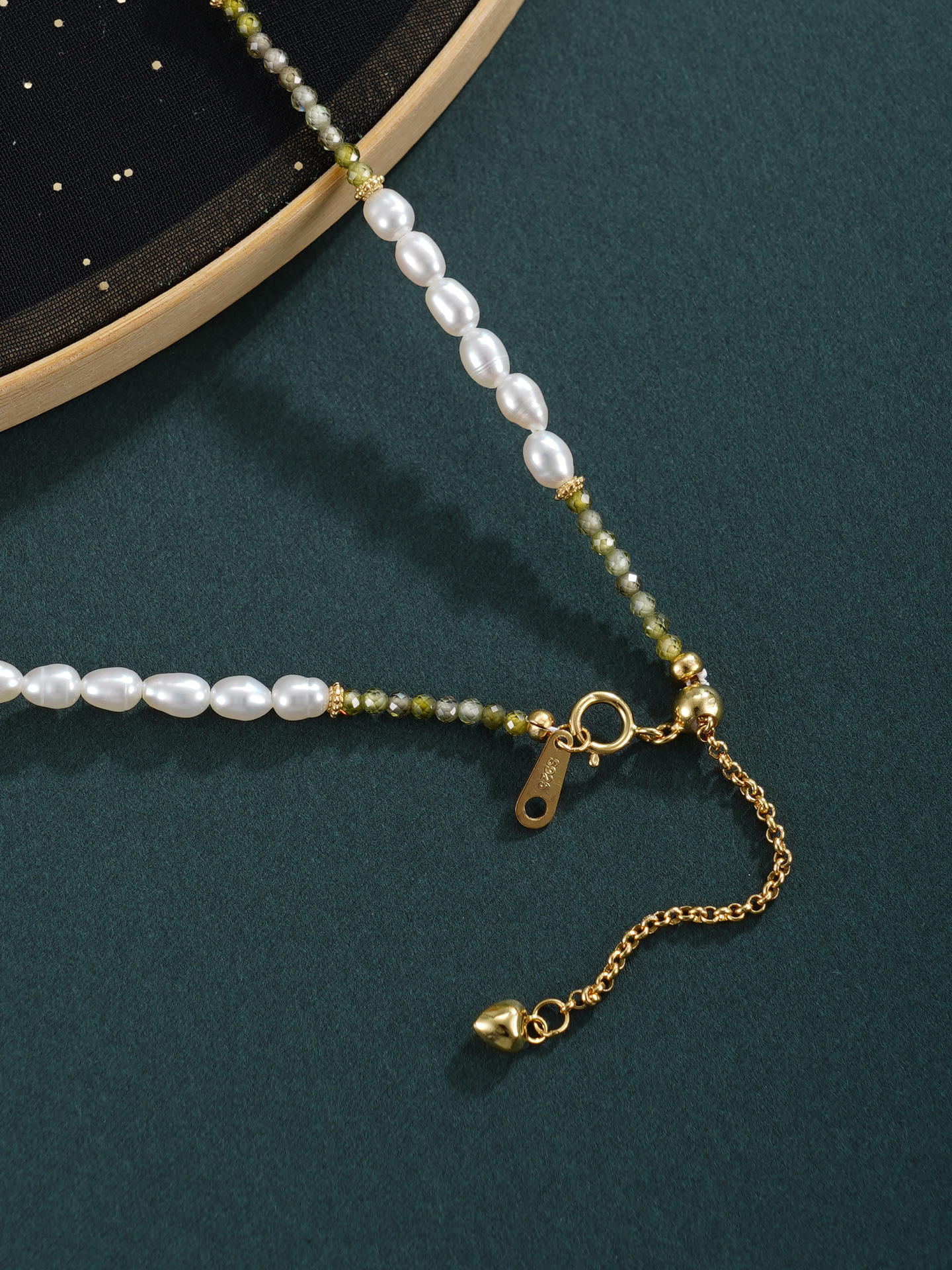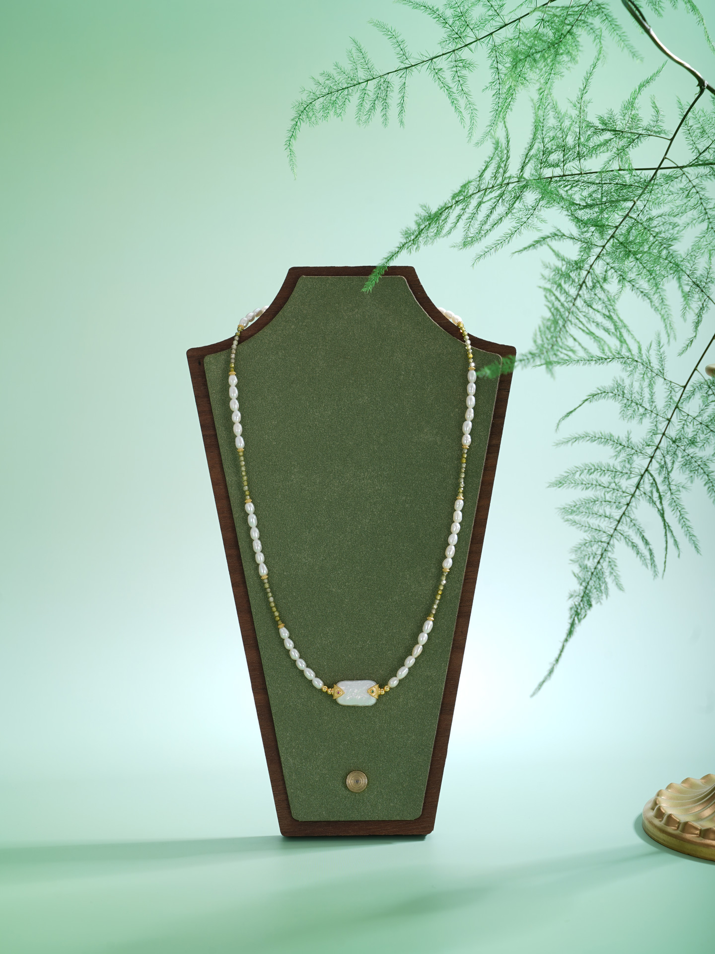 子佩集【芳华璀璨】银S925珍珠惜王妃项链【SGN0895001】3*5小巴洛克珠9*14mm方块绿镀金2601