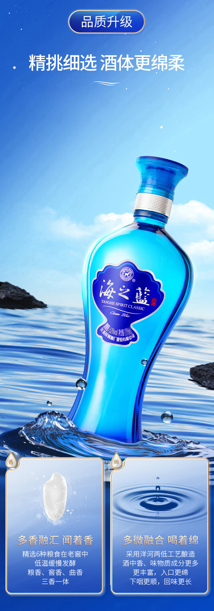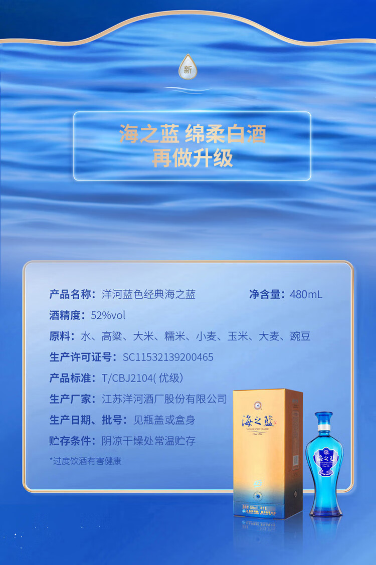【整箱购】洋河 海之蓝 52度白酒 480ml*6