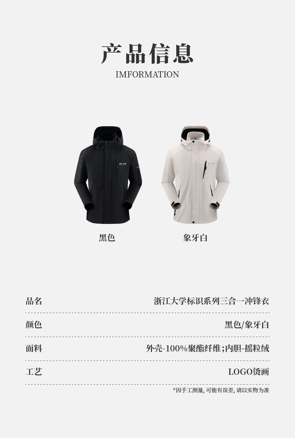 浙江大学三合一冲锋衣(尺码偏小 建议拍大)