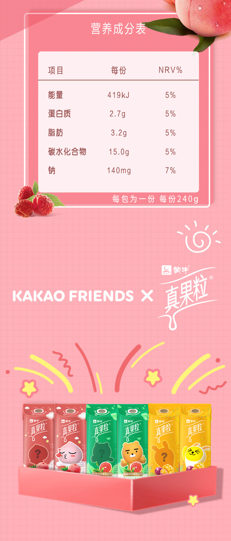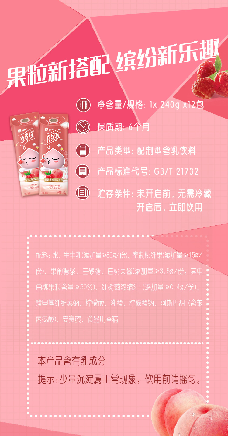 真果粒 白桃树莓味牛奶饮品240g*10 多重味蕾惊喜 5天内发货