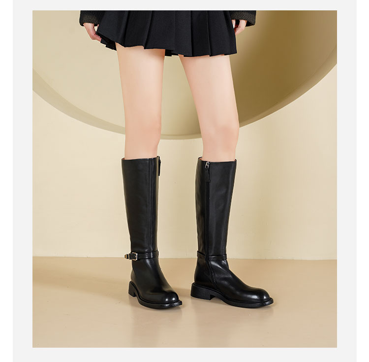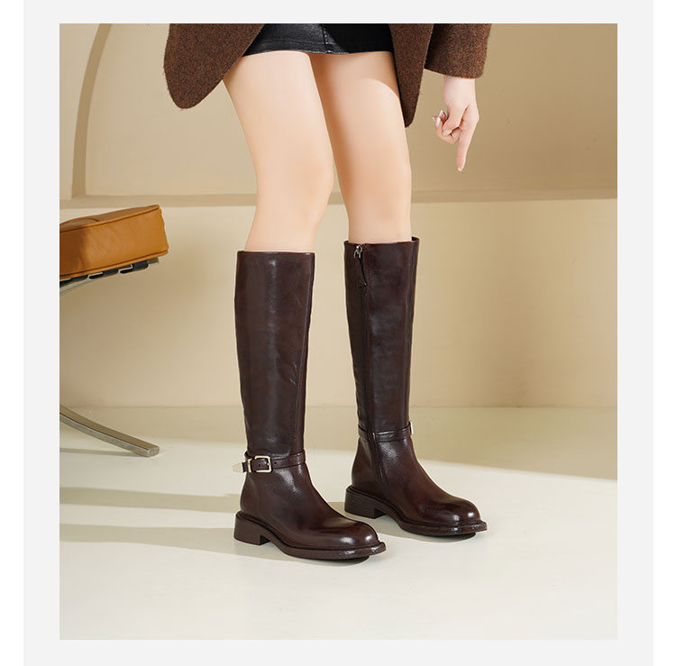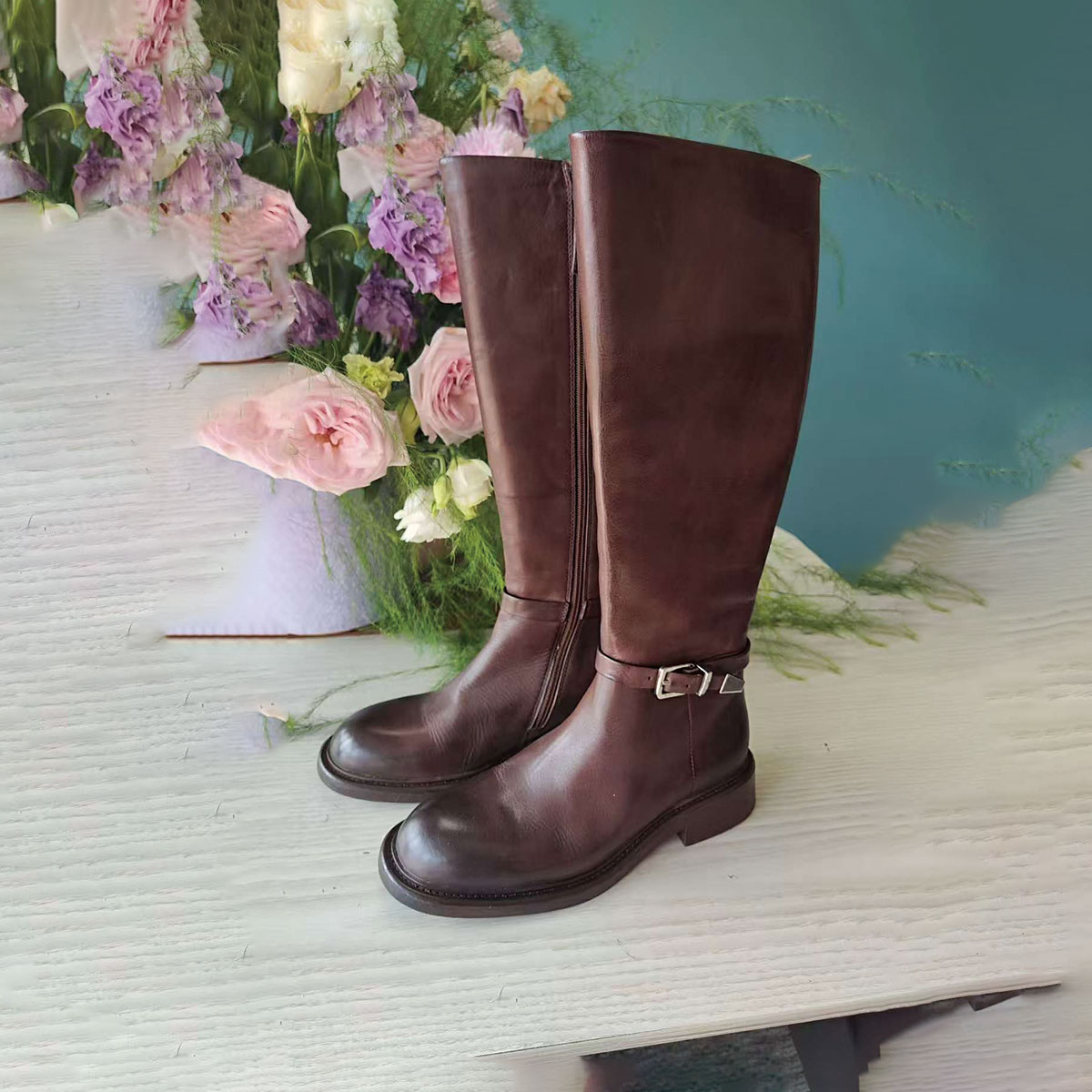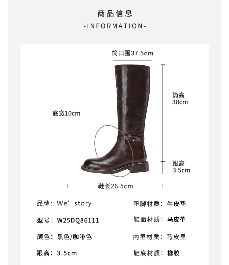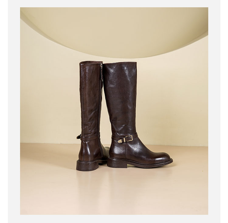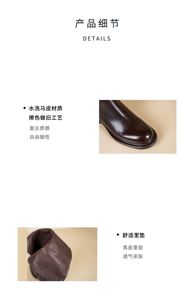 Westory2025年冬季复古水洗马皮靴低跟擦色休闲酷帅高靴W25DQ86111