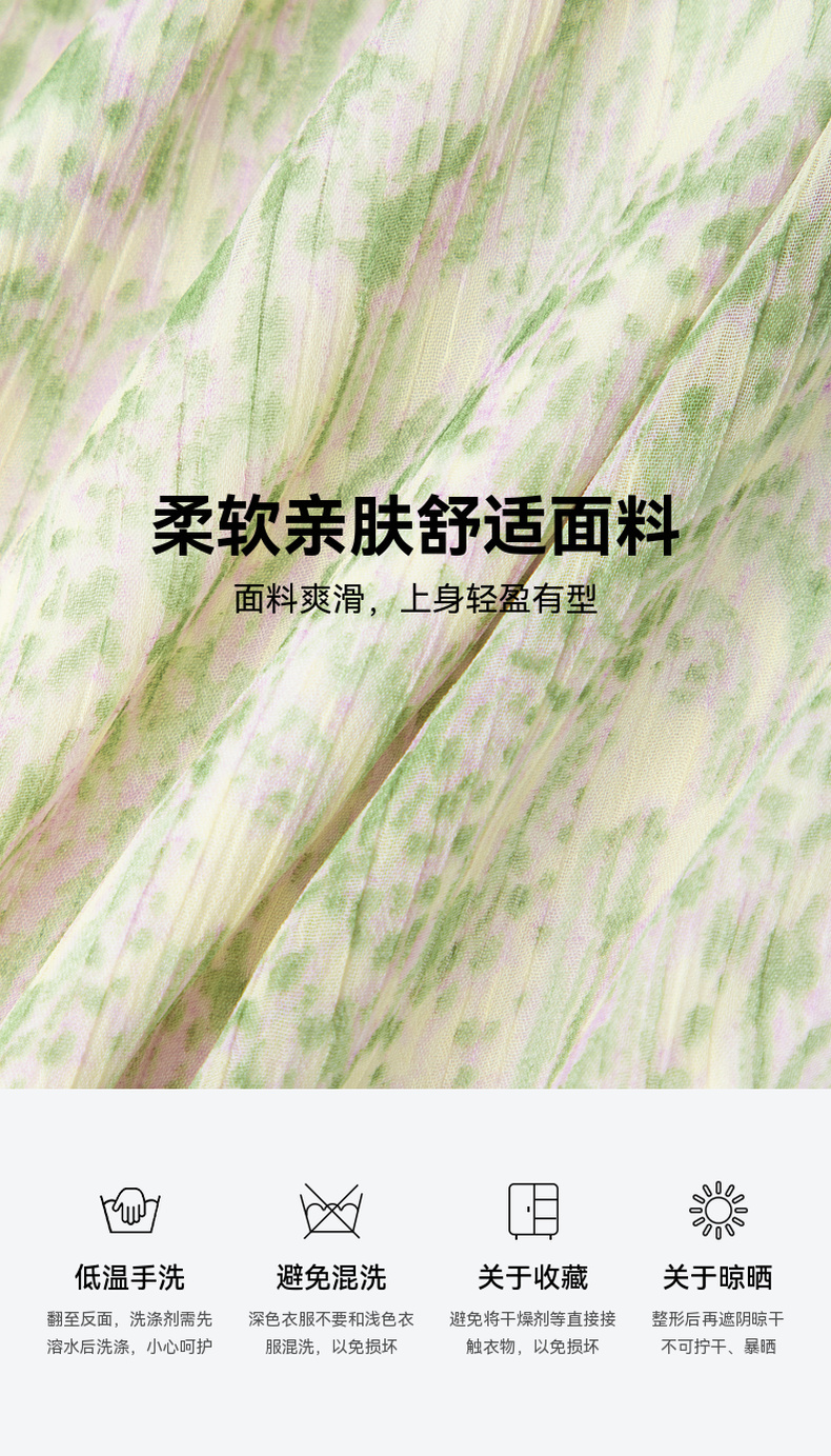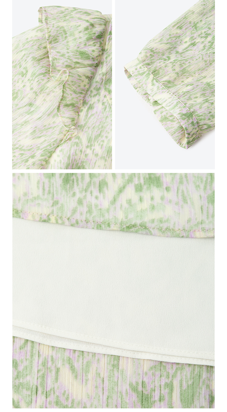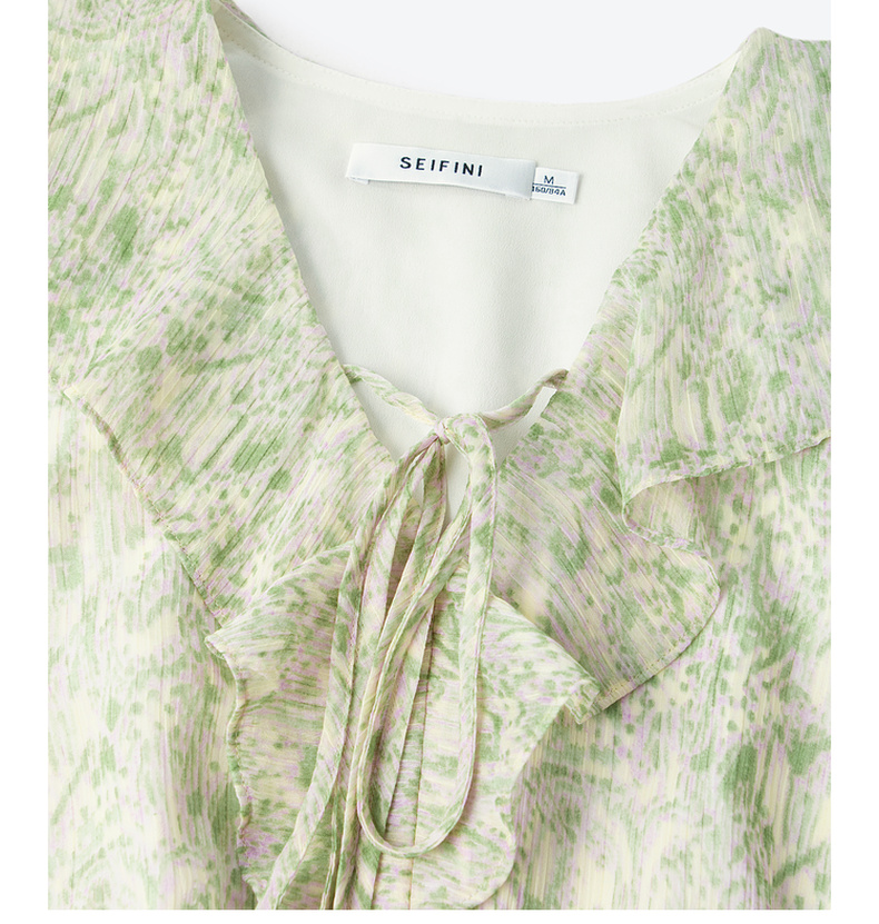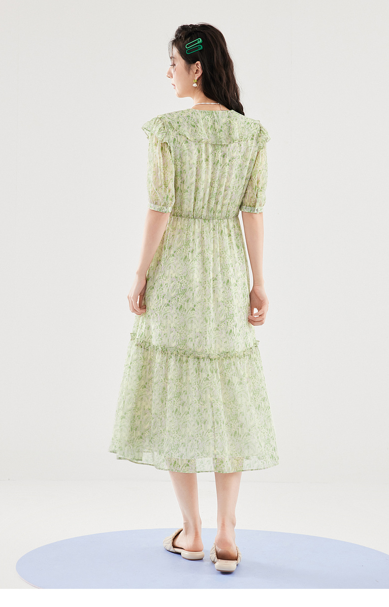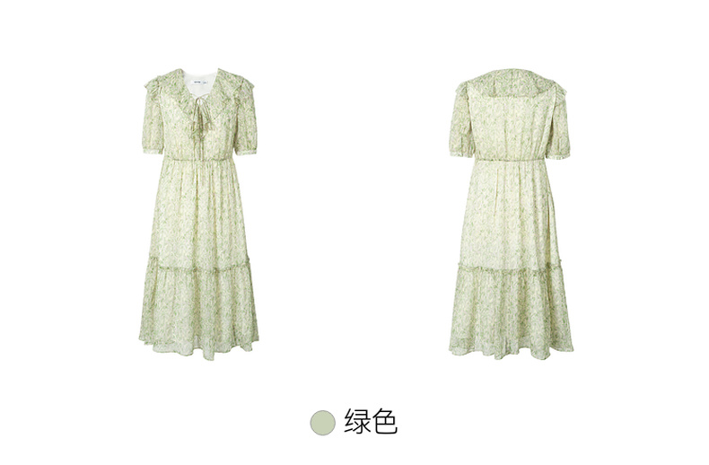 【严选】诗凡黎绿色浪漫荷叶边飘带碎花连衣裙2024年夏新款薄荷曼波长裙女SF4391061