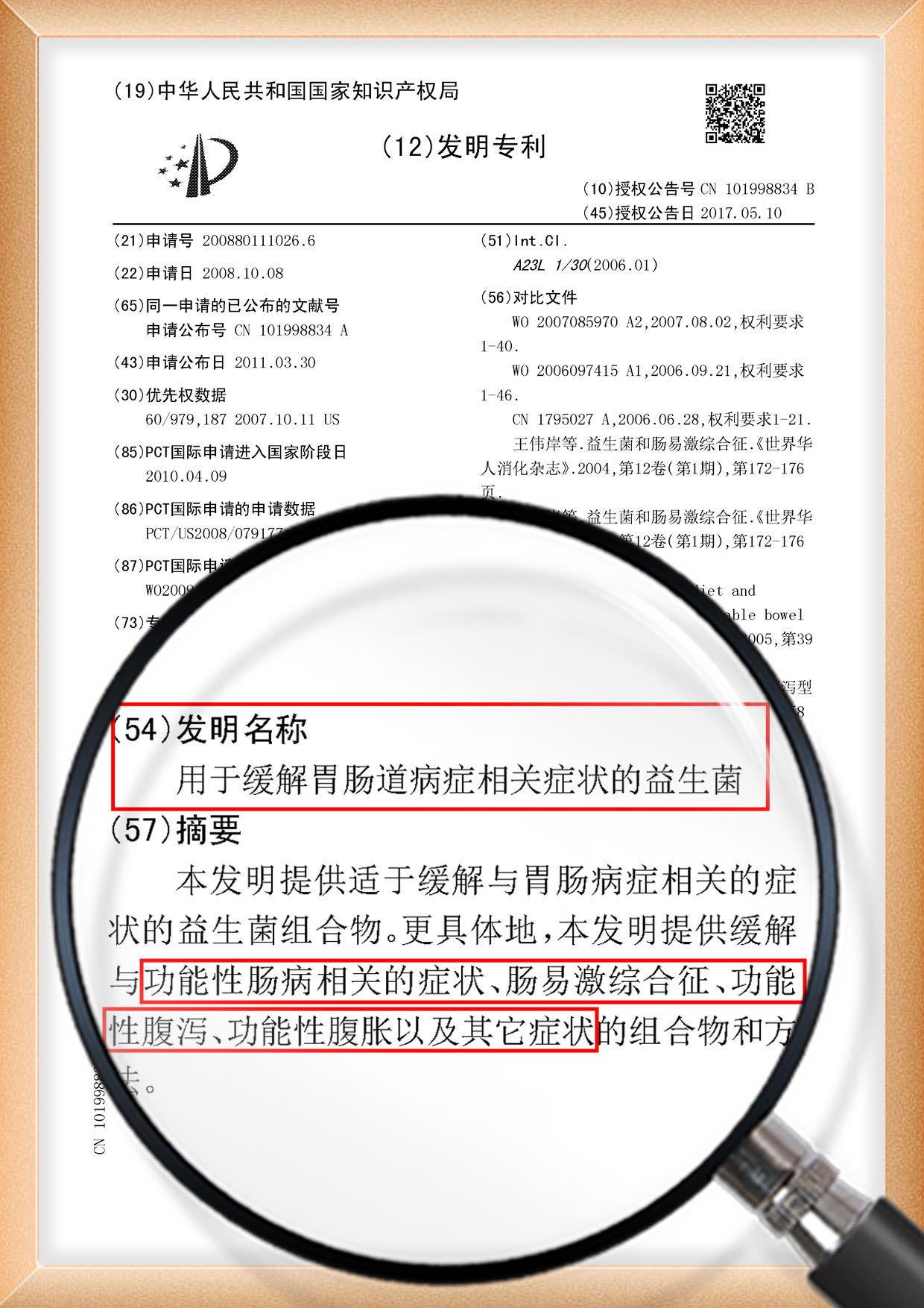 ✅ 专利2:用于缓解肠胃道病症的益生菌