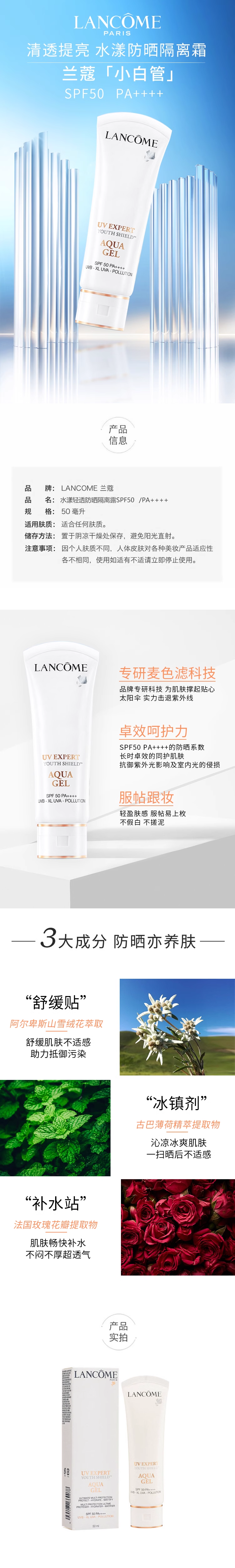 43【保税仓直发·蚂蚁链扫码溯源】LANCOME兰蔻水漾防晒乳50ml小白管防晒霜50ml/1支2支