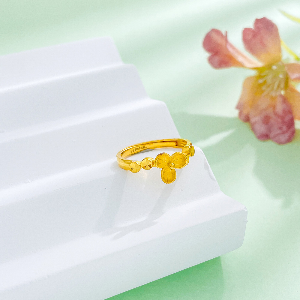 【限时克减150元】足金999.9 #婚庆 #日常佩戴 #浪漫花卉 实心花形活口戒指小幸运三叶草花卉女戒活口女戒(AUWZJZ00004)(预售产品下单后不退款不退货不换货不补差价)