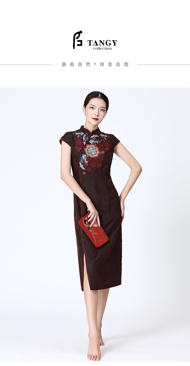 TANGY Collection天意莨绸刺绣长旗袍