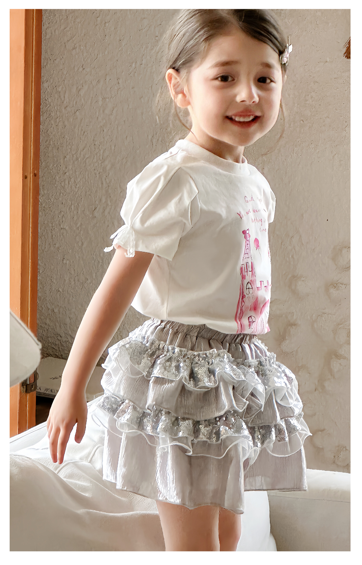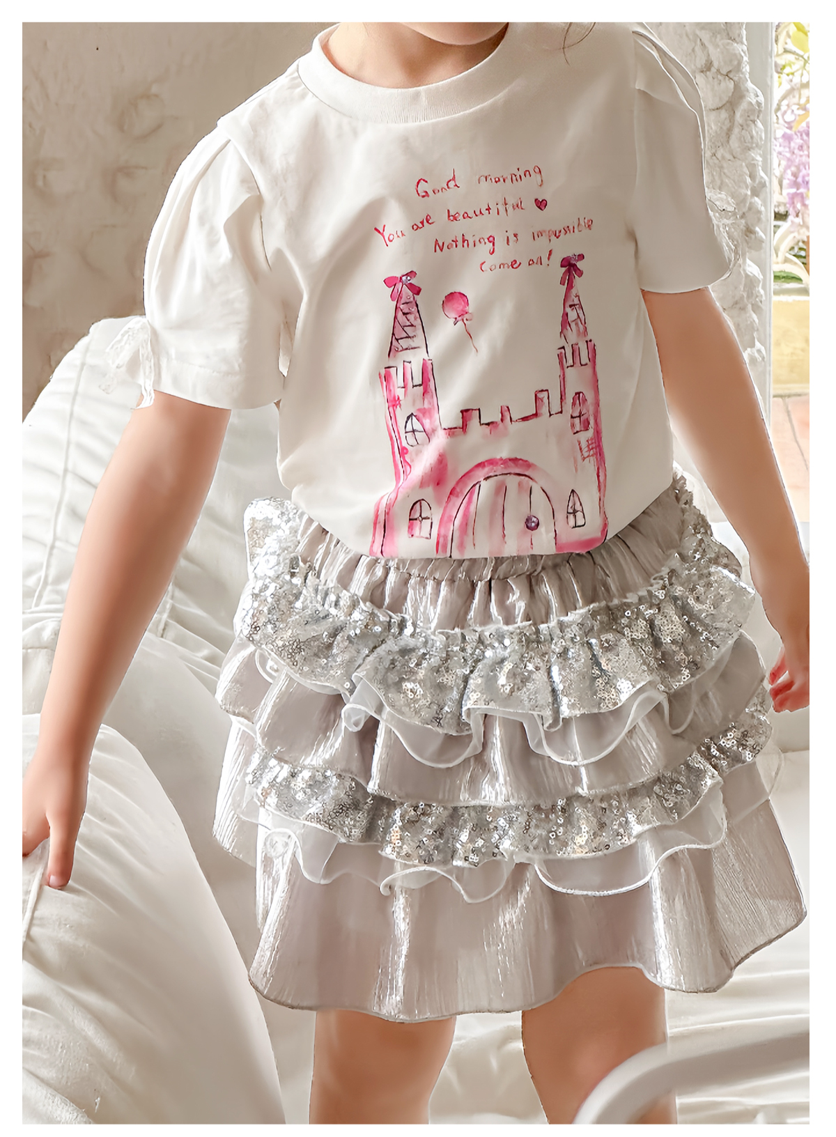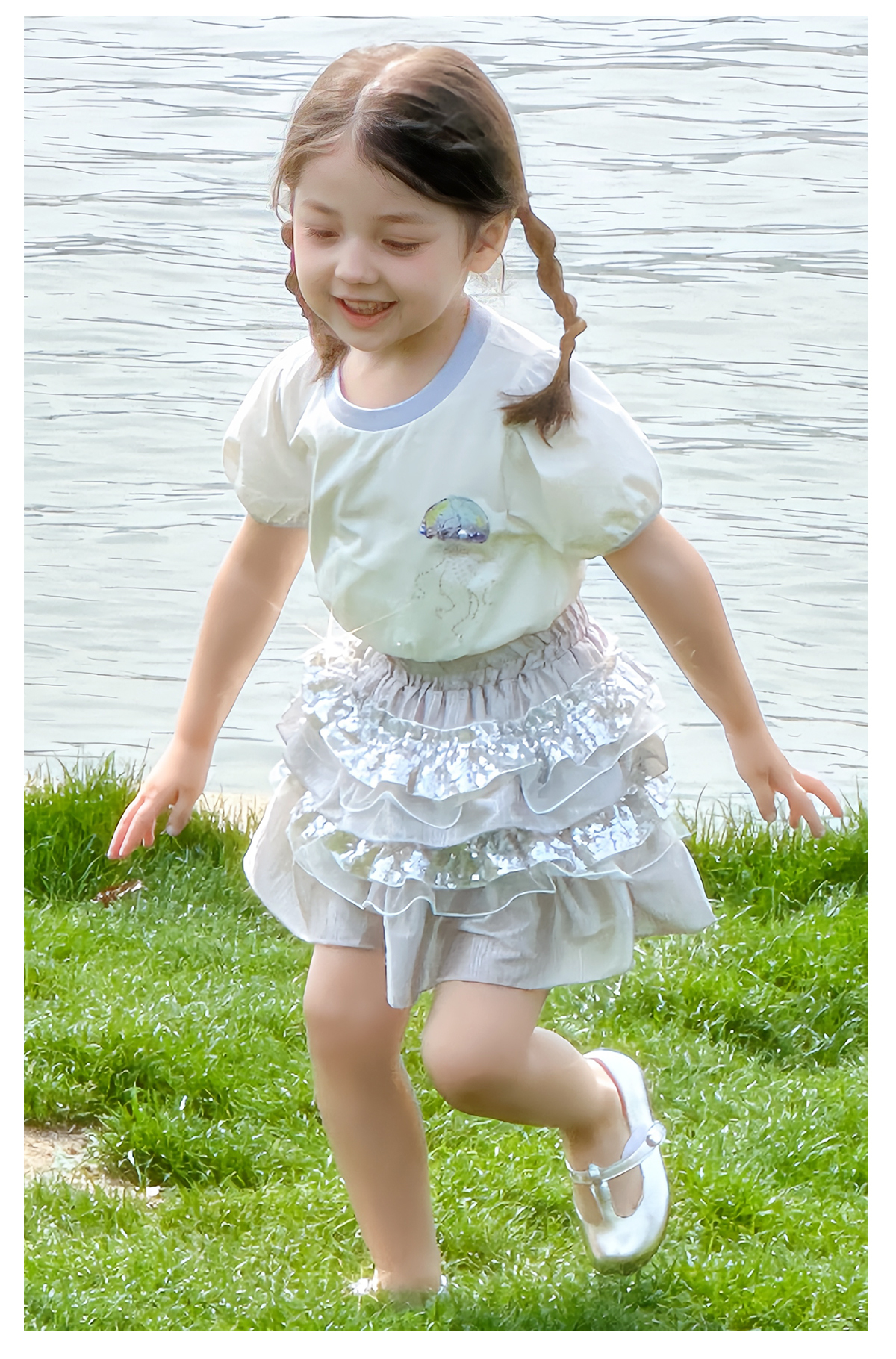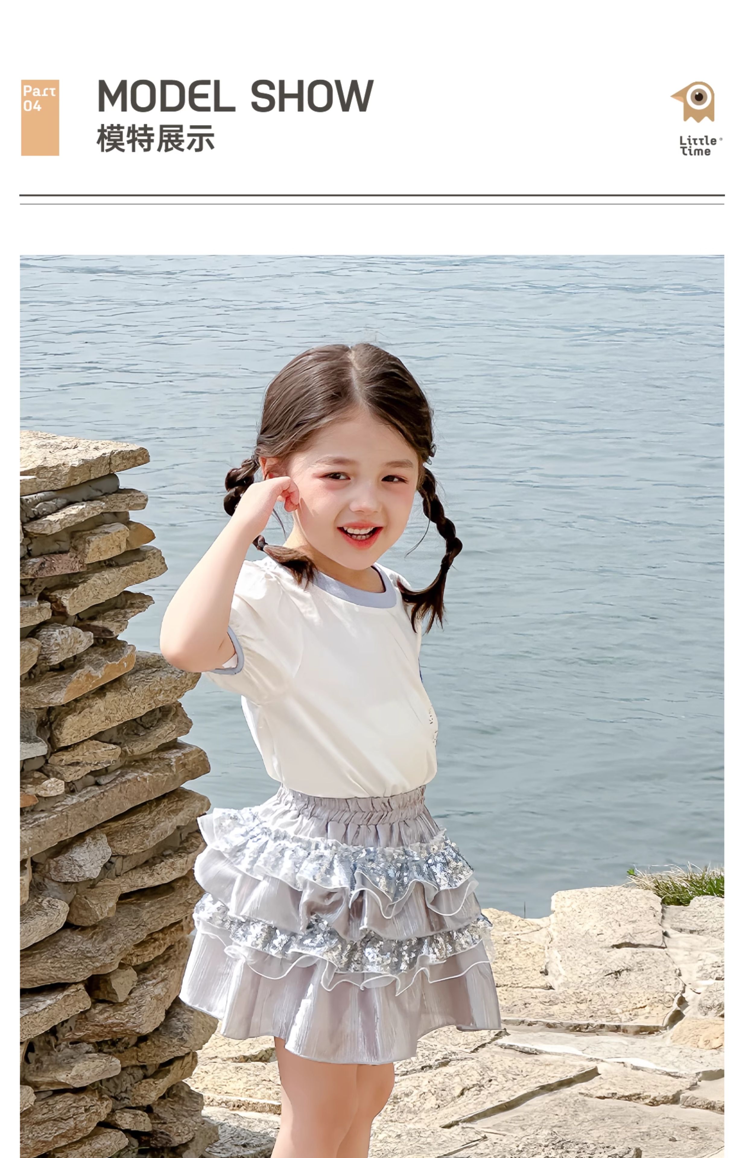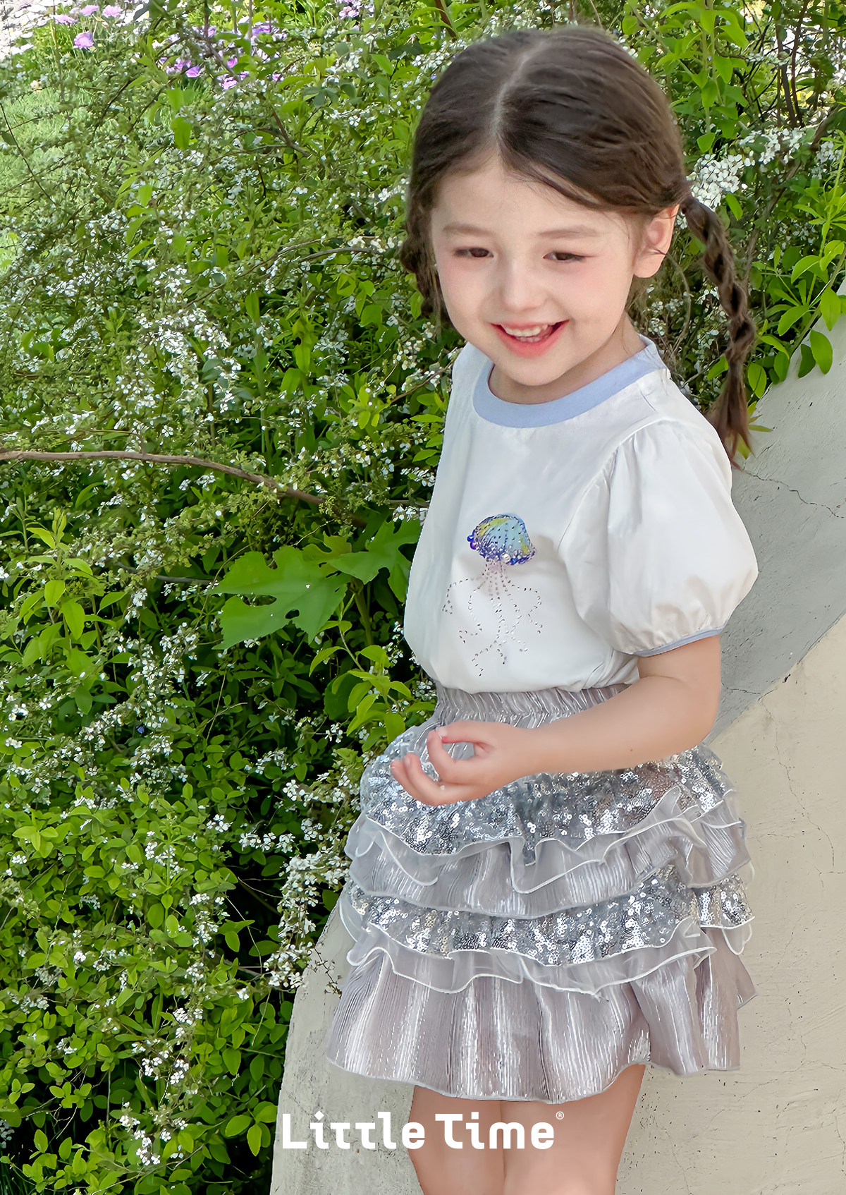 littletime女童T恤2025春夏新儿童洋气卡通水母印花短袖上衣半裙