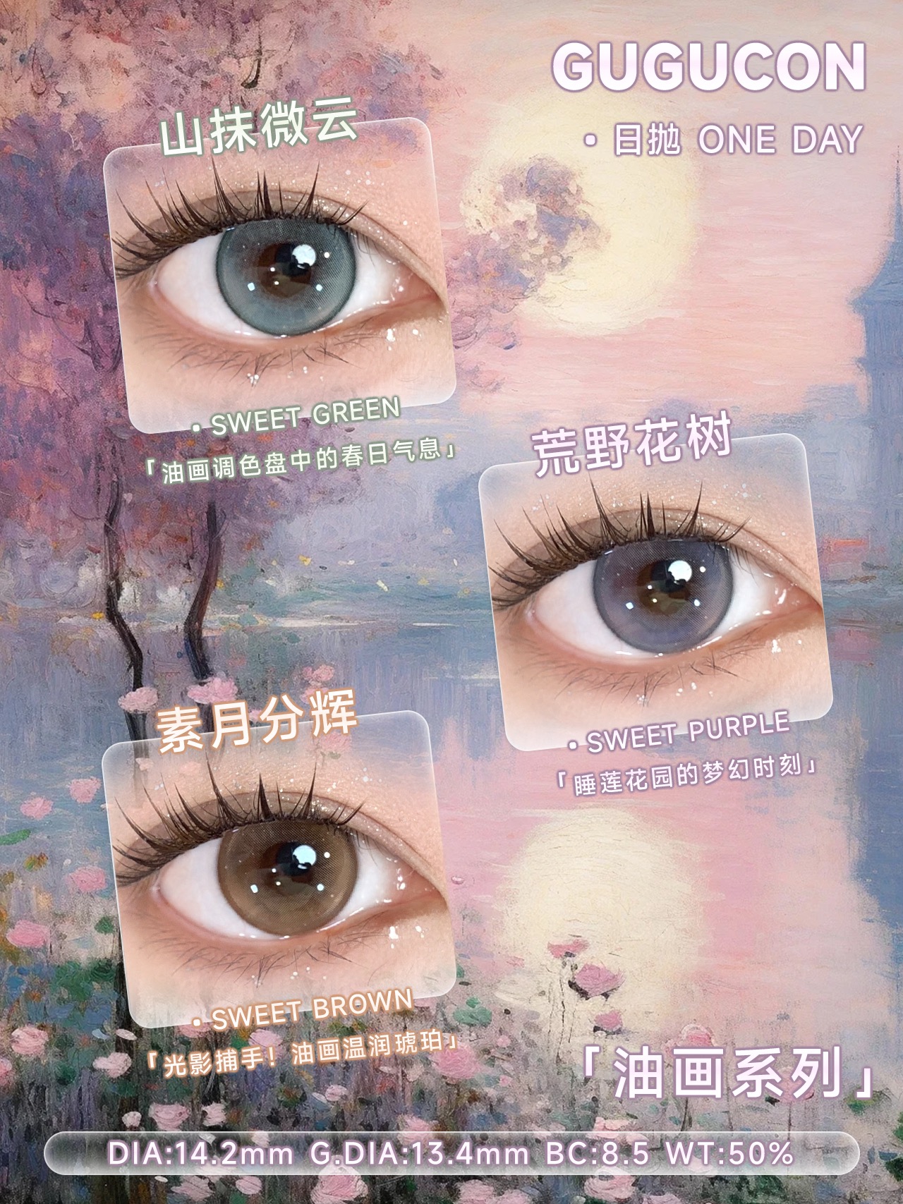 gugucon日抛 素月分辉/荒野花树/山抹微云 14.2mm 日抛无售后!!绿棕紫