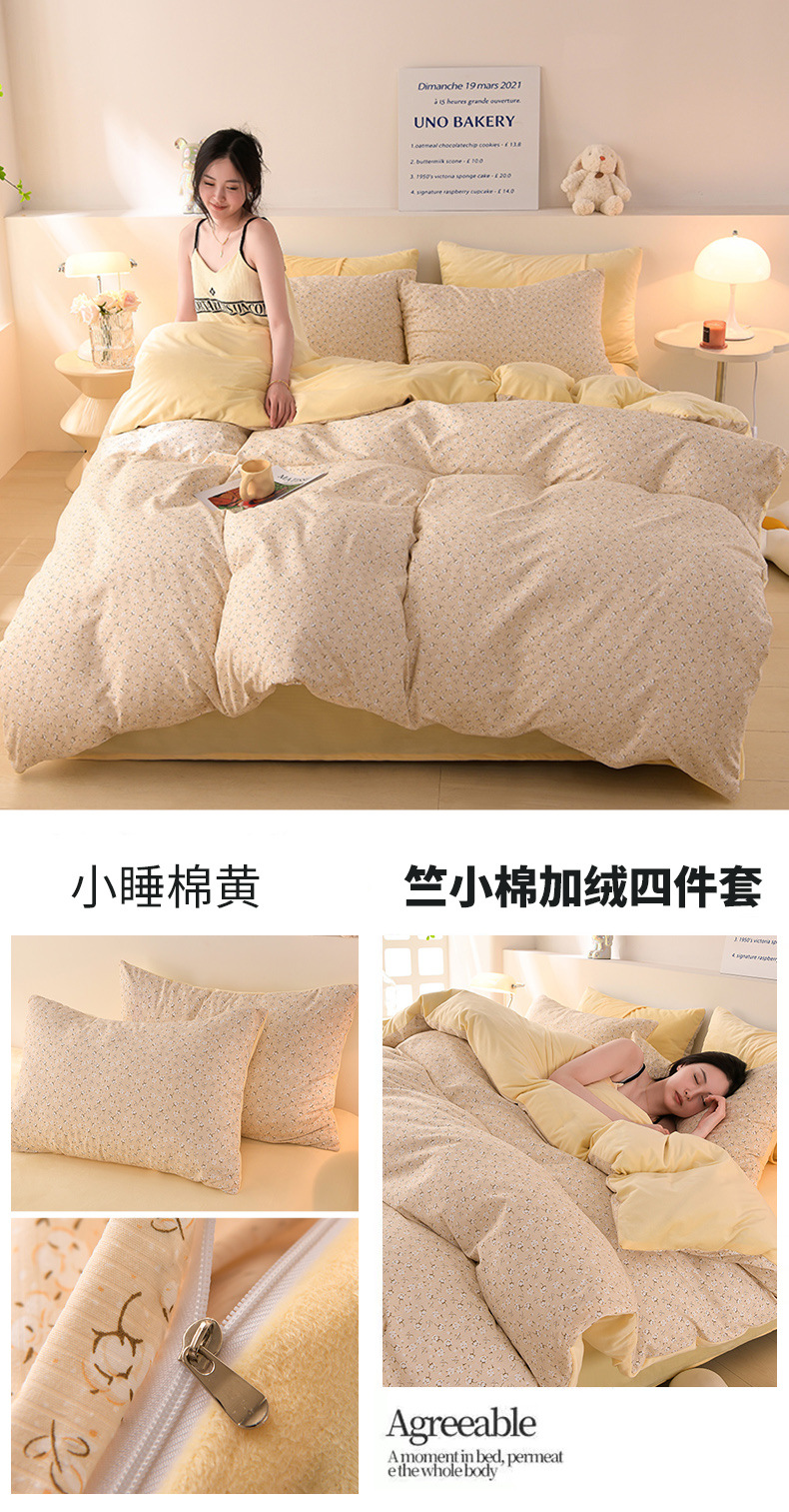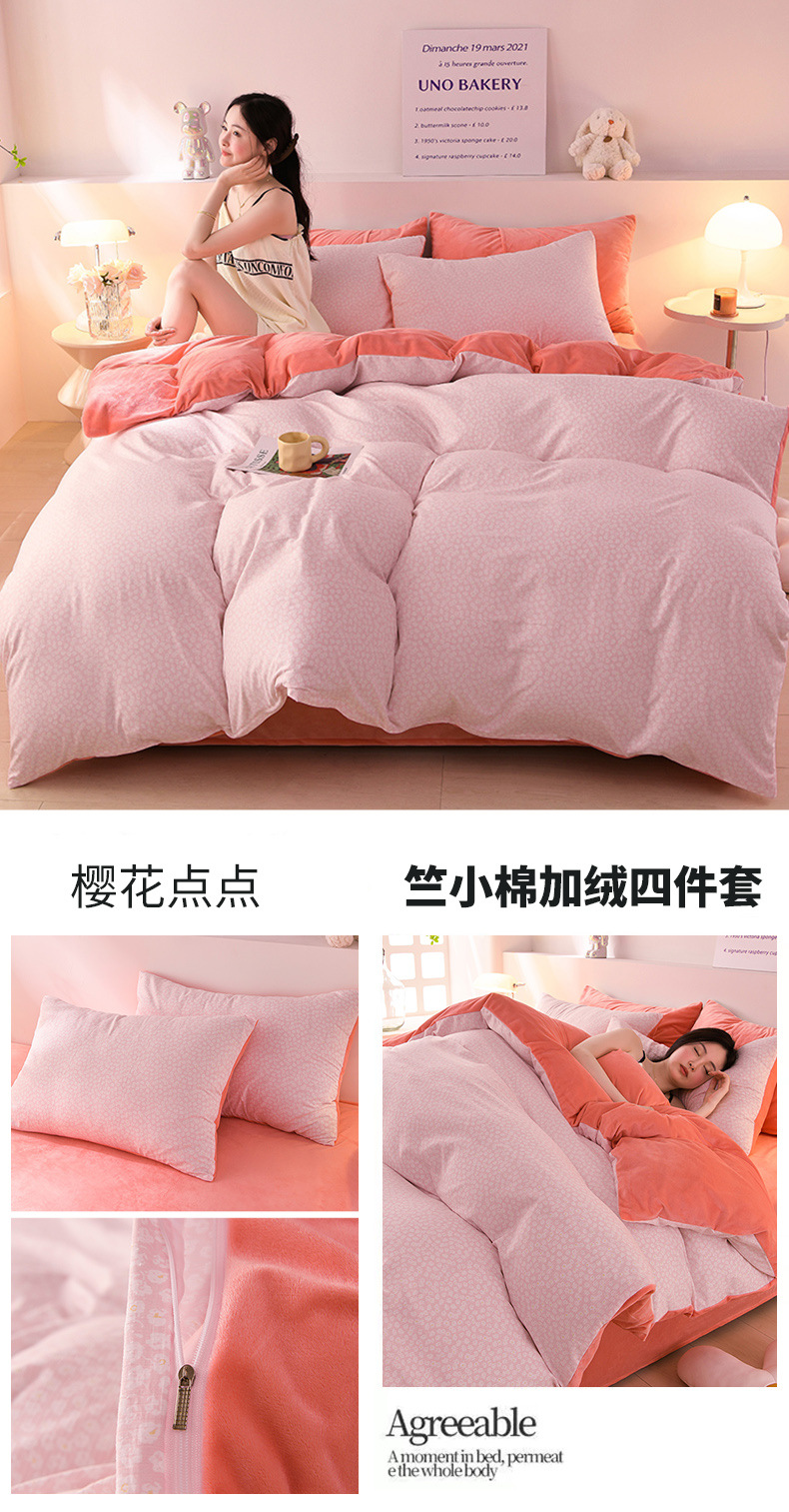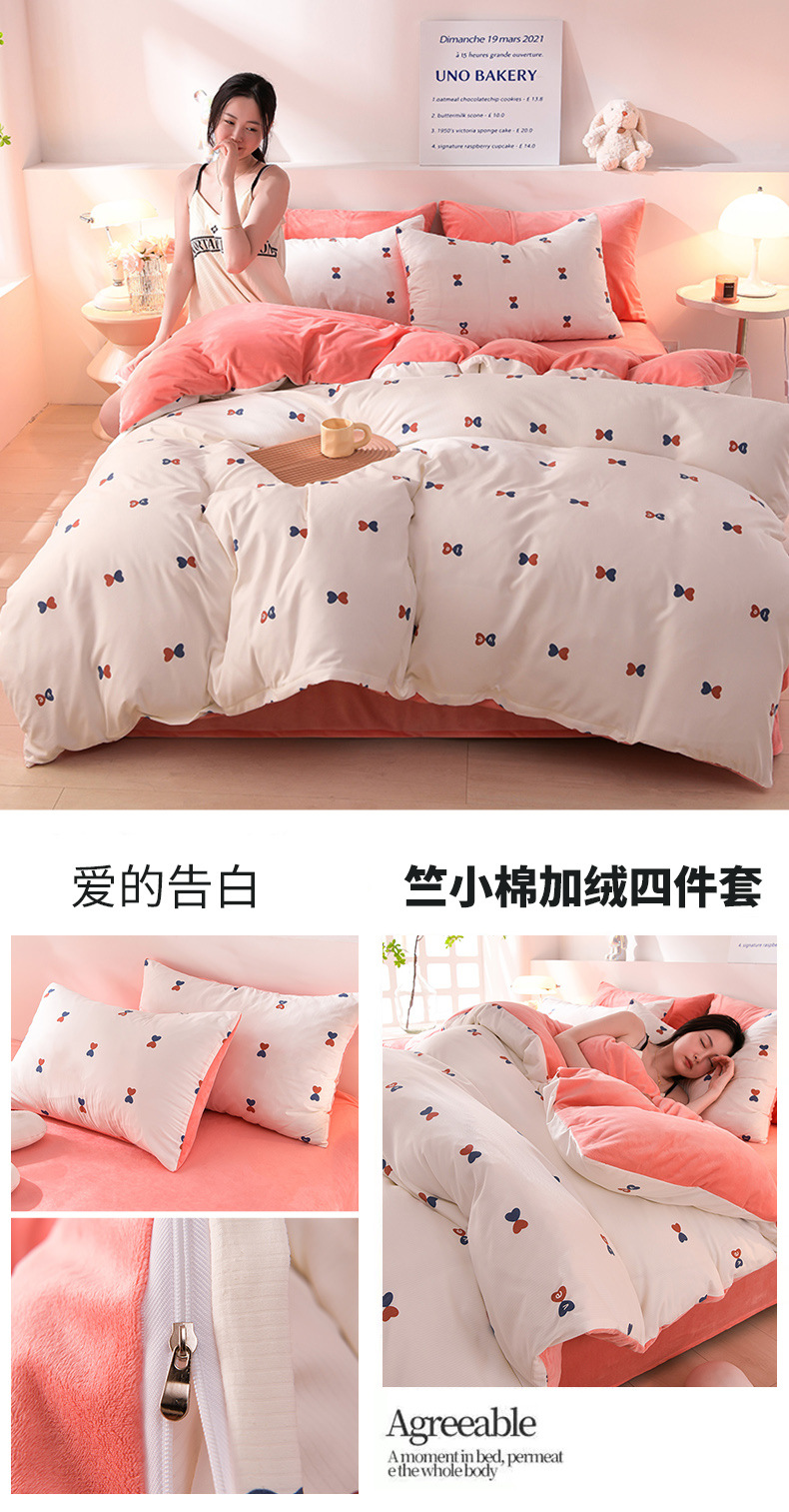提花竺小棉+宝宝绒四件套,加厚保暖床单被套四件套YS-029