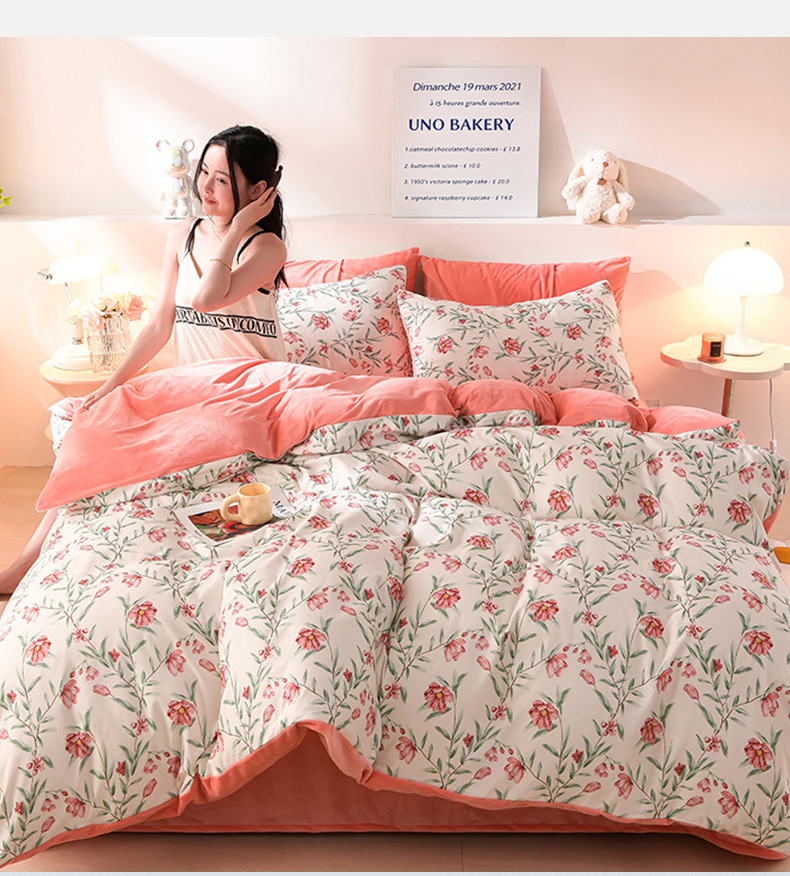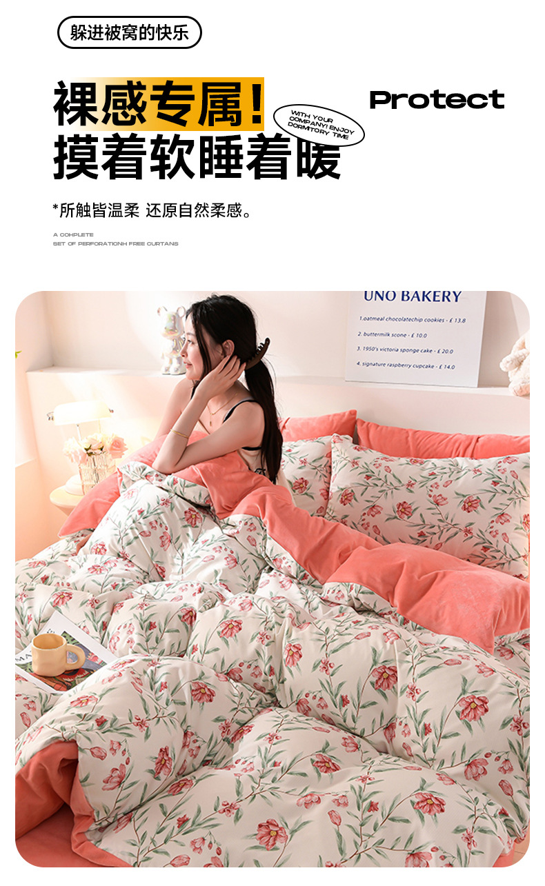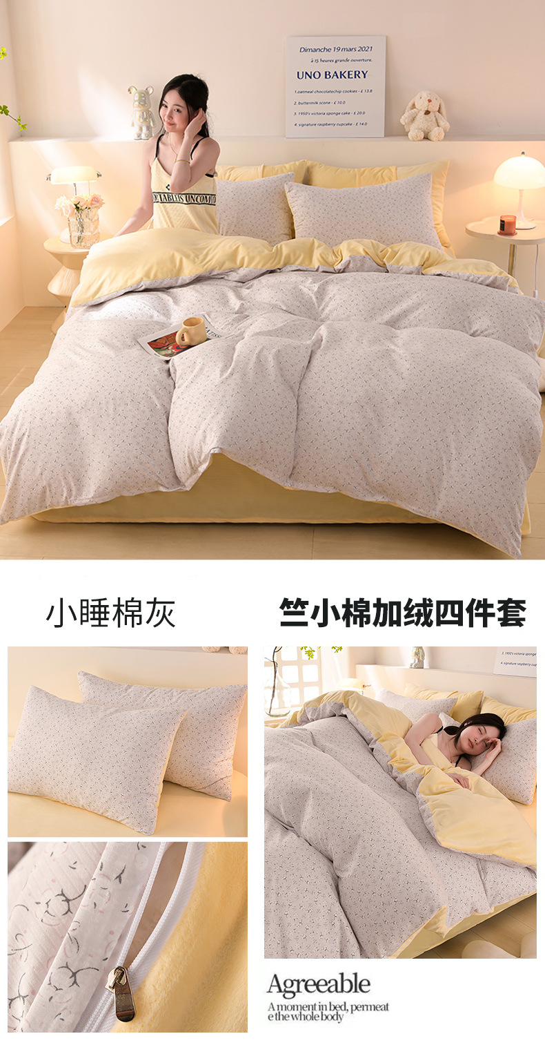 提花竺小棉+宝宝绒四件套,加厚保暖床单被套四件套YS-029