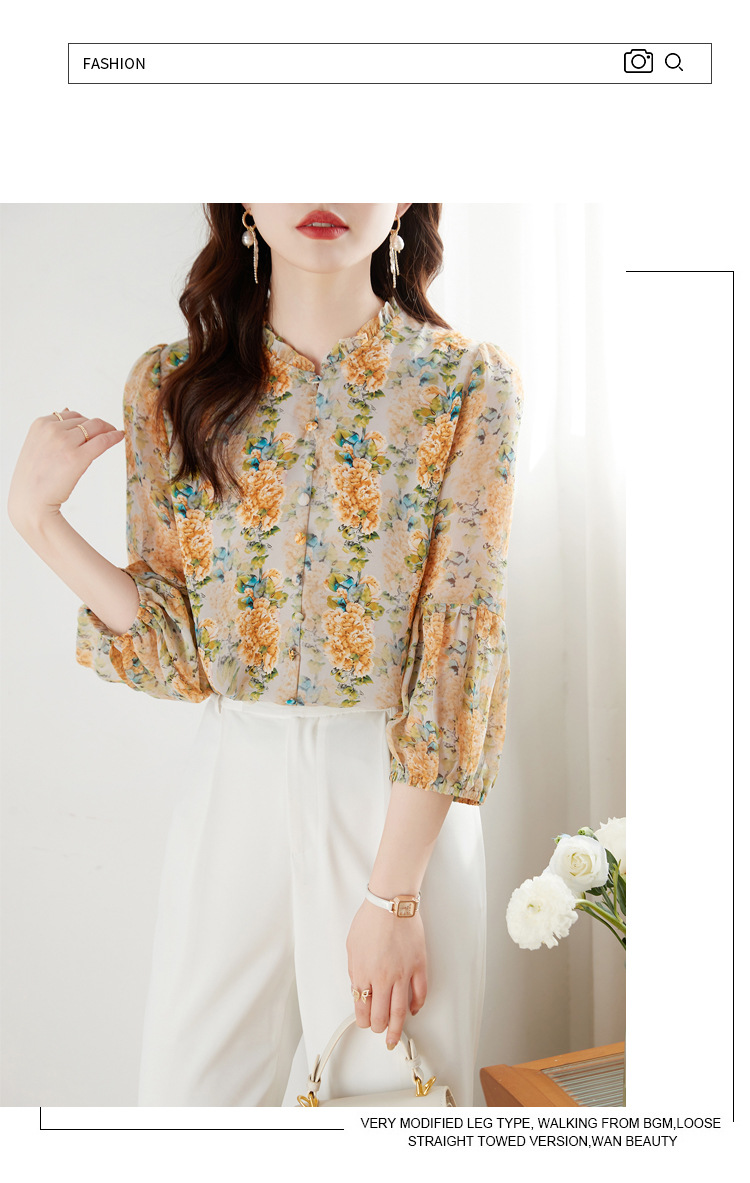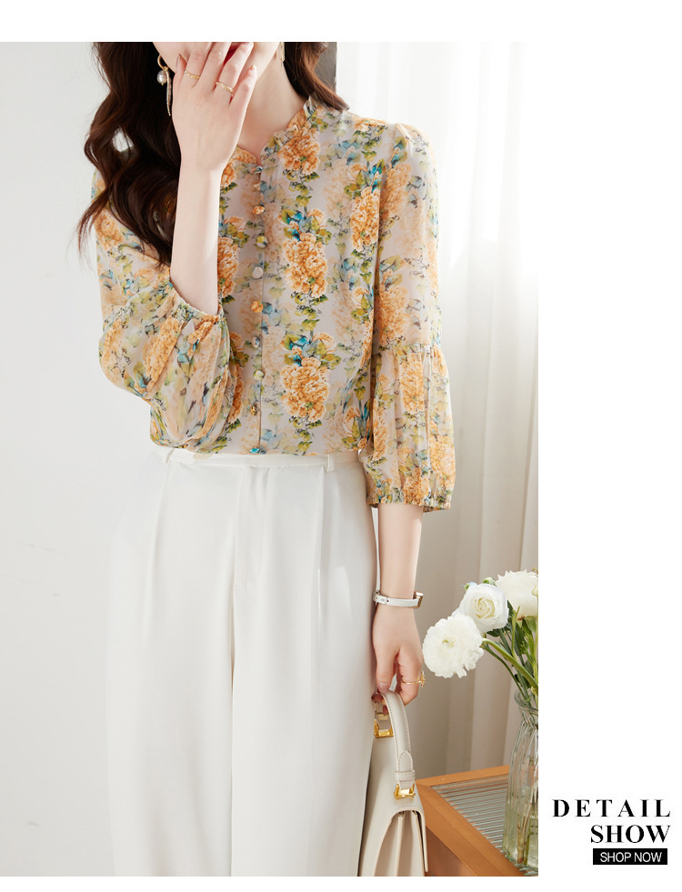 雪纺碎花衬衫,宽松漂亮小衫KQL-451H2178