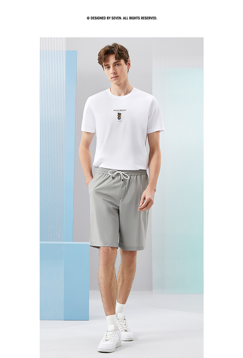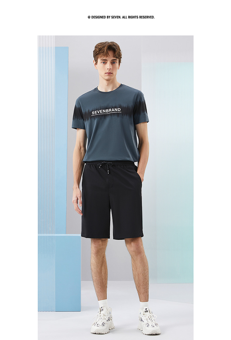 柒牌男士休闲短裤2024夏季新款时尚潮流中青年条纹印花直筒男裤子 126H72750