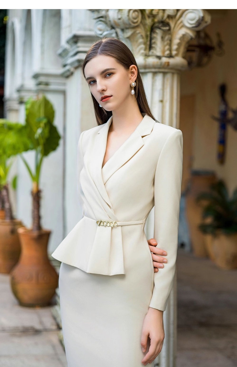 IWY/秋款纯白色高端气质女神范假两件职业装收腰显瘦通勤连衣裙Q989