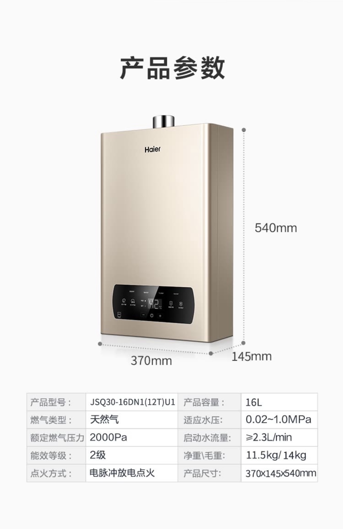 海尔(Haier)热水器JSQ30-16DN1(12T)U1