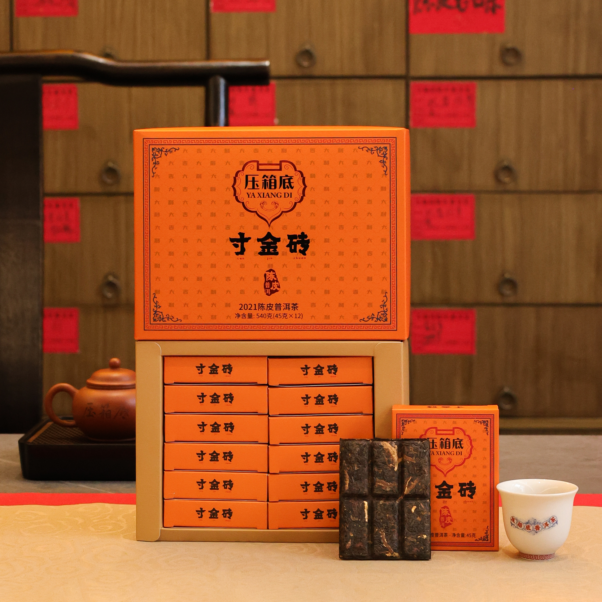 压箱底寸金砖 2021陈皮普洱茶 巧克力茶砖 云南普洱熟茶新会陈皮
