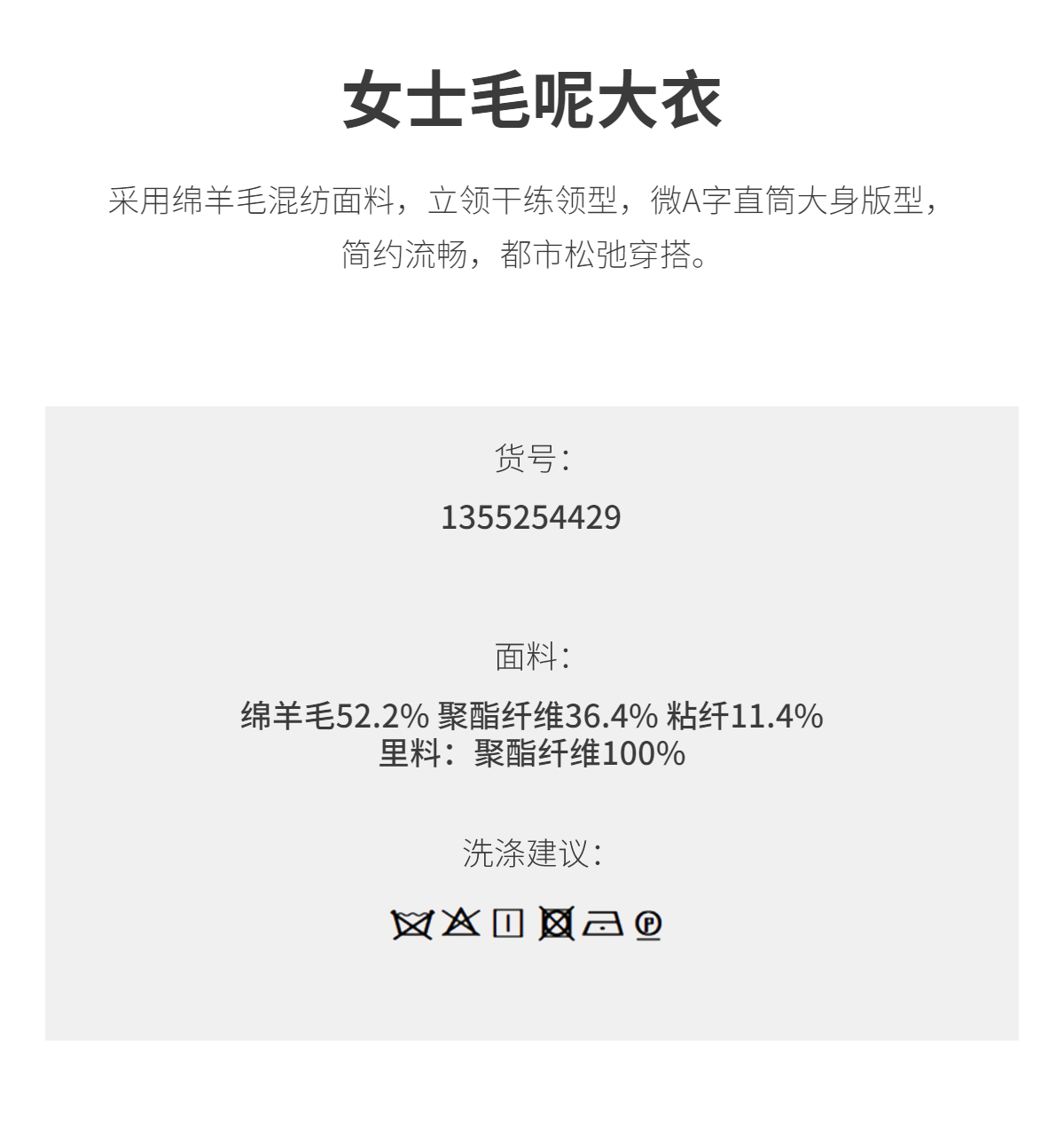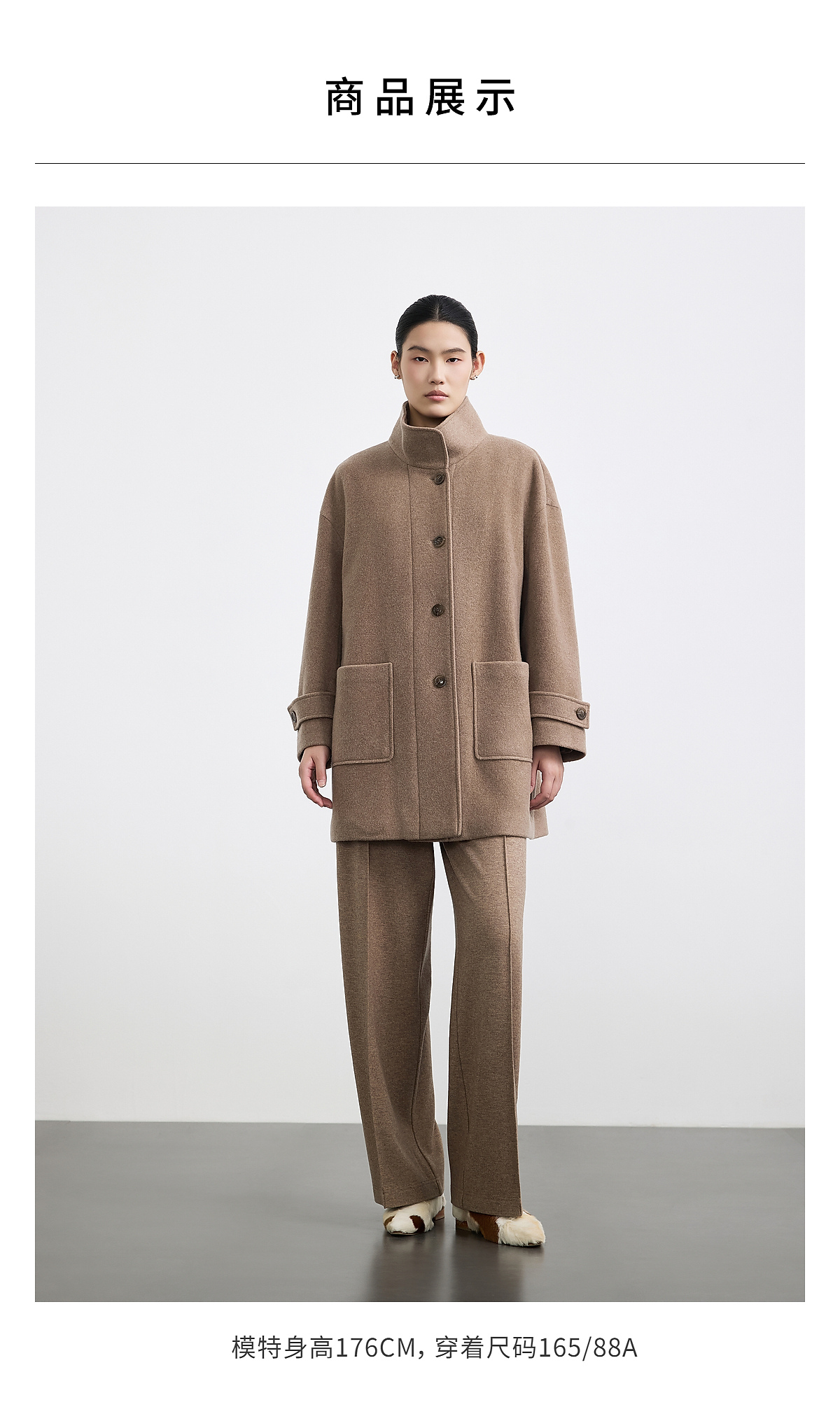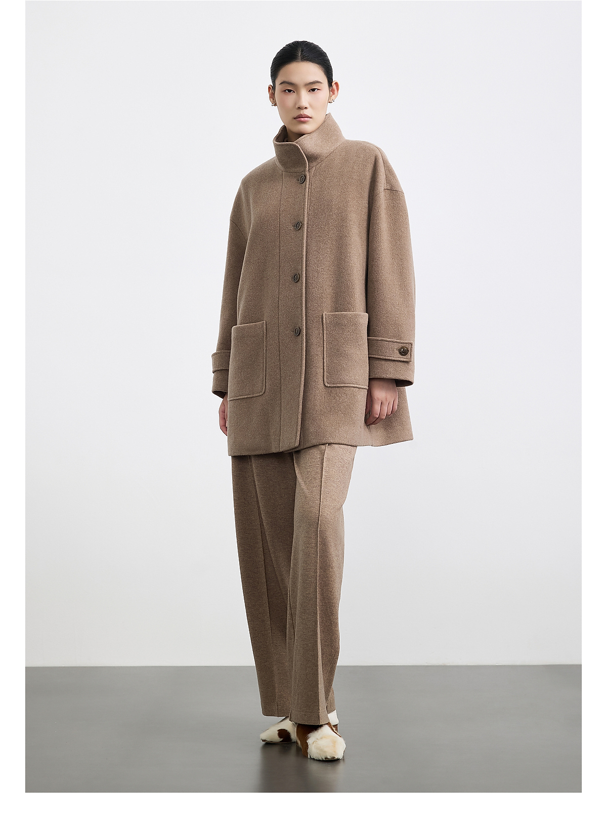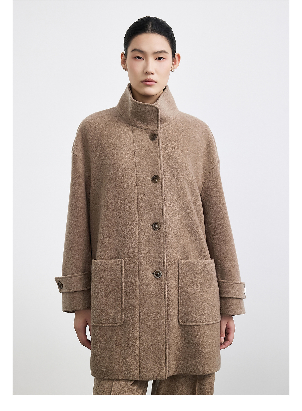 商场同款PURE TOUCH女装25秋冬羊毛混纺毛呢大衣中长款立领短外套
