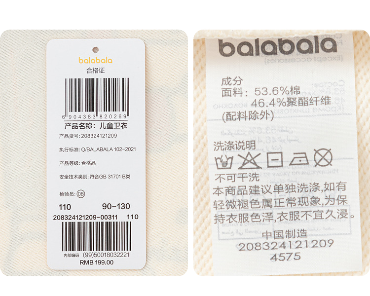巴拉巴拉童装男童卫衣女童春秋装新款宝宝圆领上衣舒适休闲潮