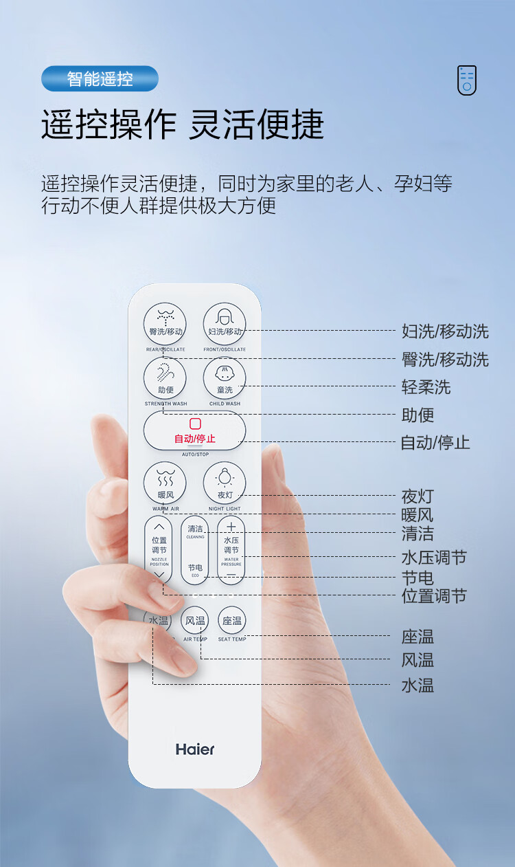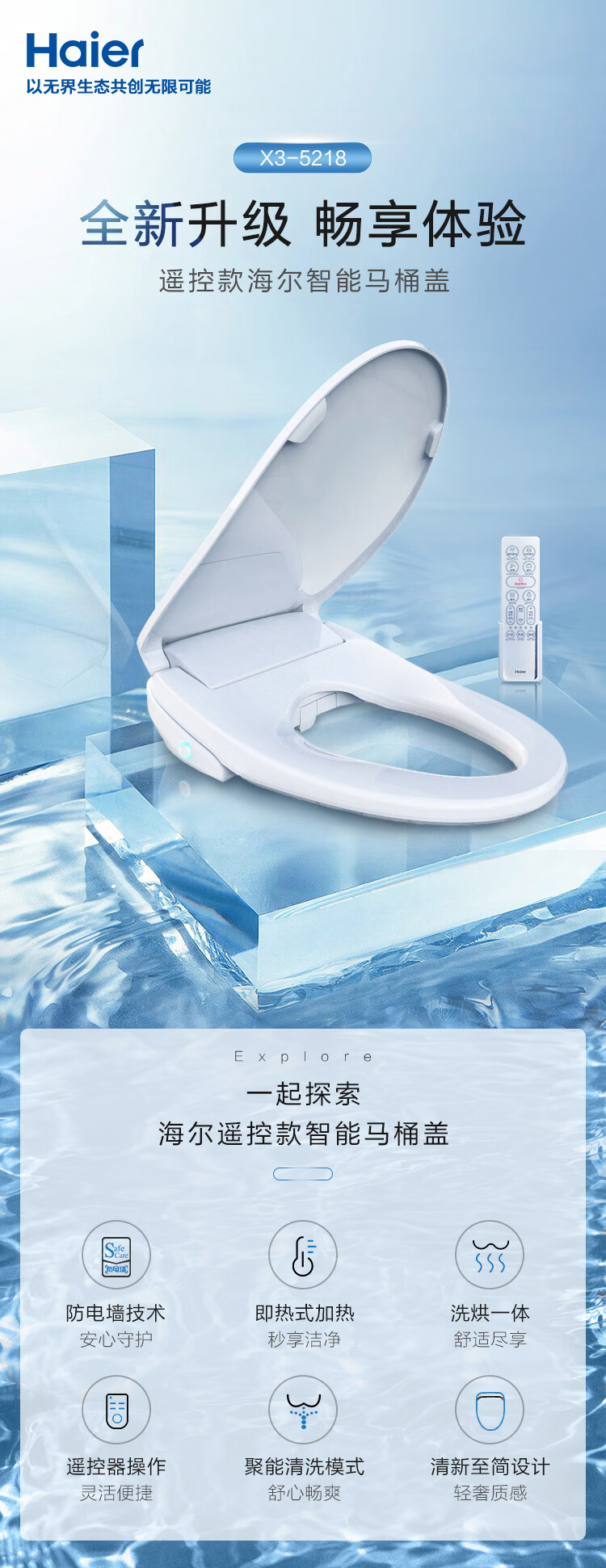 海尔智能马桶盖即热式电子坐便盖板全自动加热冲洗 升级遥控款X3-5218 自清洁内置滤网X3-5218 全国免费上门安装
