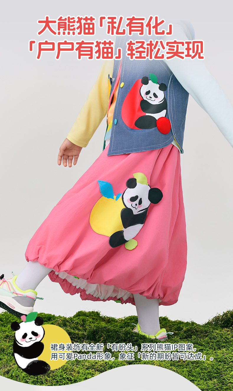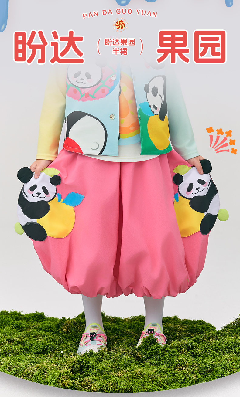 年衣童装女童半身裙2025年春季新款儿童灯笼裙熊猫卡通伞裙花苞裙盼达果园半裙