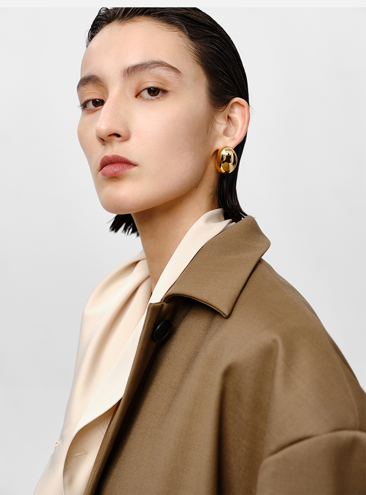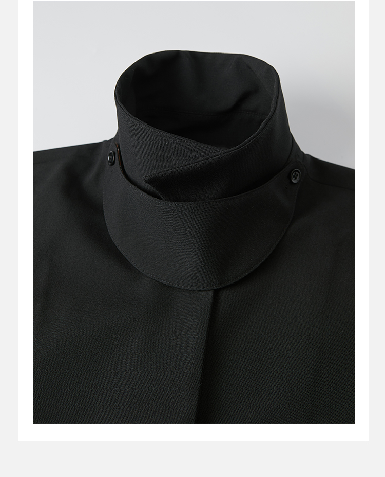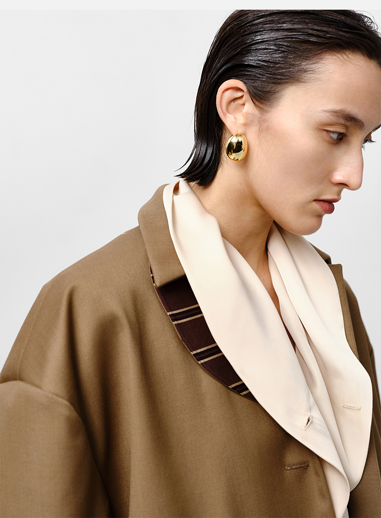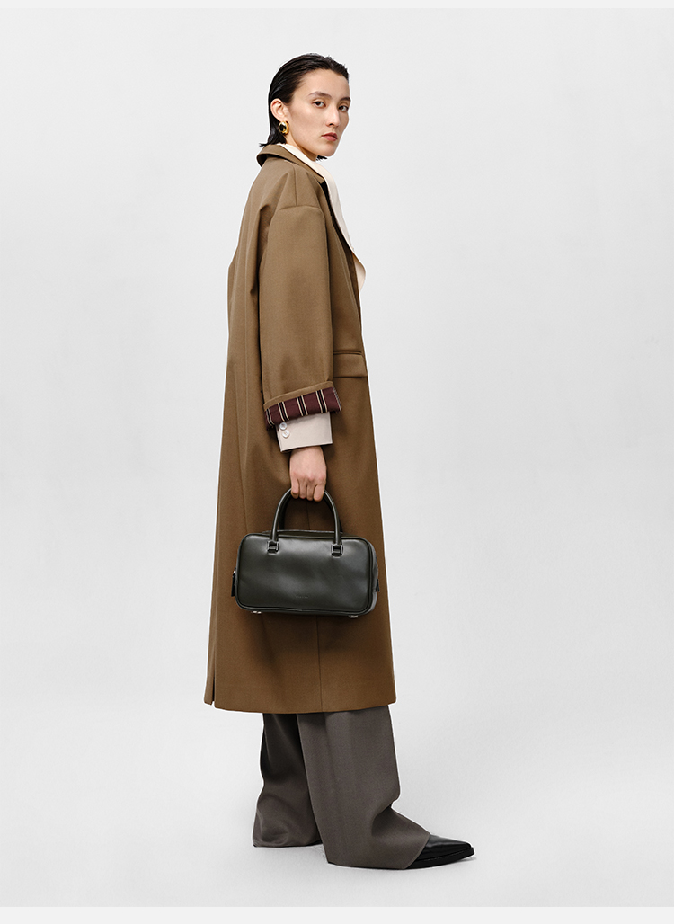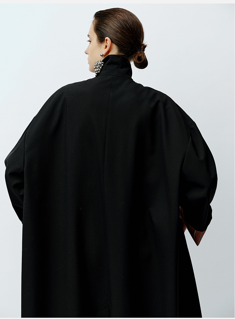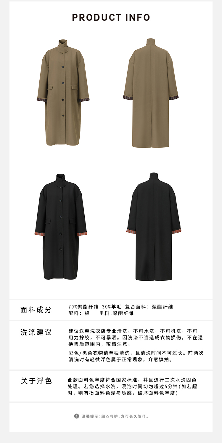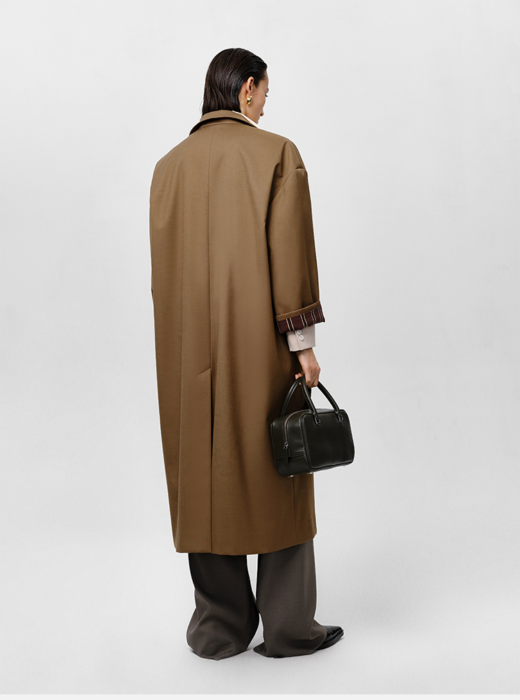 HIDEMI 廓形条纹翻边复古长款精纺羊毛风衣
