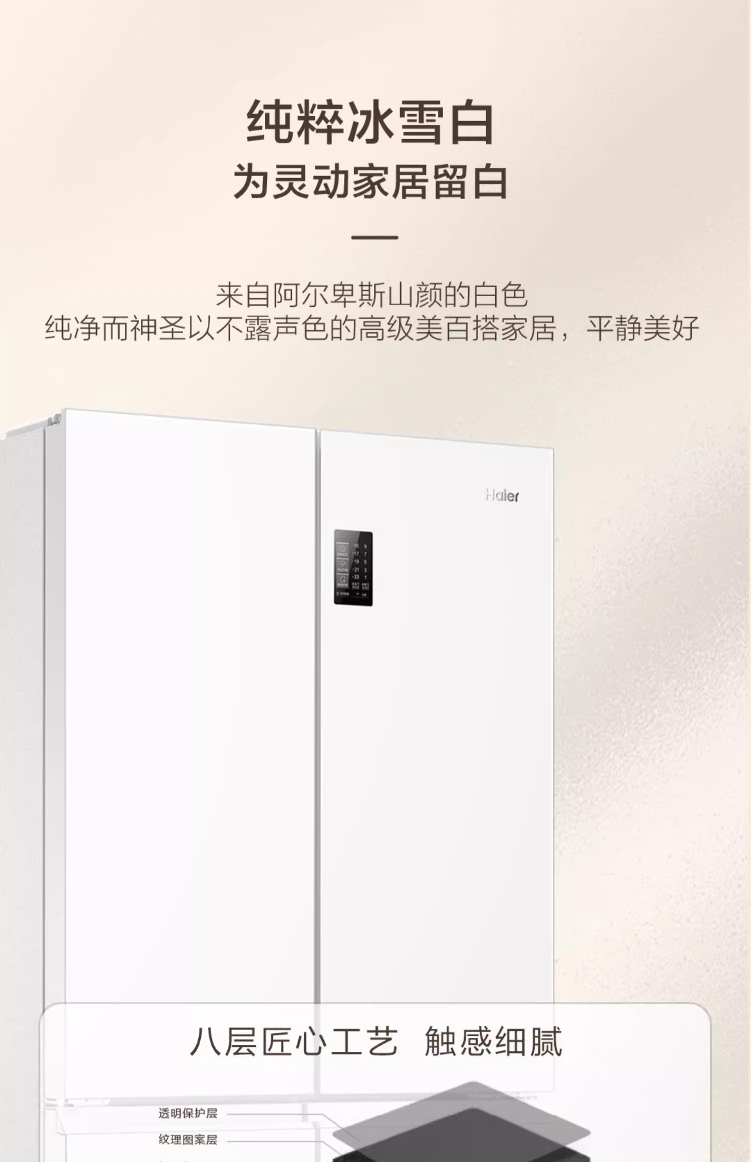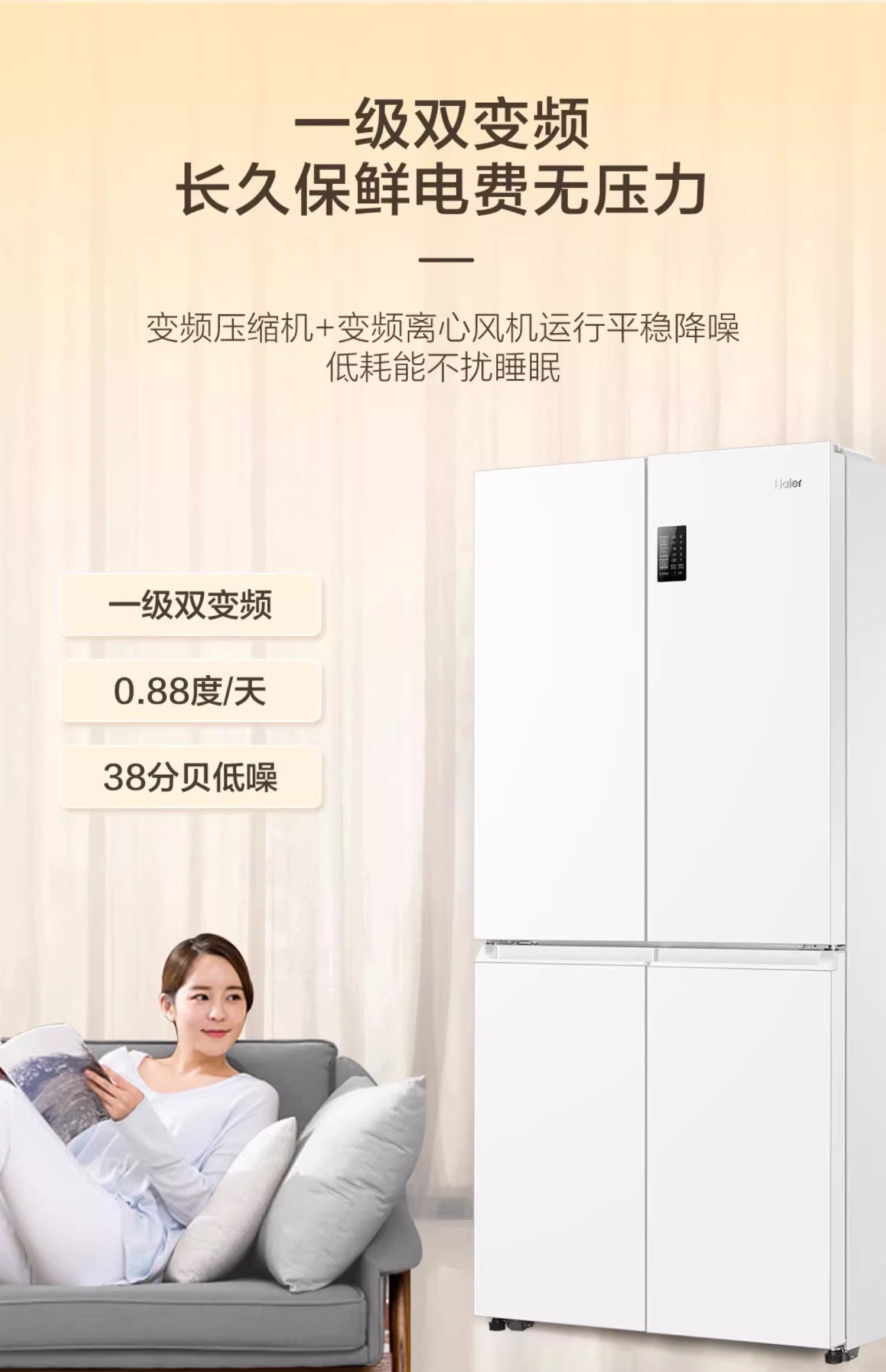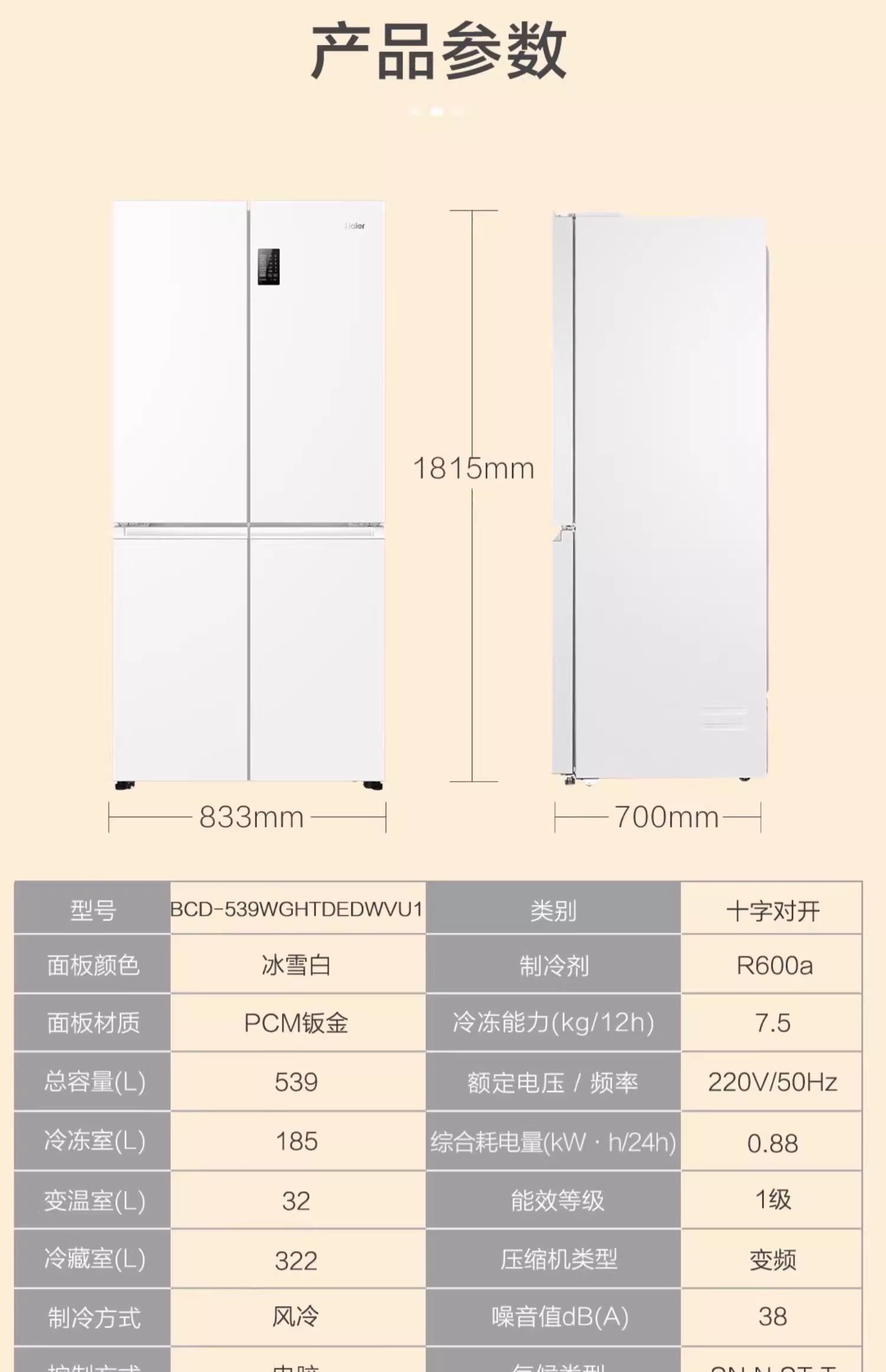 海尔(Haier)539升十字对开四开双开门白色风冷无霜家用电冰箱一级能效变频BCD-539WGHTDEDWVU1