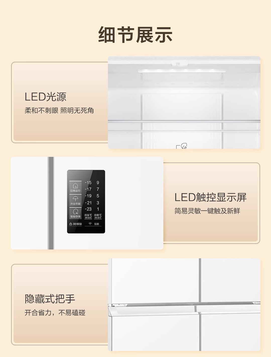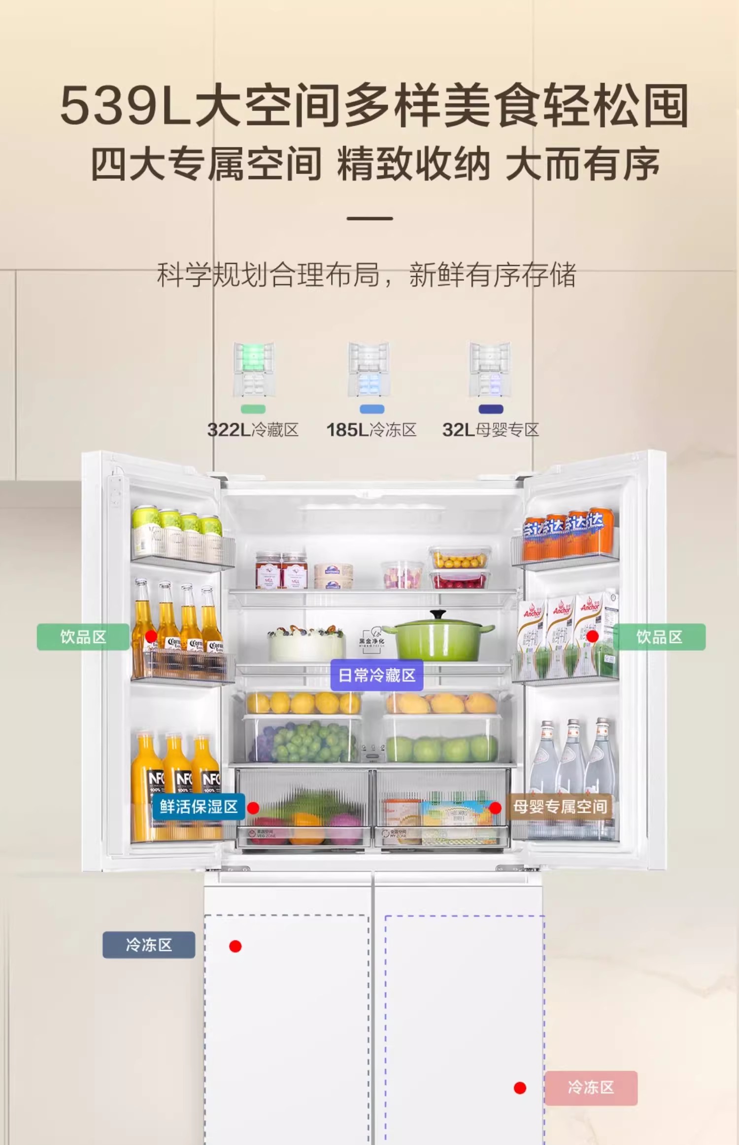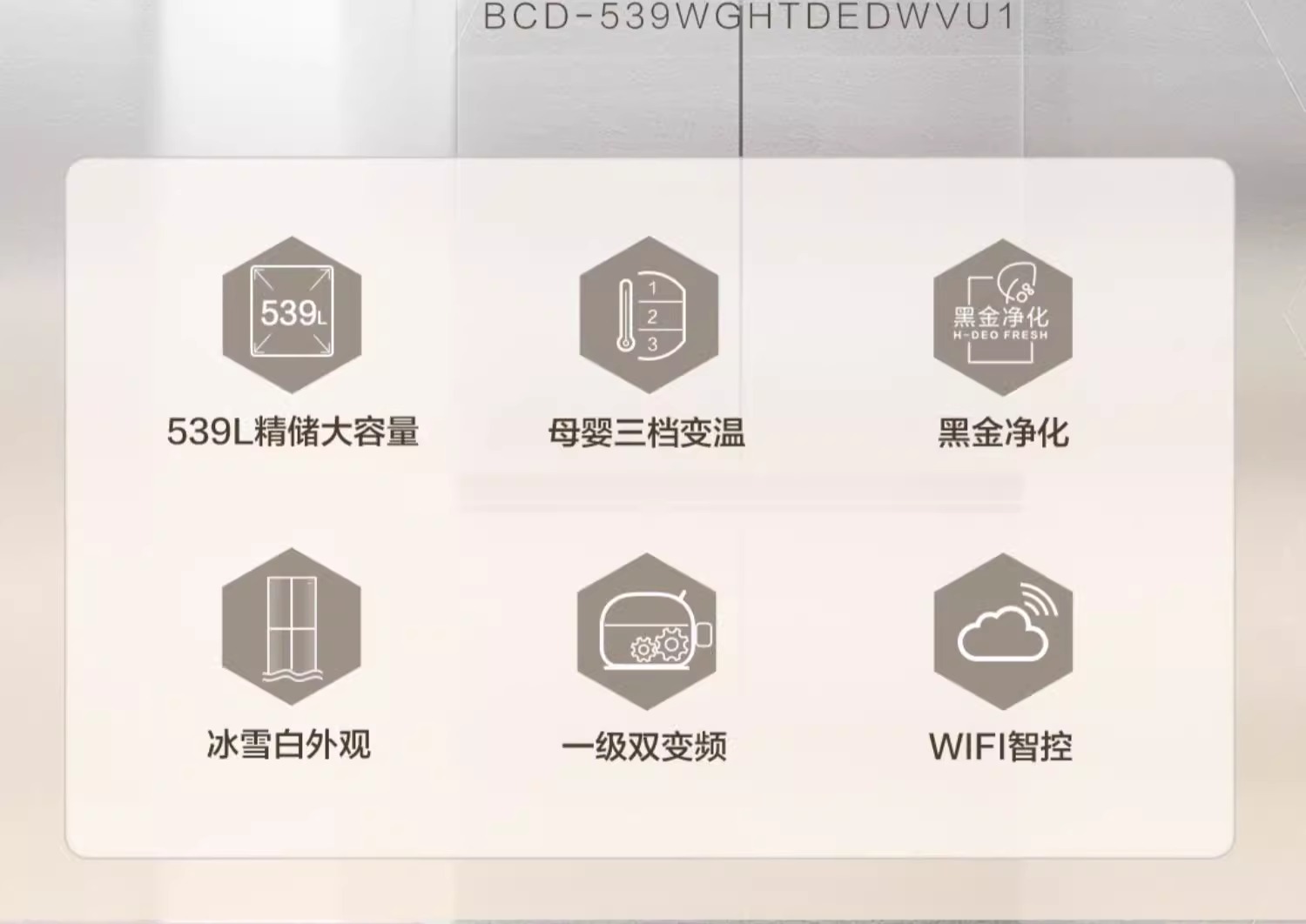 海尔(Haier)539升十字对开四开双开门白色风冷无霜家用电冰箱一级能效变频BCD-539WGHTDEDWVU1